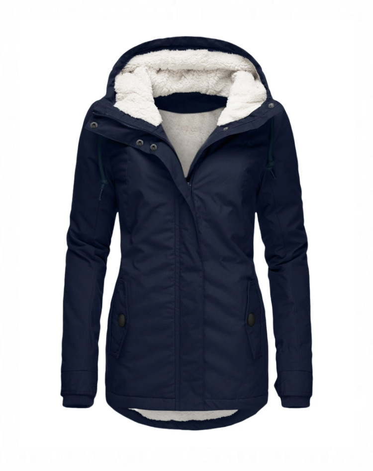 2024 유럽 및 미국면 패딩 후드 가을과 겨울 새로운 여성 코트 단색 통근 및 벨벳 코트 여성