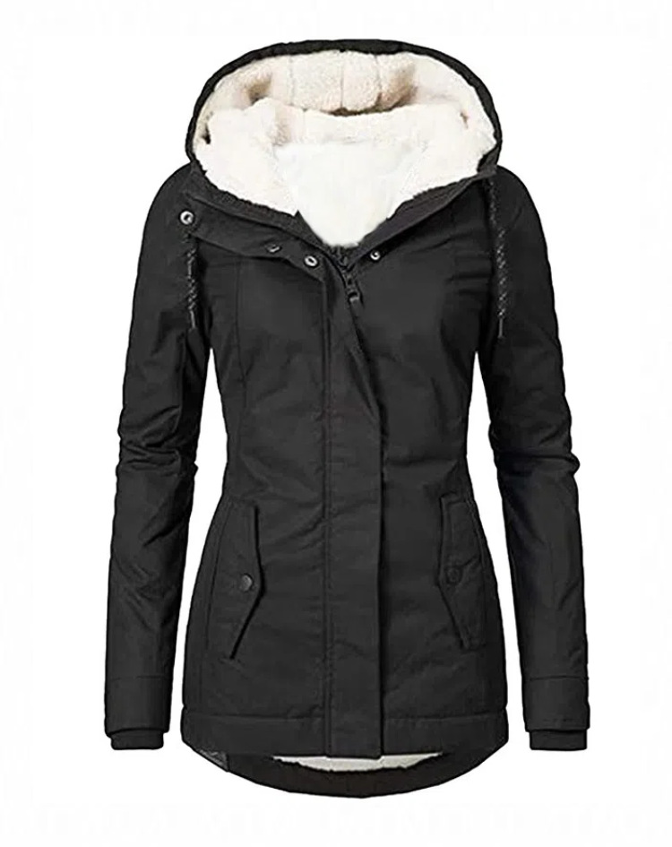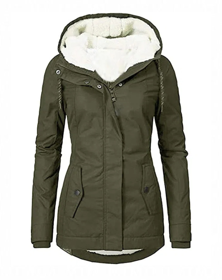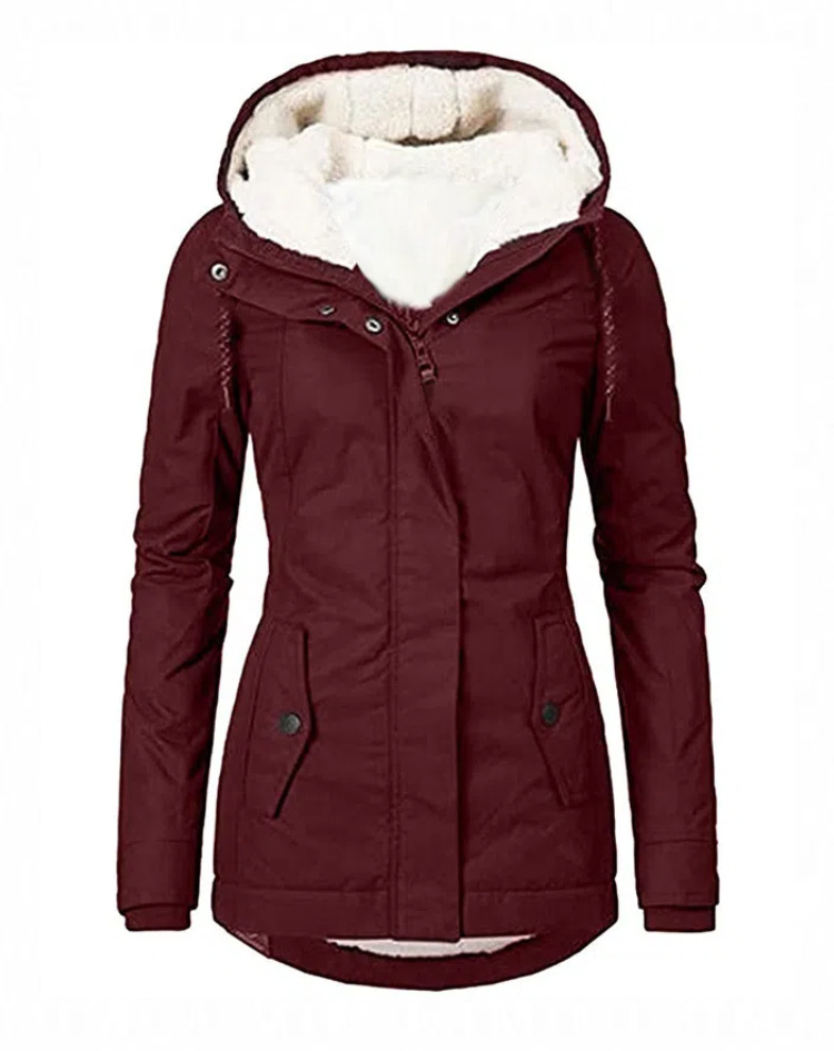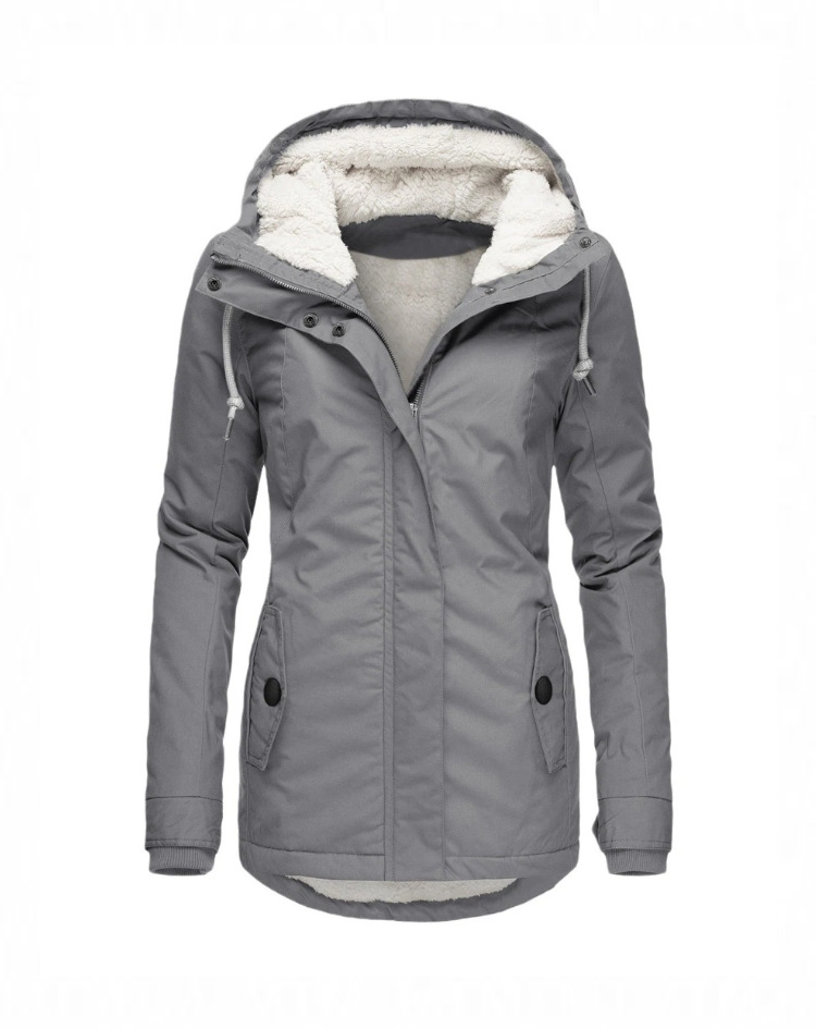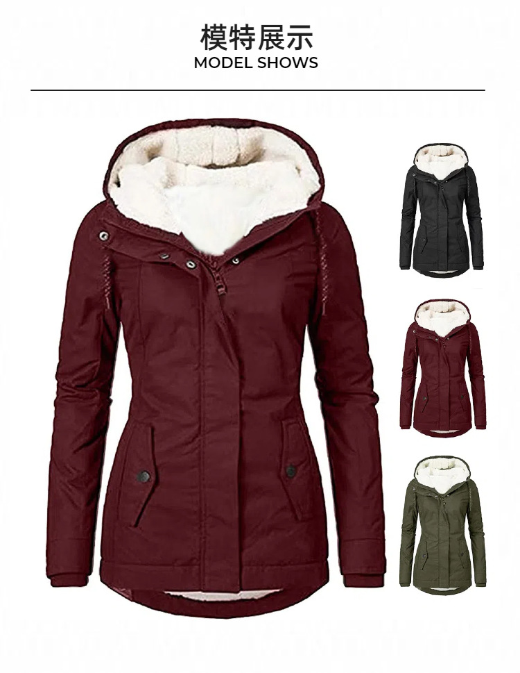 2024 유럽 및 미국면 패딩 후드 가을과 겨울 새로운 여성 코트 단색 통근 및 벨벳 코트 여성스토어 가기