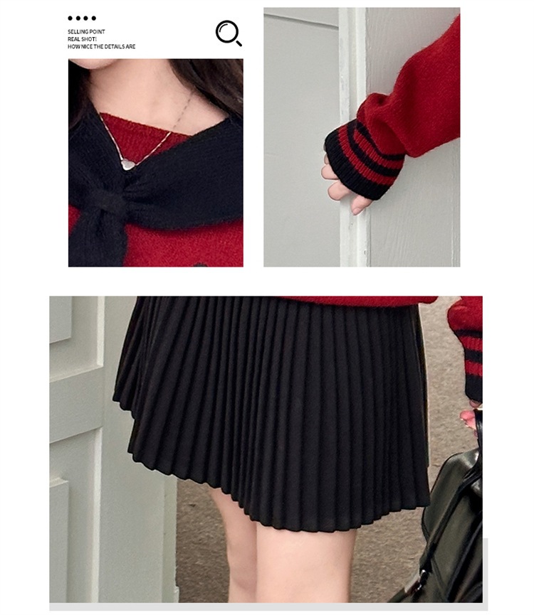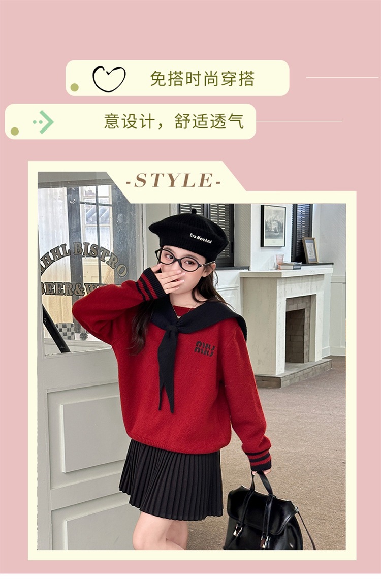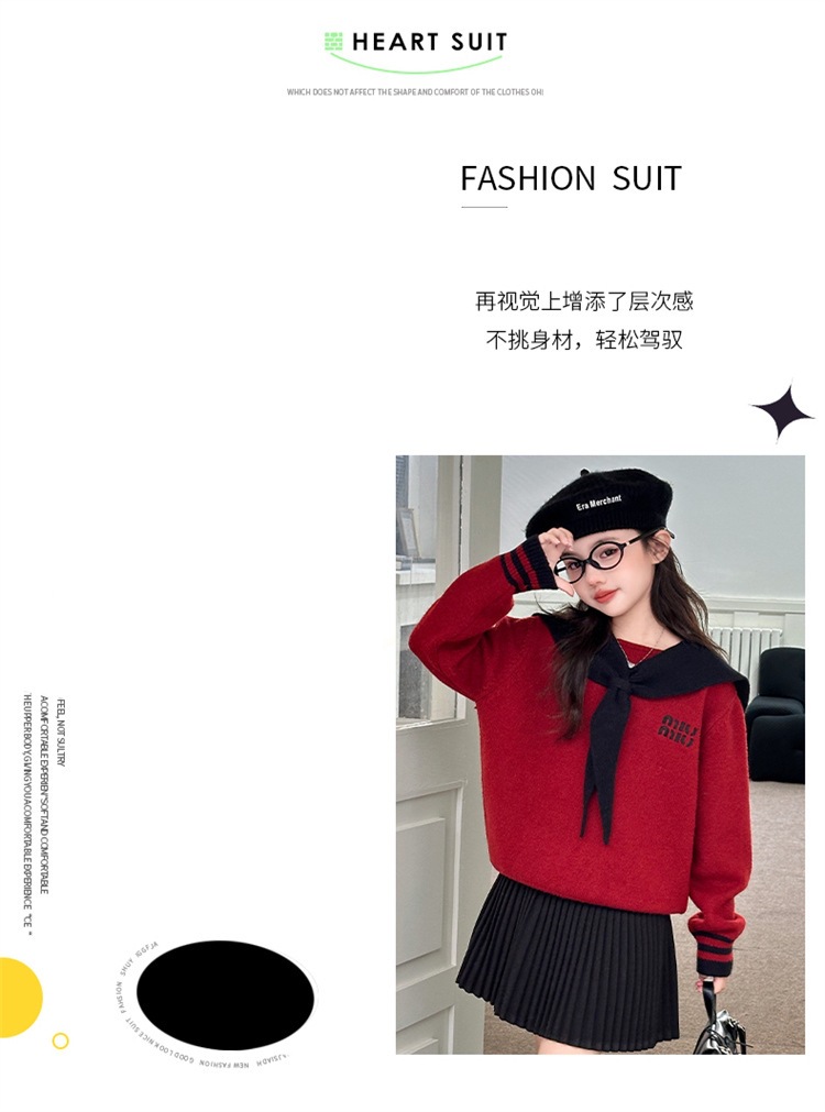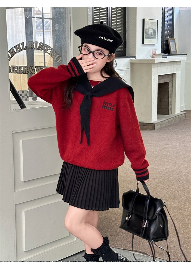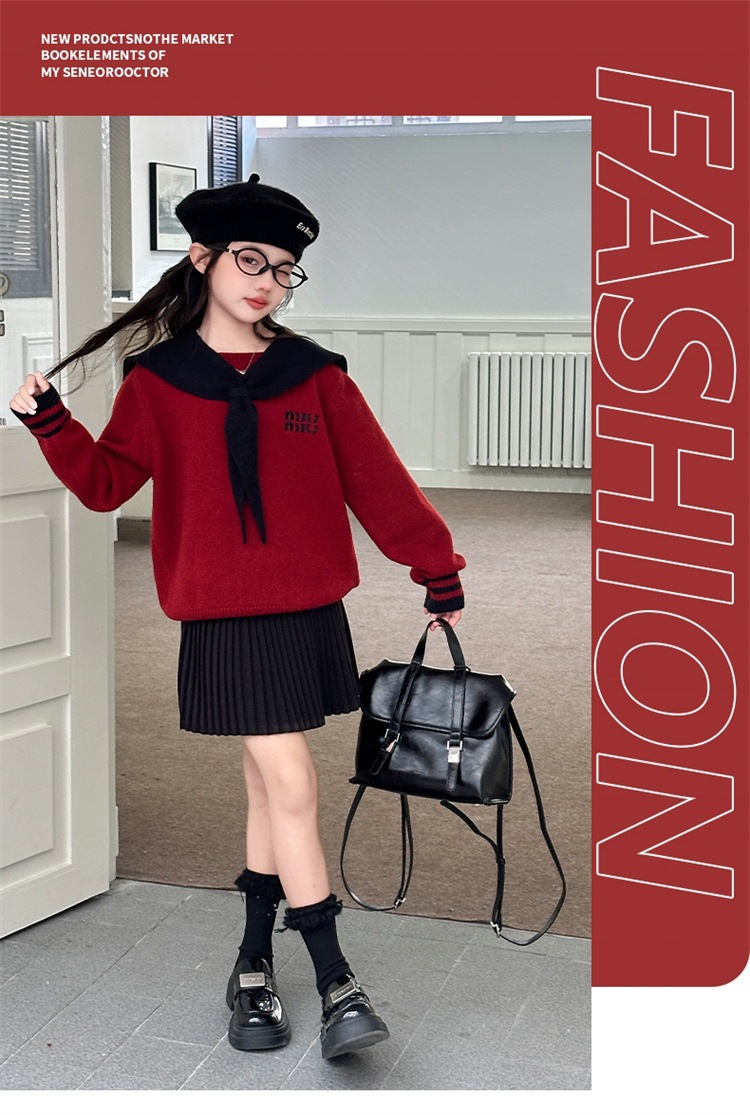 여자 해군 칼라 스웨터 세트 겨울 2024 새로운 여자 대학 스타일 JK 주름 치마 투피스 세트스토어 가기