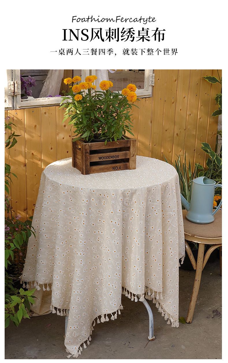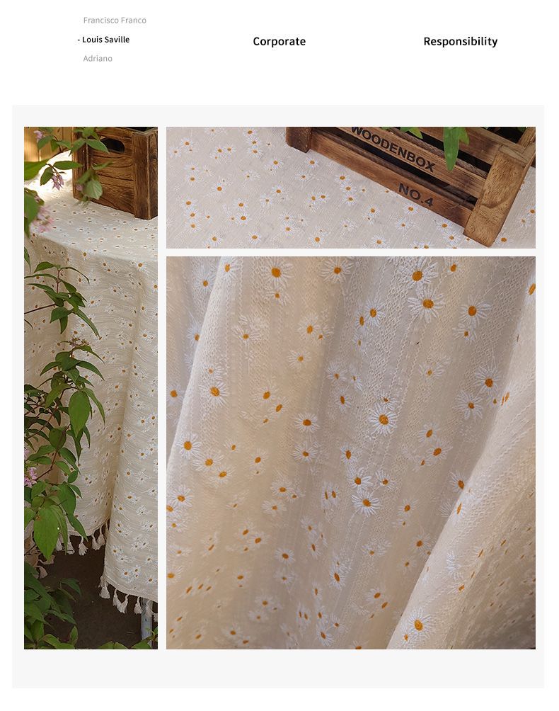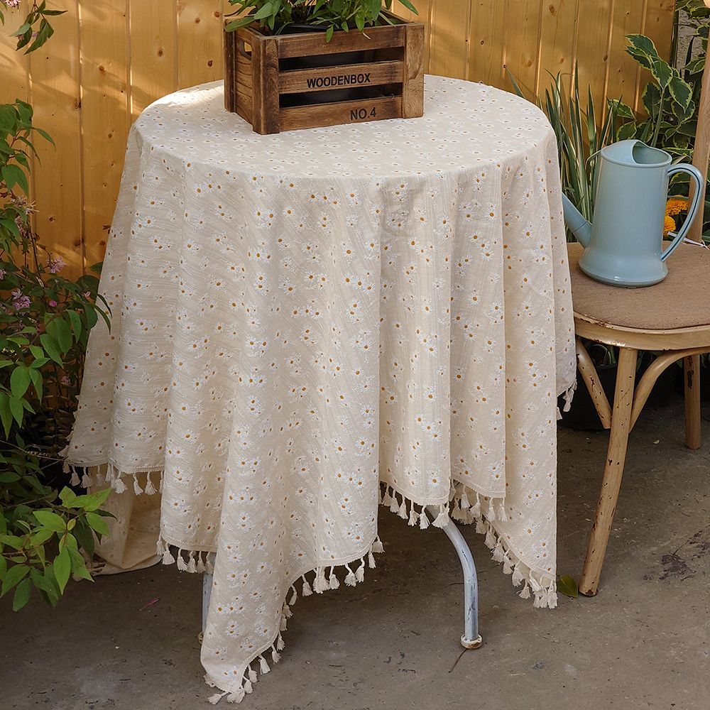 프랑스 스타일 신선한 테이블 피복 면화 및 리넨 스타일 작은 데이지 직사각형 커피 테이블 천 목가적 인 꽃 장식 책상 커버 천