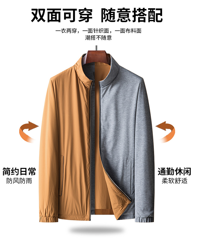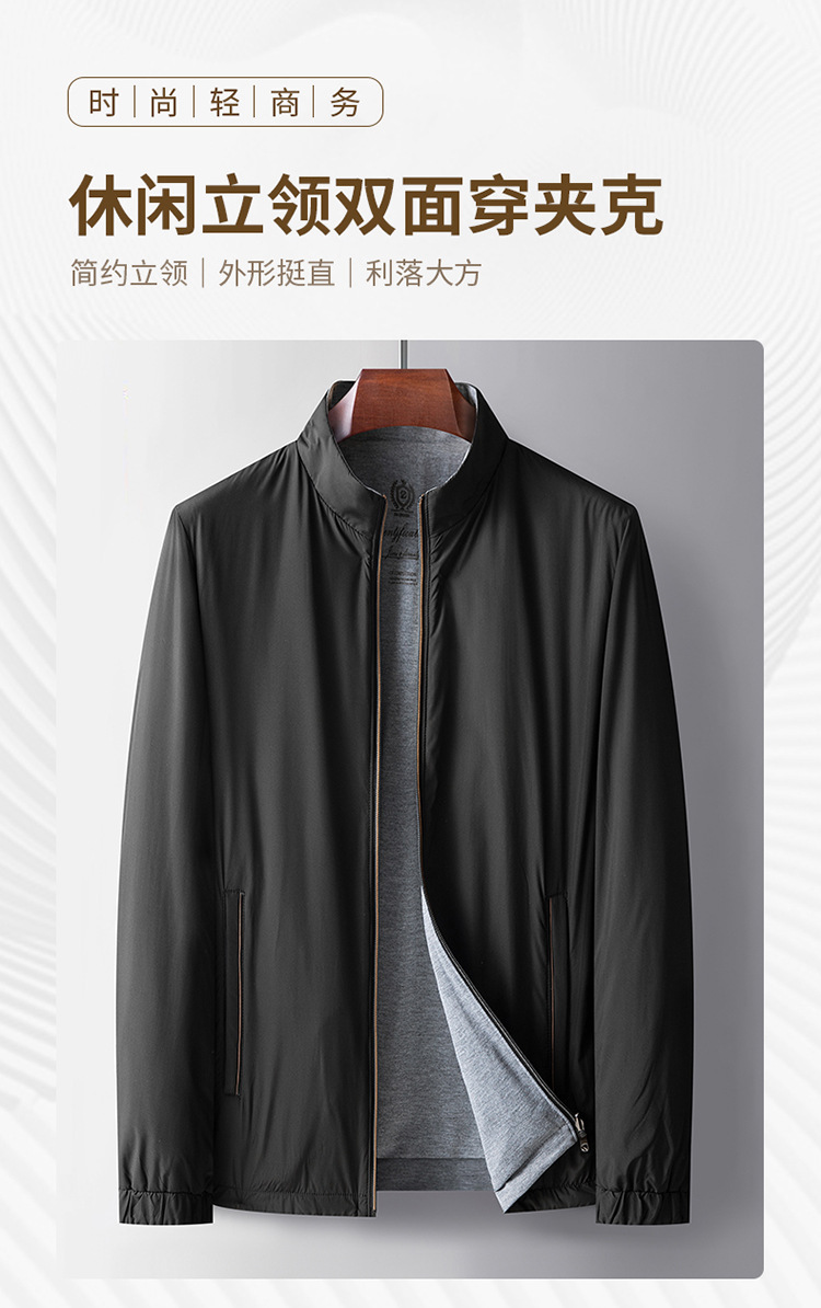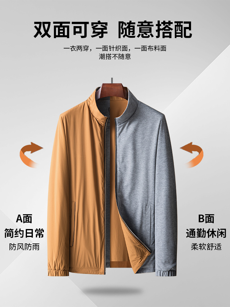 2025 봄 가을 신상 남성 캐주얼 얇은 스탠드 칼라 양면 재킷 고급 코트 비즈니스 다용도