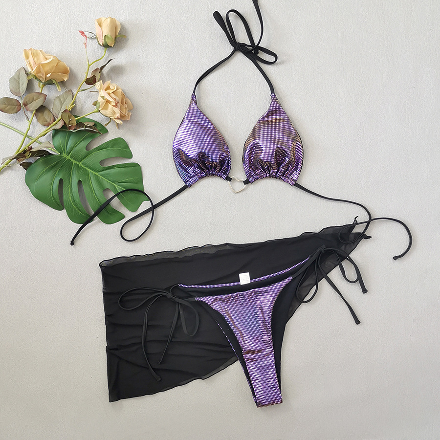 2025 유럽과 미국의 국경 새로운 비키니 3 피스 세트 섹시한 플래시 패브릭 사랑 금속 반지 비키니 숙녀스토어 가기
