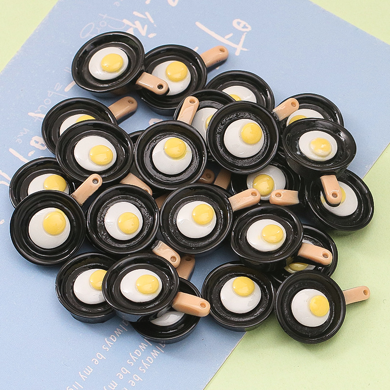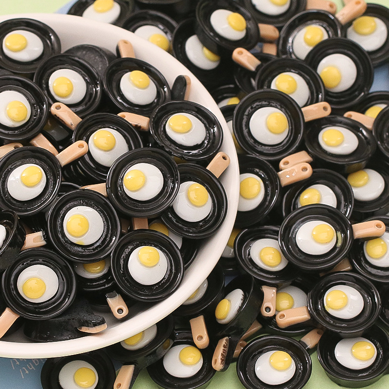 시뮬레이션 아이언 팬 튀긴 계란 음식 재생 혼합 DIY 휴대 전화 케이스 헤어 액세서리 헤어핀 냉장고 스티커 어린이 작은 액세서리