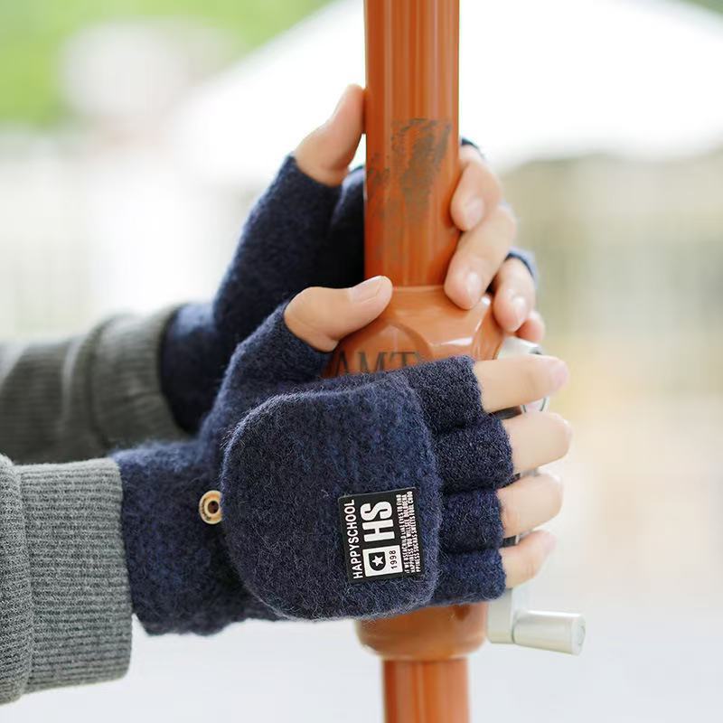 겨울 따뜻한 남성 장갑 두꺼운 플립 커버 이중 목적 모직 장갑 니트 유행 학생 승마 및 글쓰기