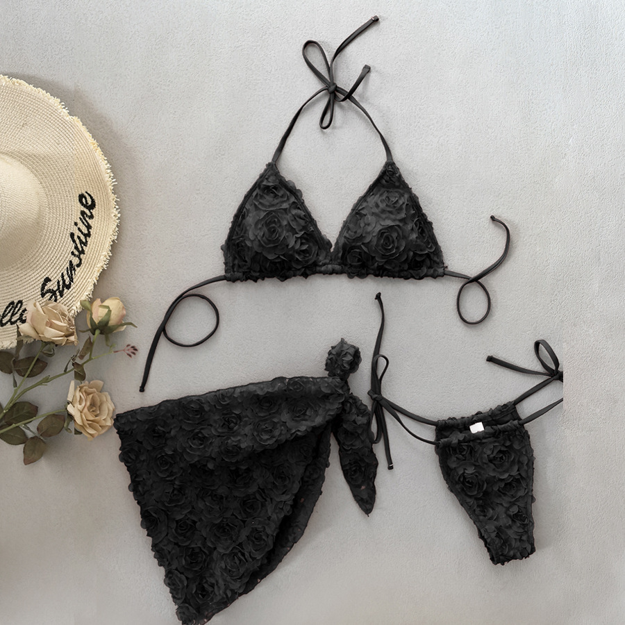 新款特殊面料花朵比基尼三件套