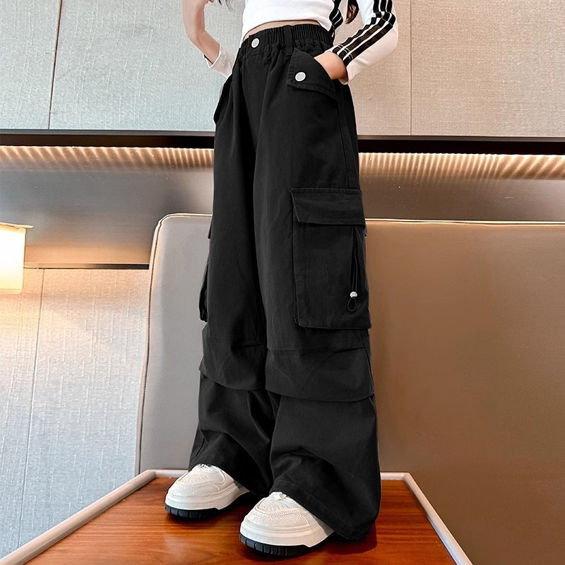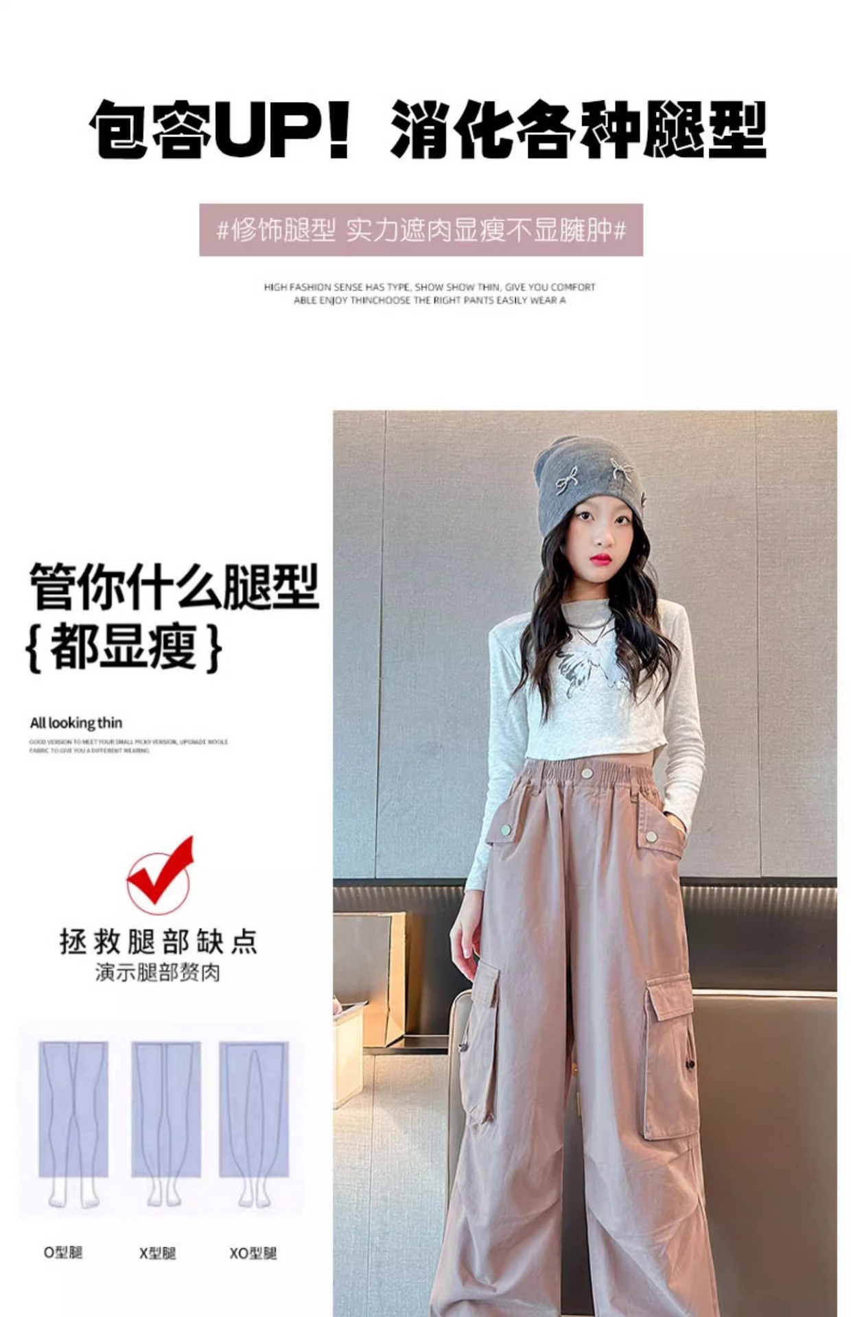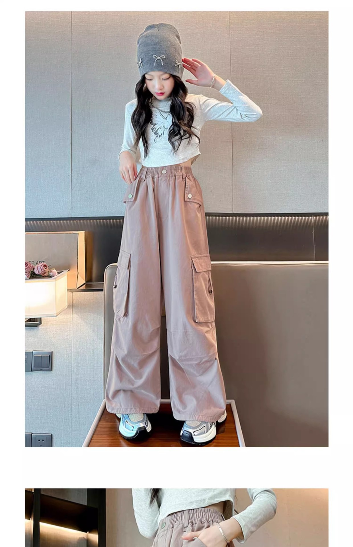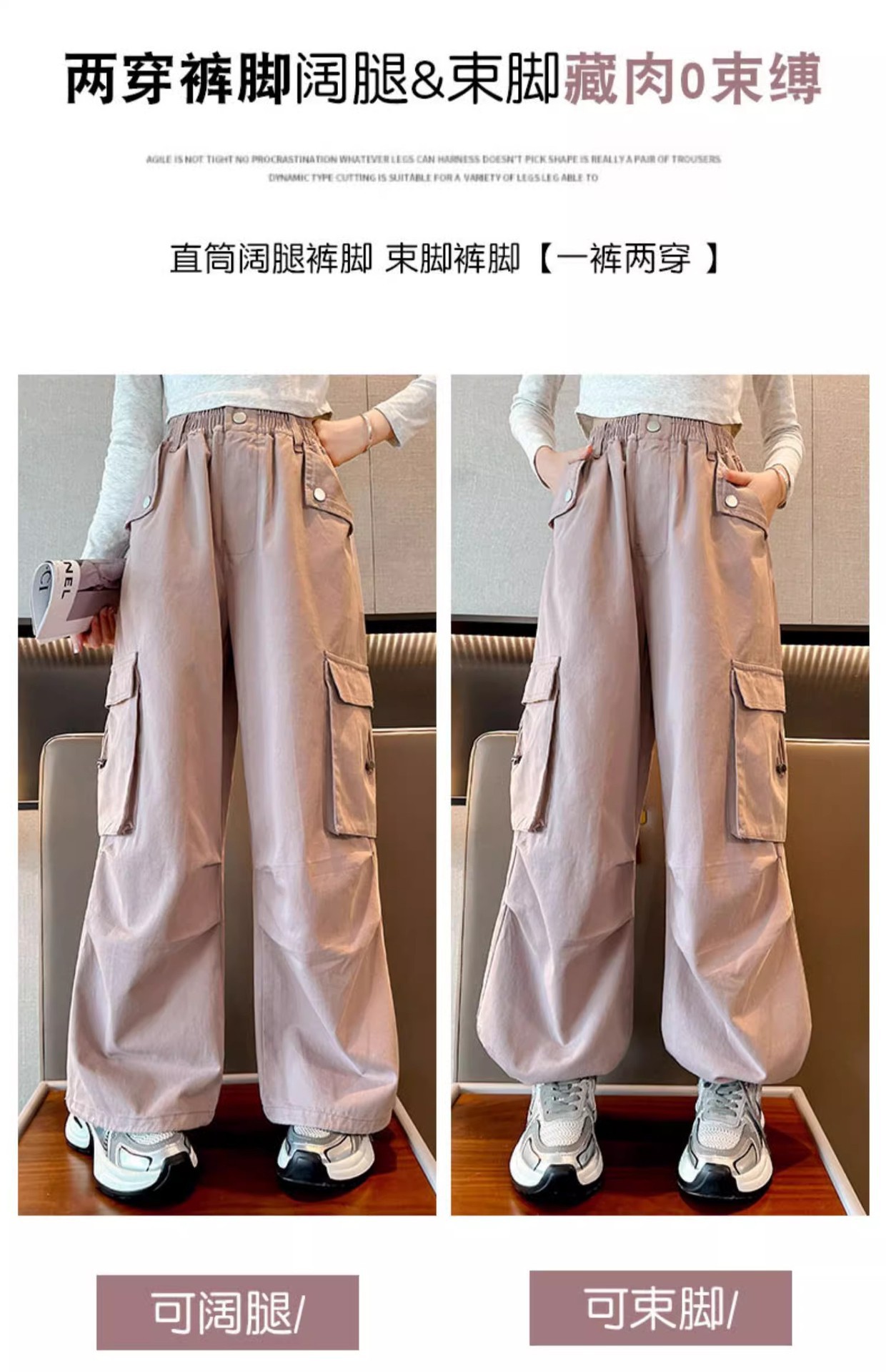 소녀 크레인 바지 2024 새로운 가을 원피스 서양 스타일 느슨한 캐주얼 넓은 다리 바지 어린이 유행 봄과 가을 바지스토어 가기