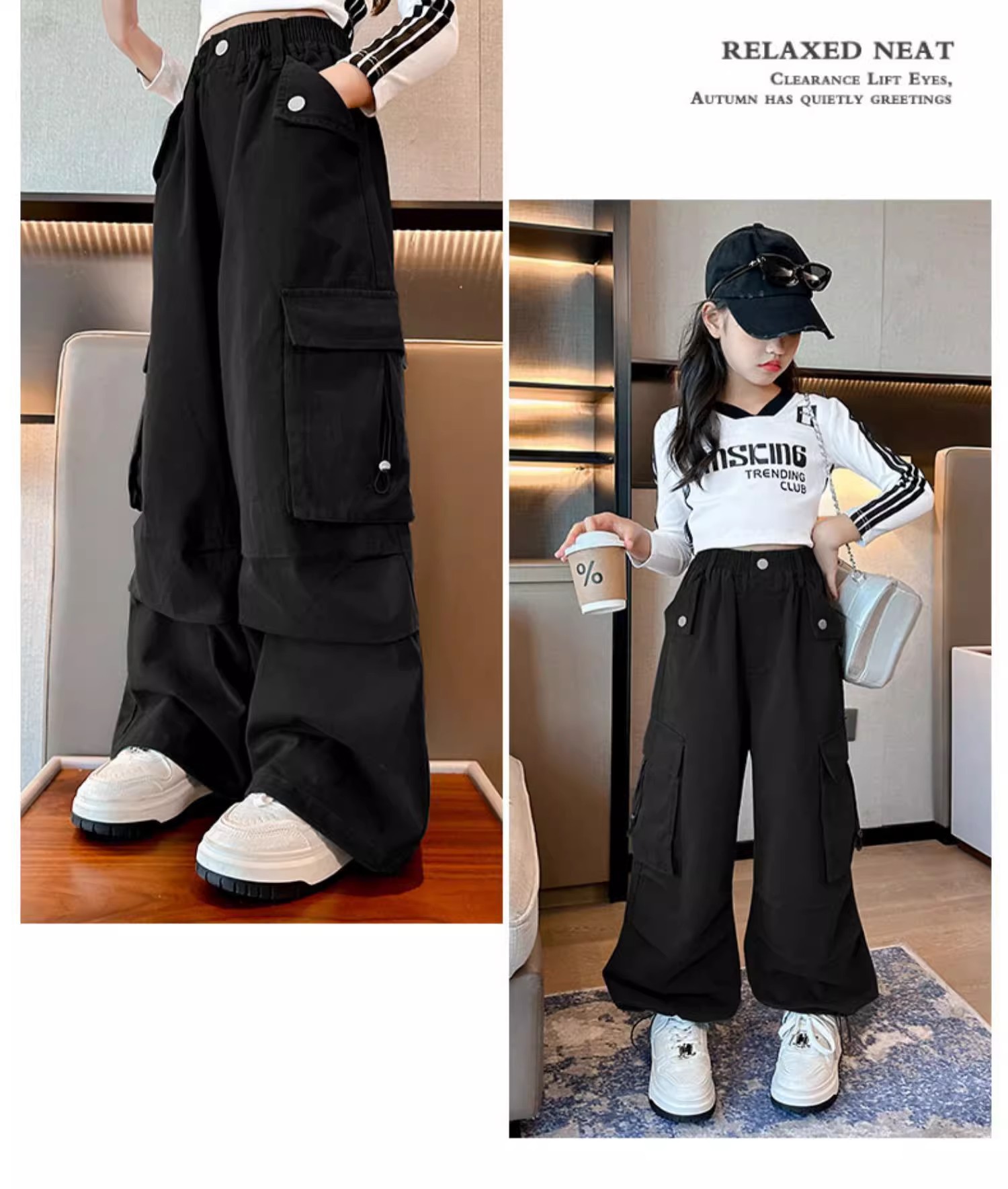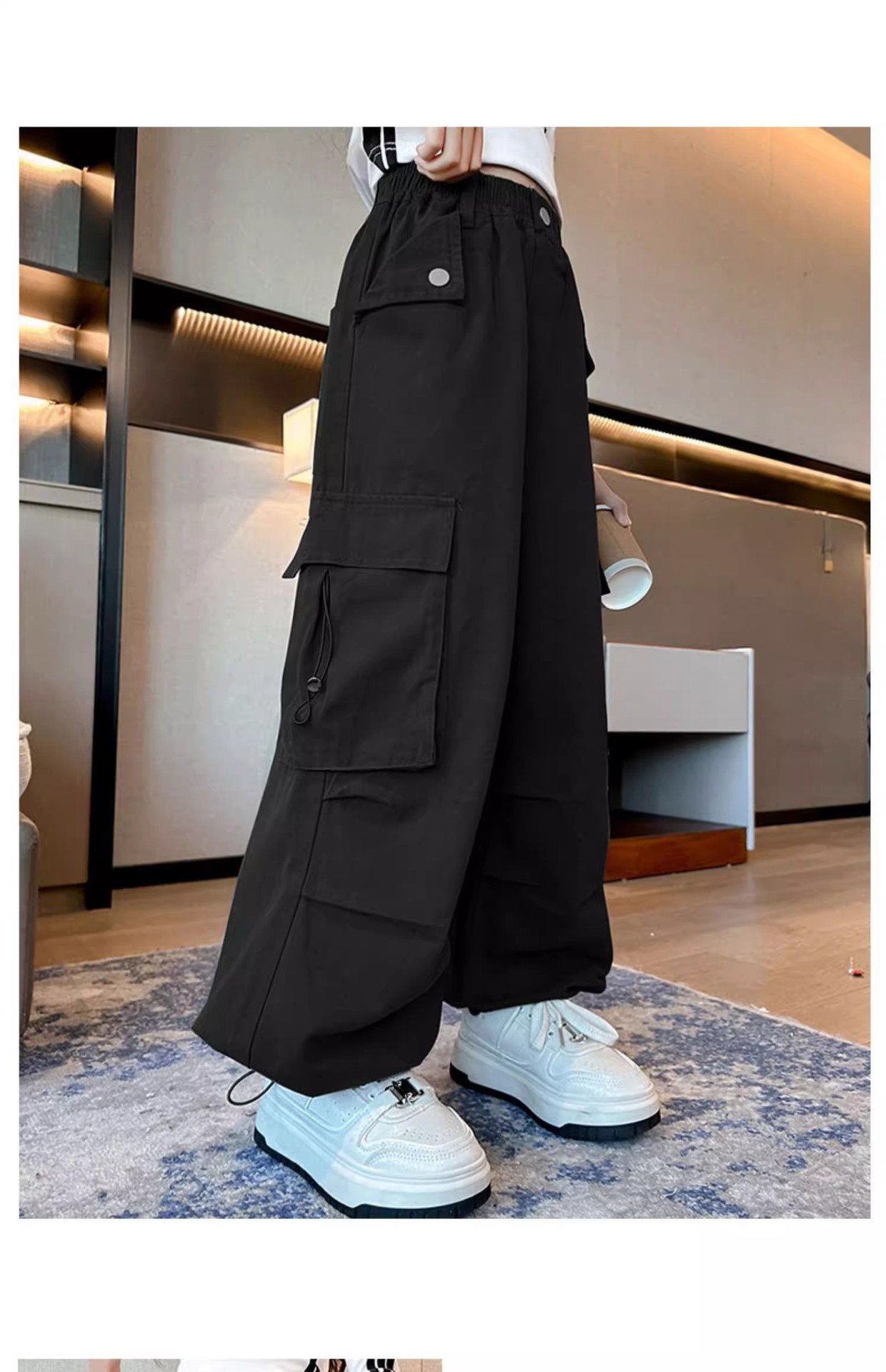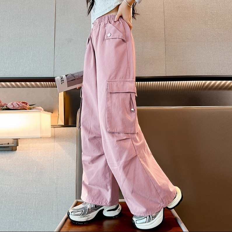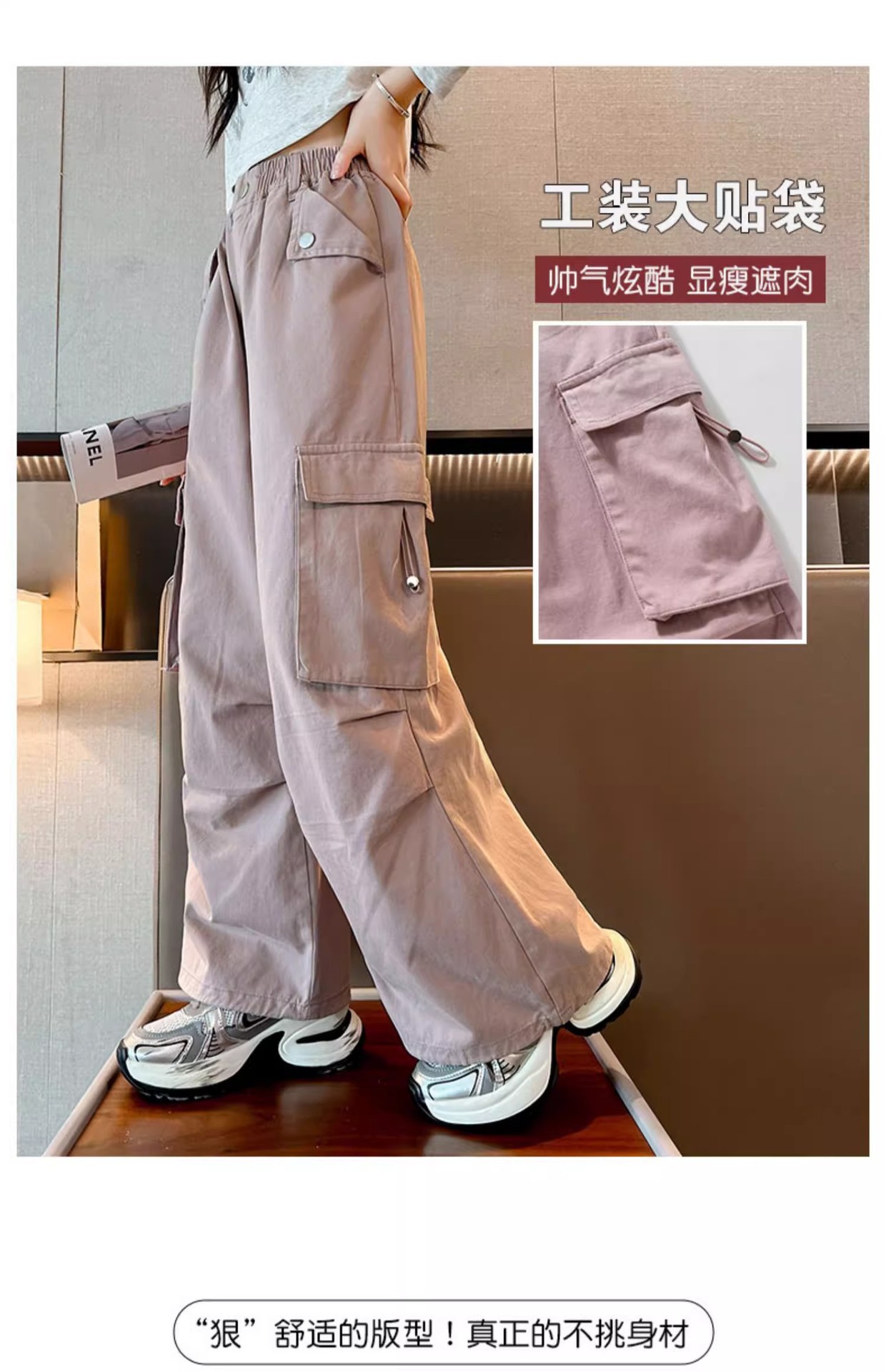 소녀 크레인 바지 2024 새로운 가을 원피스 서양 스타일 느슨한 캐주얼 넓은 다리 바지 어린이 유행 봄과 가을 바지스토어 가기