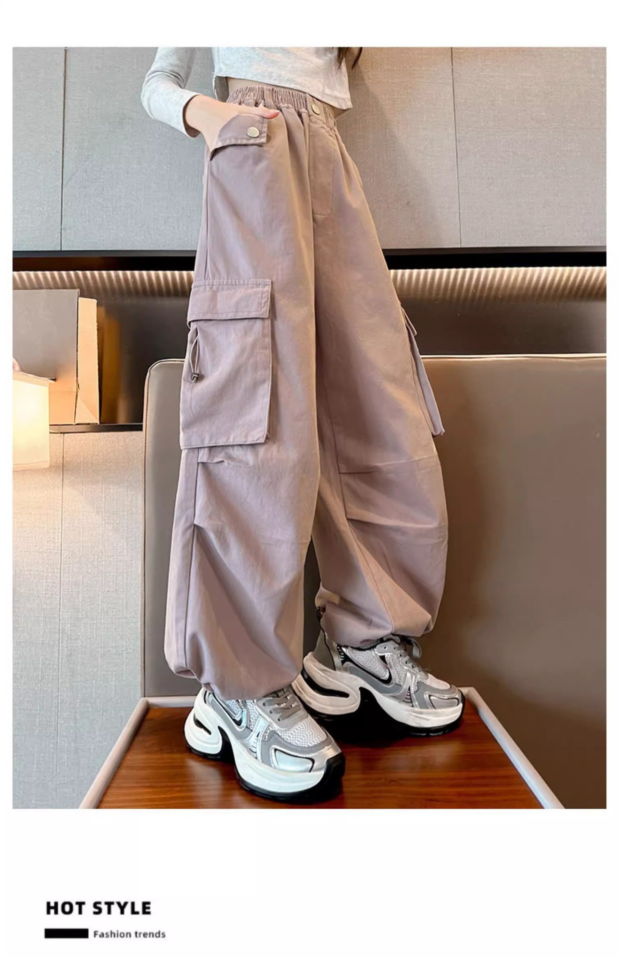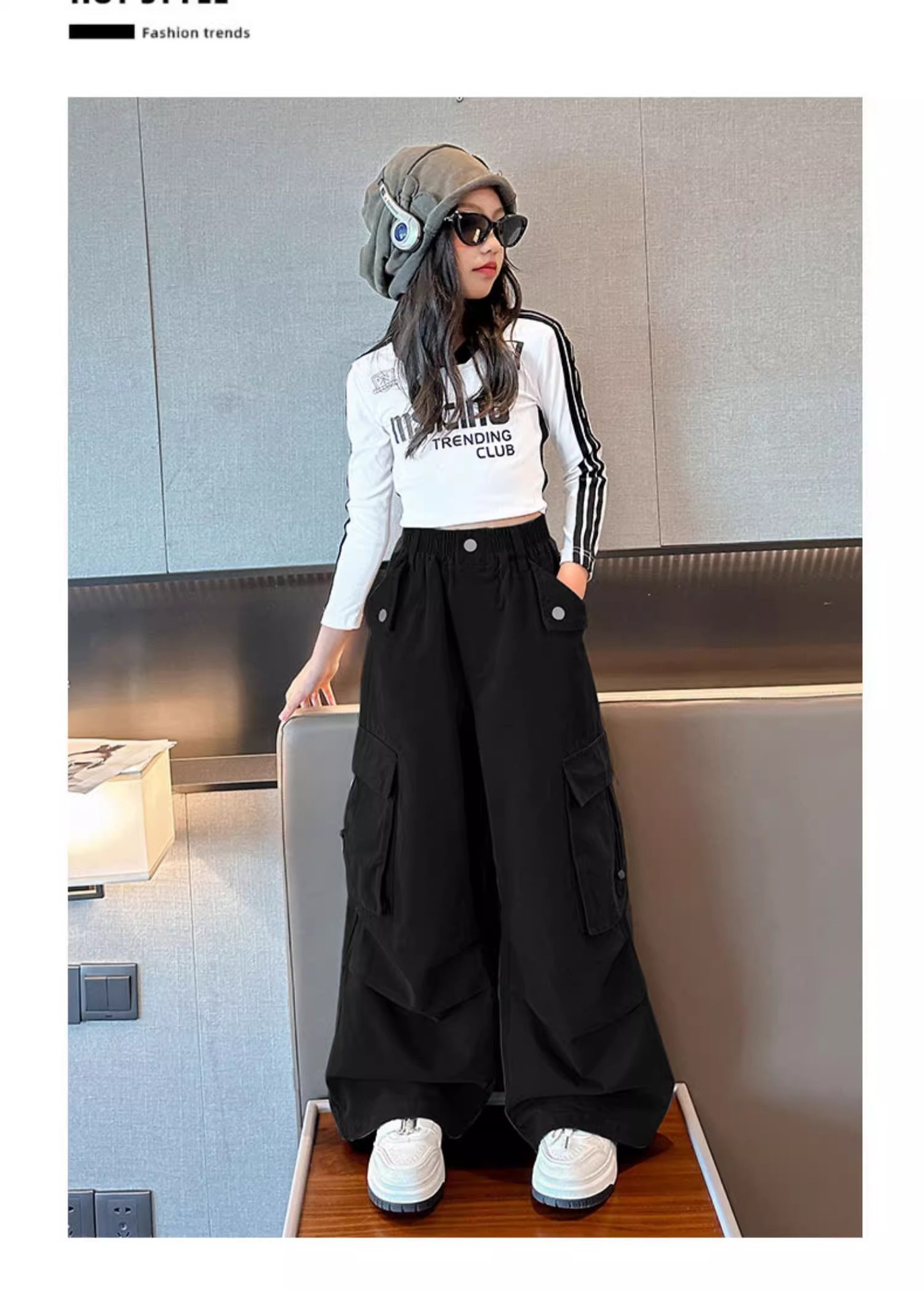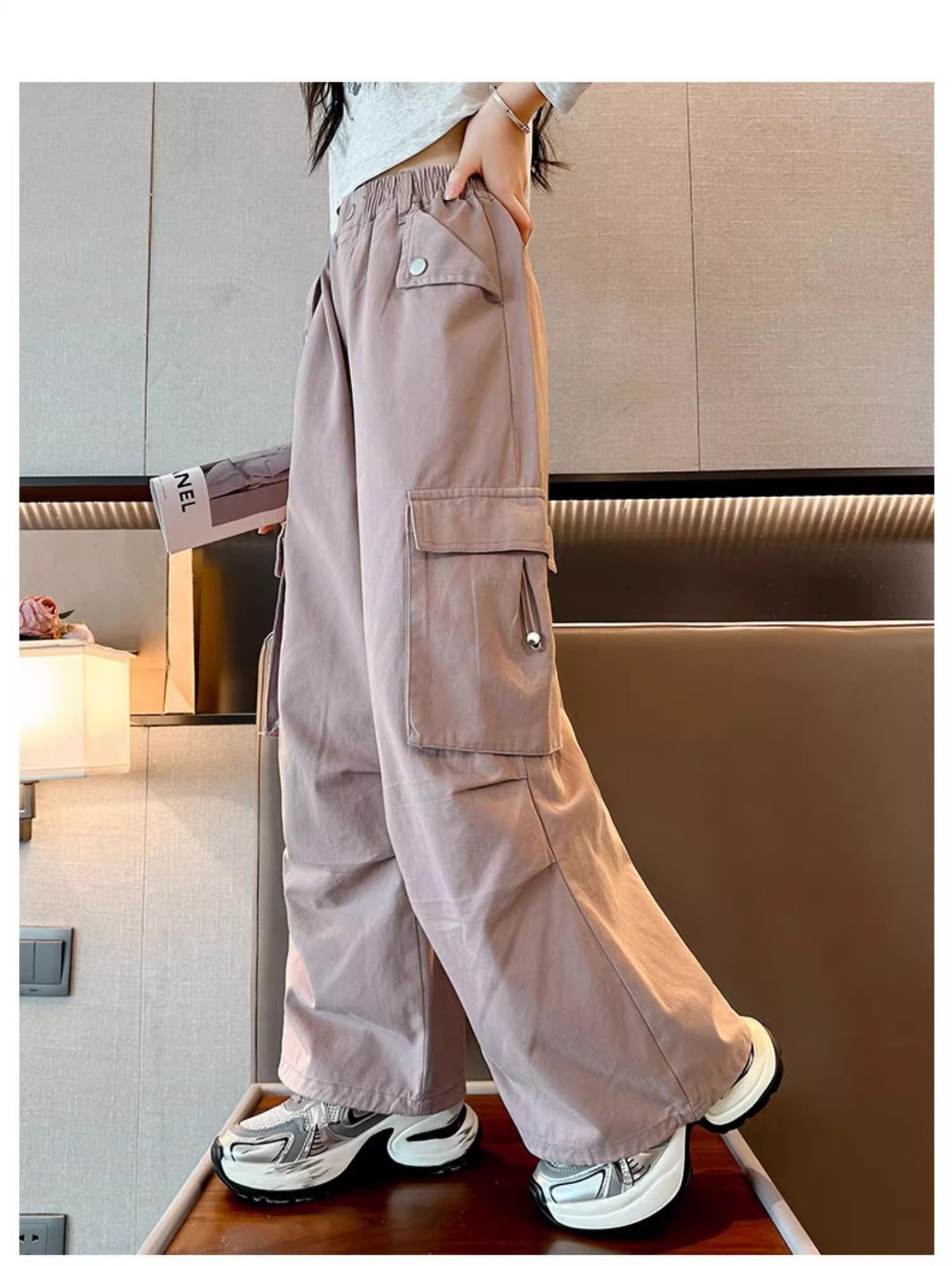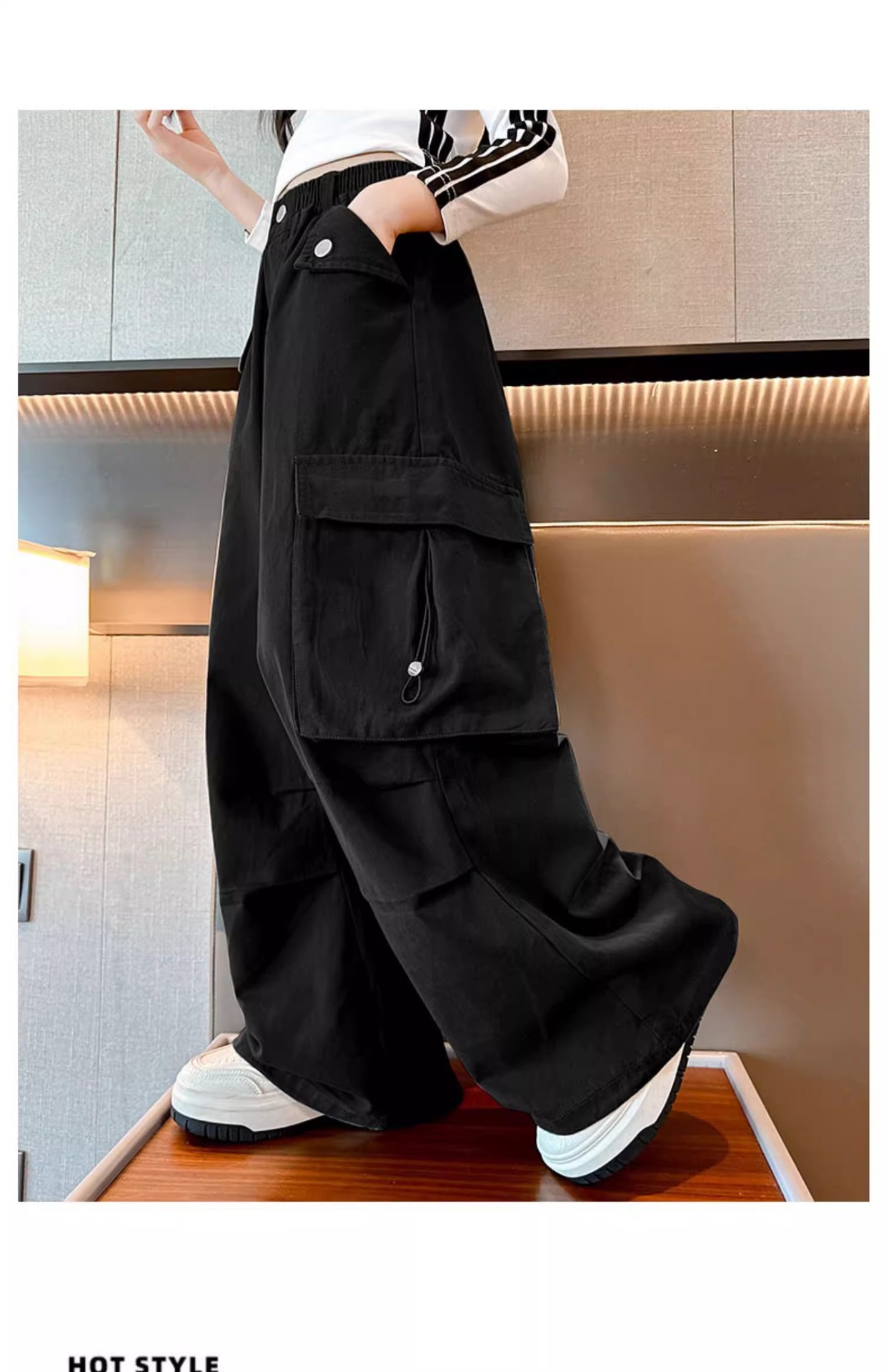소녀 크레인 바지 2024 새로운 가을 원피스 서양 스타일 느슨한 캐주얼 넓은 다리 바지 어린이 유행 봄과 가을 바지스토어 가기