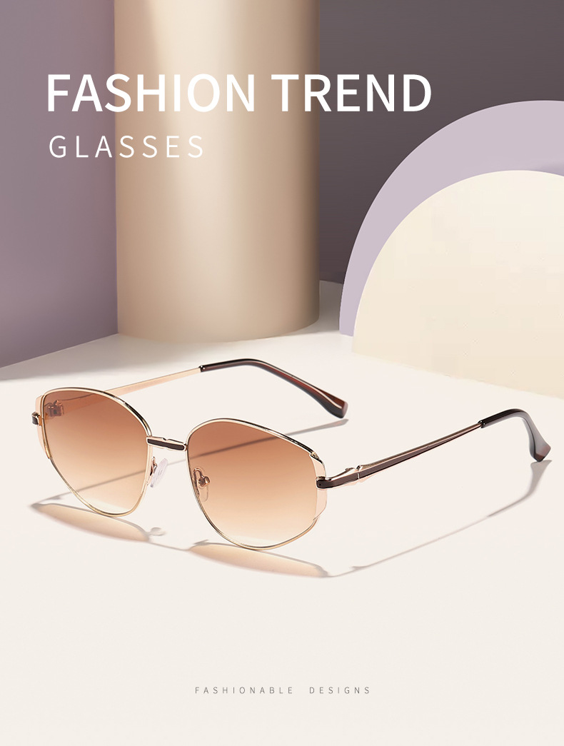 국경 간 새로운 레트로 작은 프레임 금속 선글라스 여성 유럽과 미국의 하이 엔드 얼굴 작은 야외 자외선 방지 선글라스