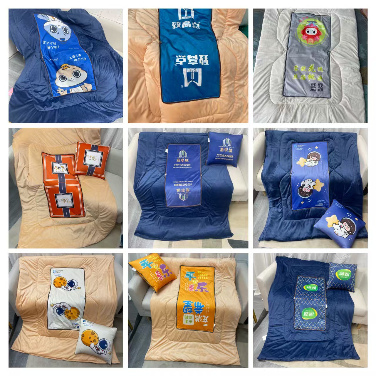 로고가 인쇄된 베개 이불, 겸용 소파, 자동차, 사무실 낮잠베개, 접이식 에어컨 이불, 투인원스토어 가기