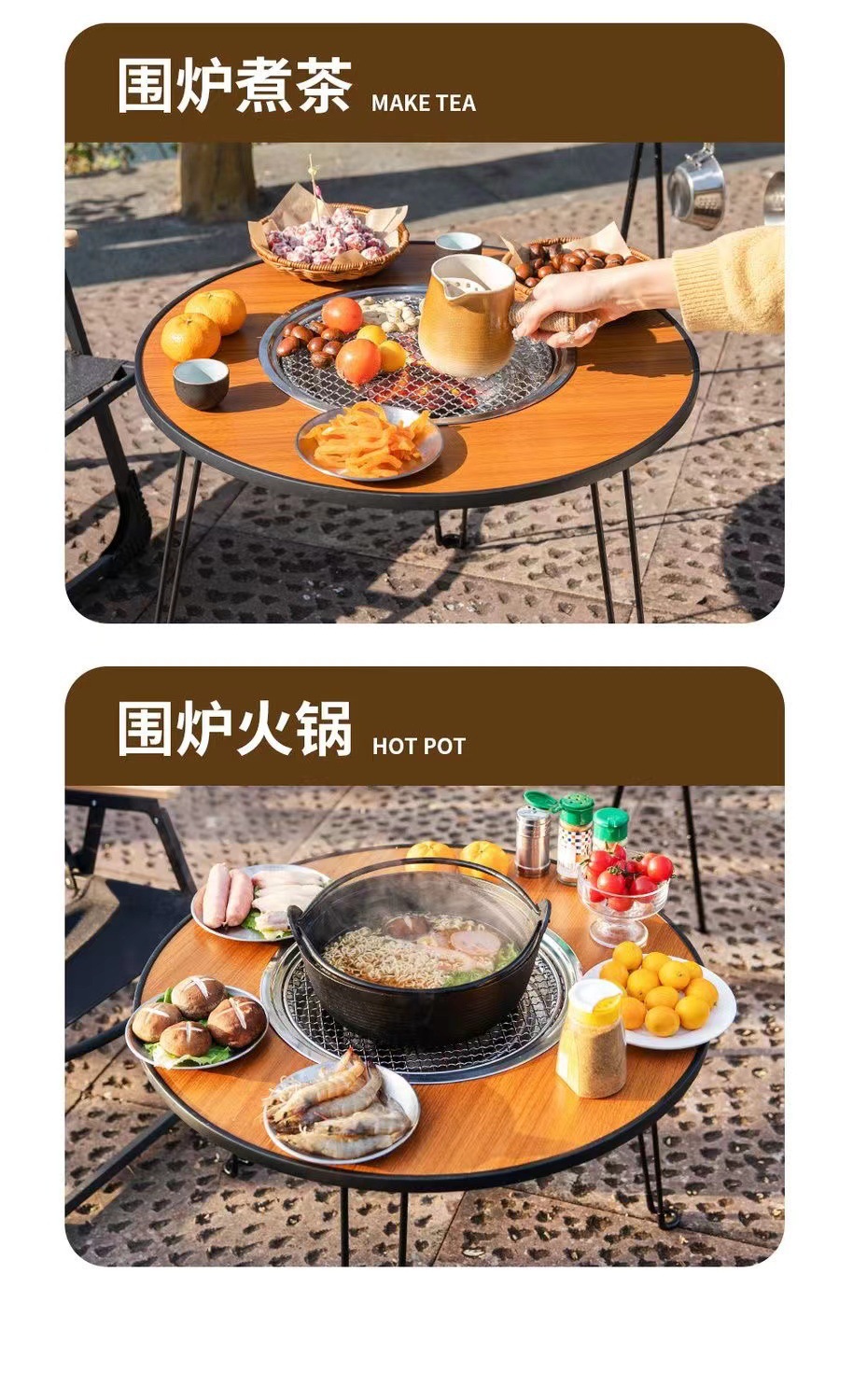 • [난로 주변에서 차를 끓이는 원형 테이블] 난로 주변 원형 테이블 + 그릴 세트