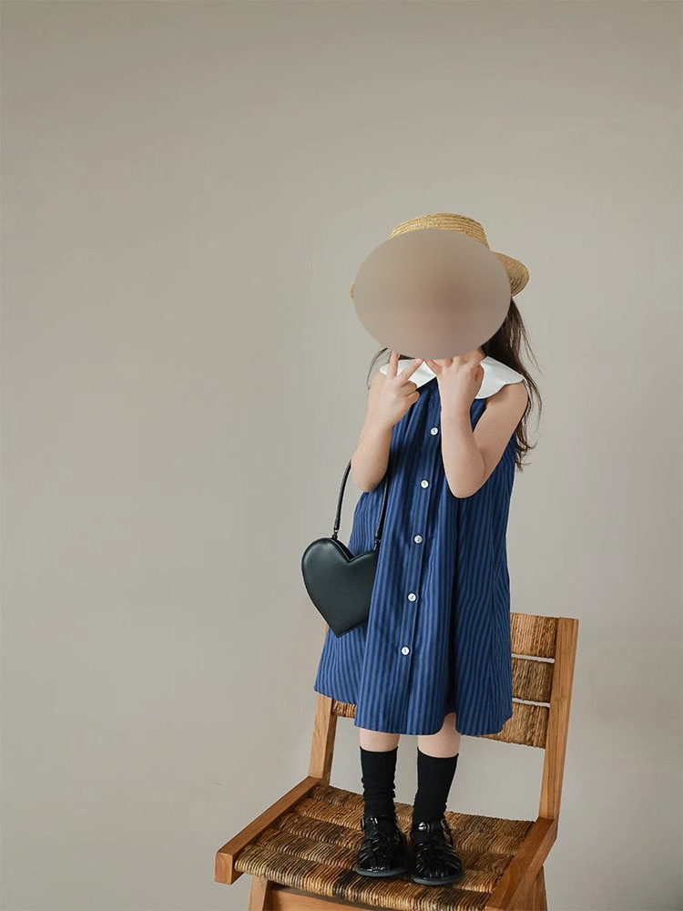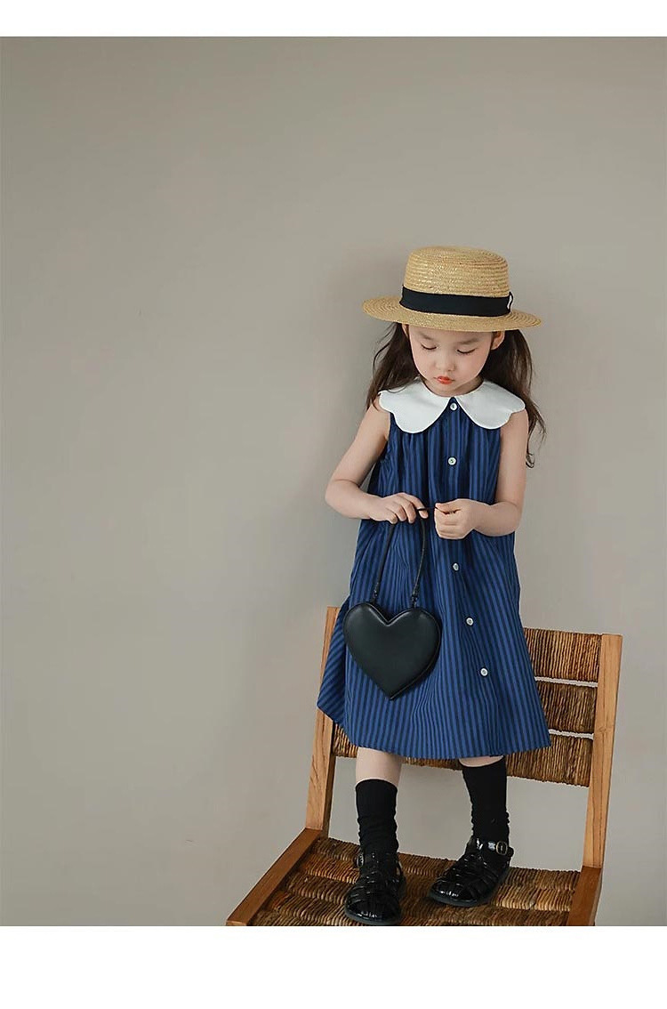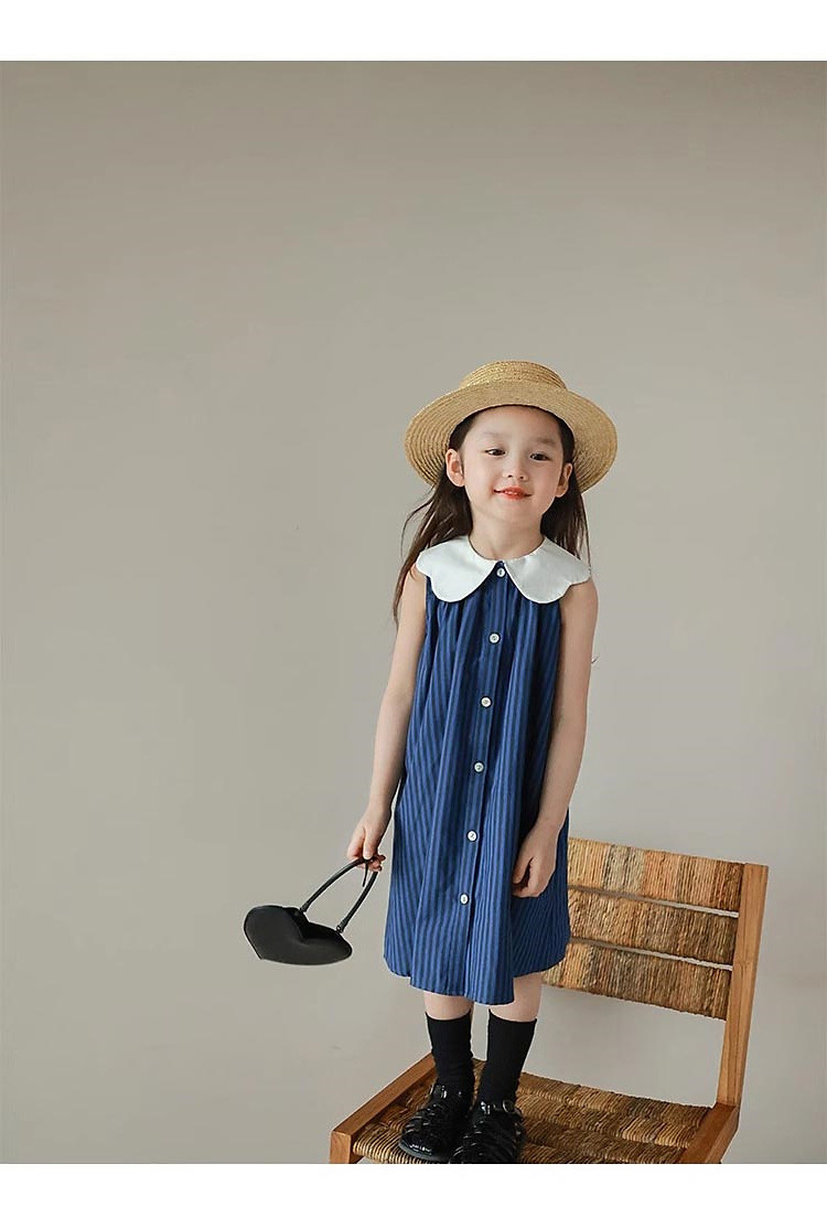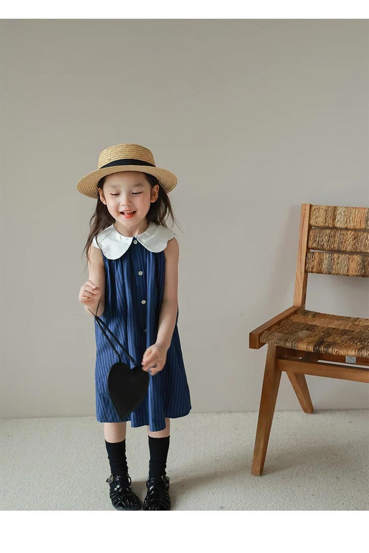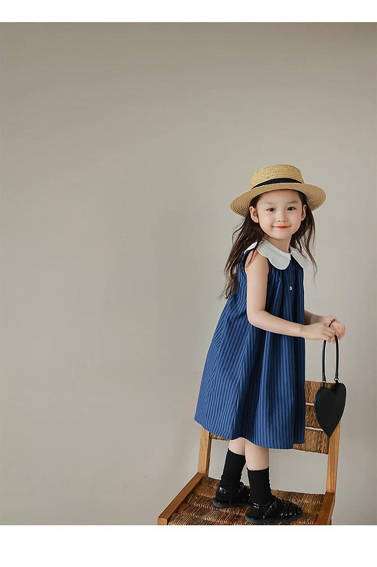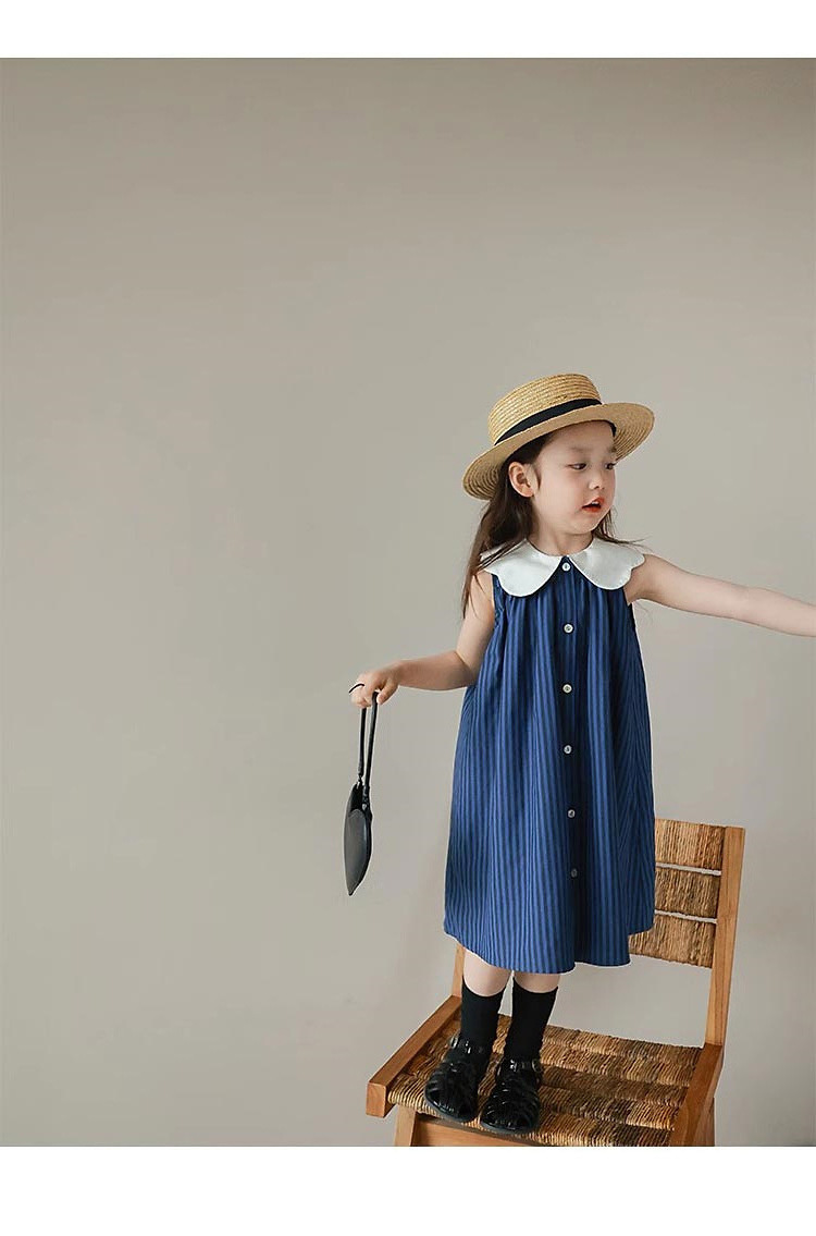 여자 원피스 여름 새로운 한국 버전의 외국 스타일 큰 옷깃 어두운 줄무늬가 아이들에게 머리카락 한 세대 원피스스토어 가기