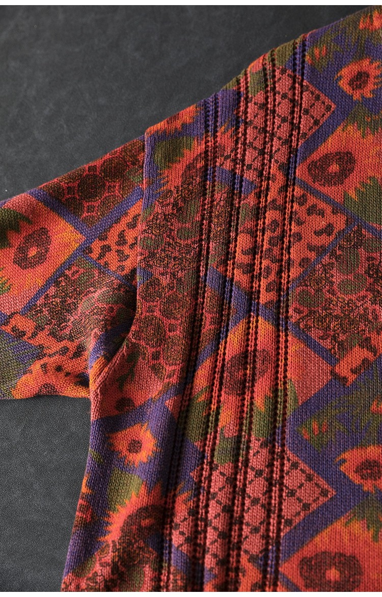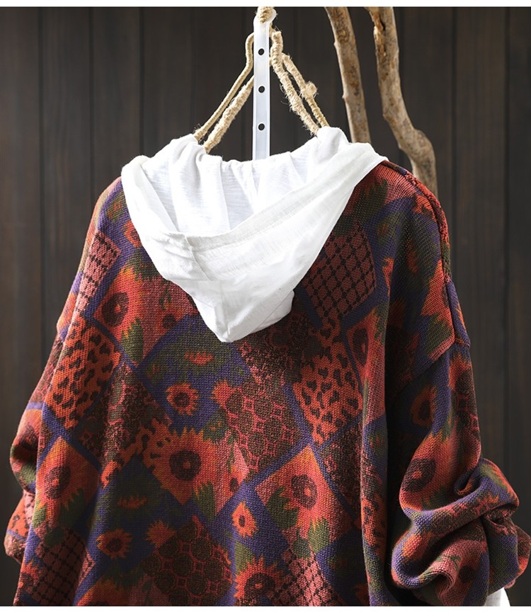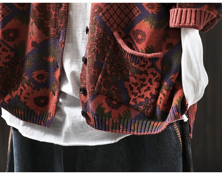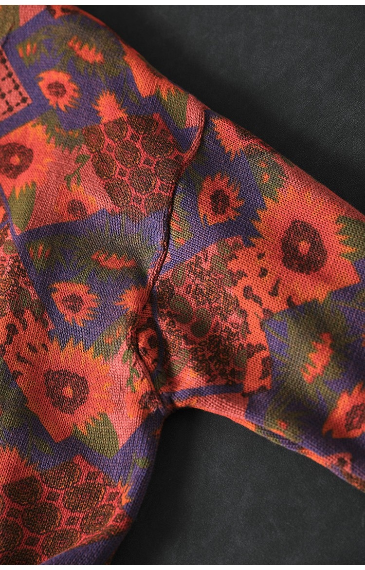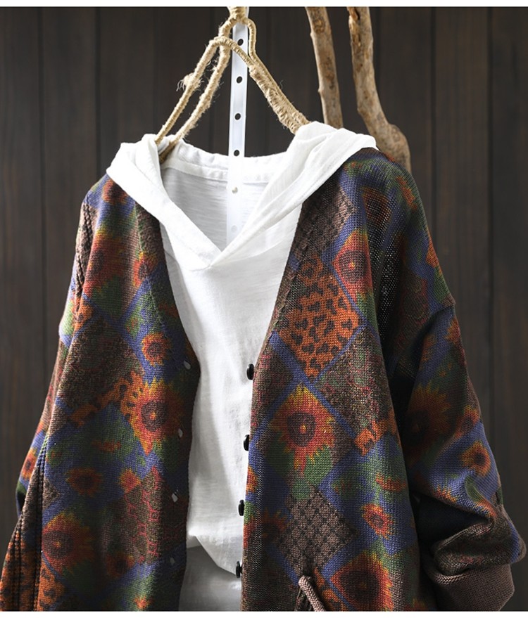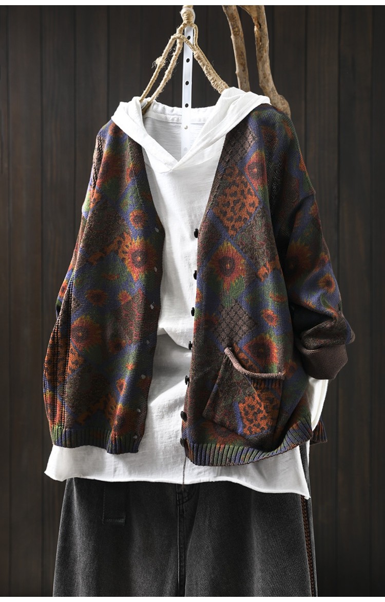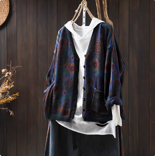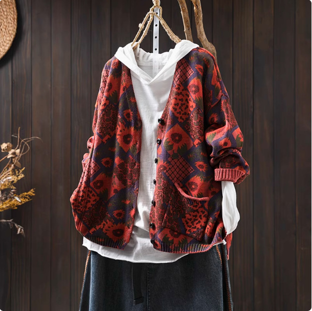 해바라기 인쇄 면 니트 카디건 여성 느슨한 고기 커버 2025 봄 새로운 복고풍 캐주얼 외부 재킷
