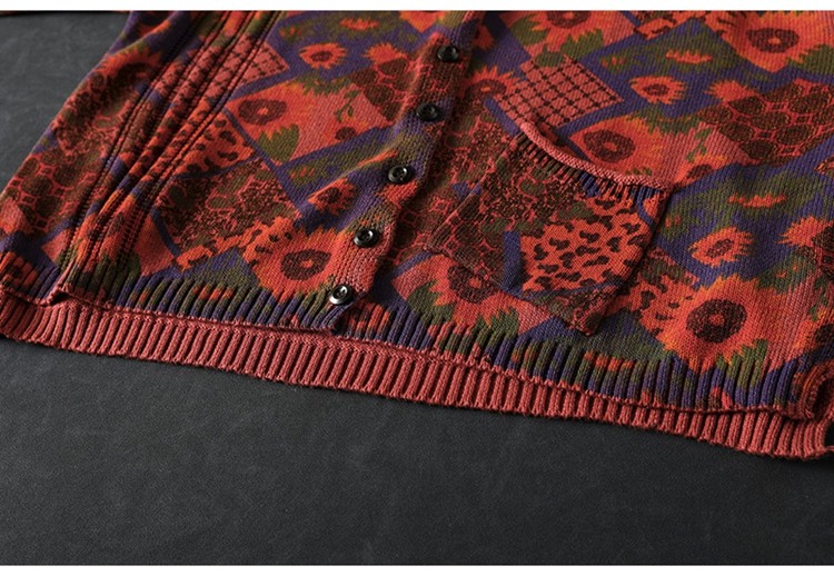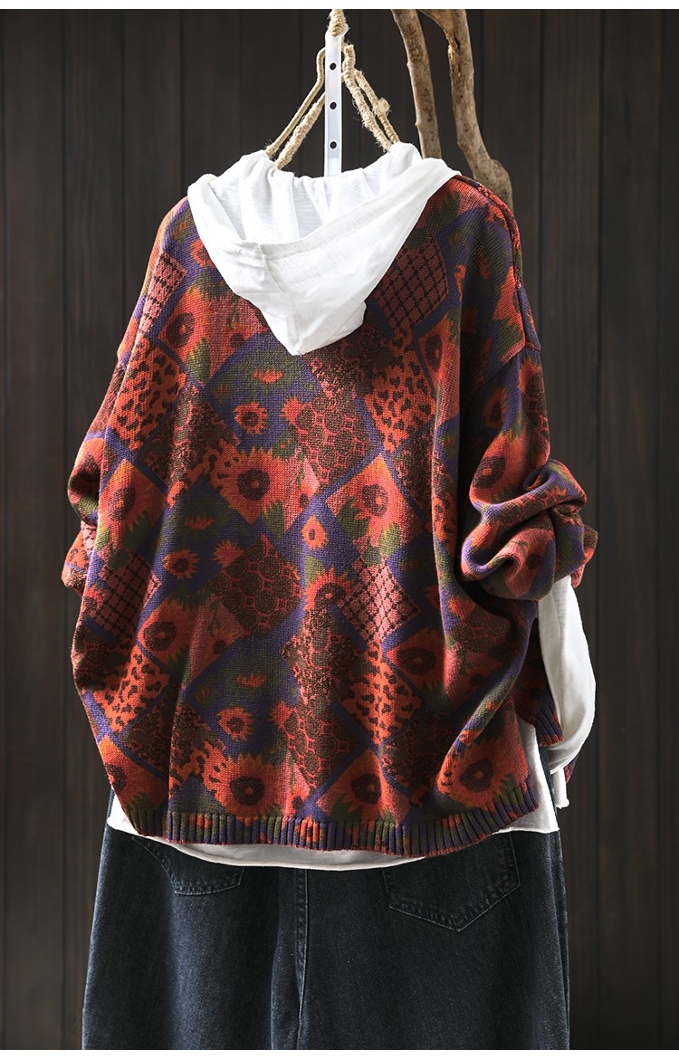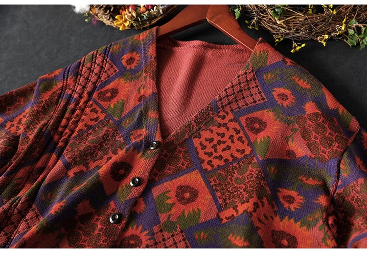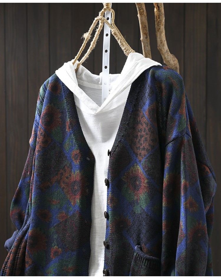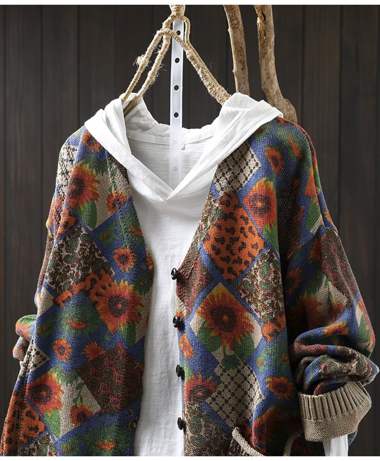 해바라기 인쇄 면 니트 카디건 여성 느슨한 고기 커버 2025 봄 새로운 복고풍 캐주얼 외부 재킷스토어 가기