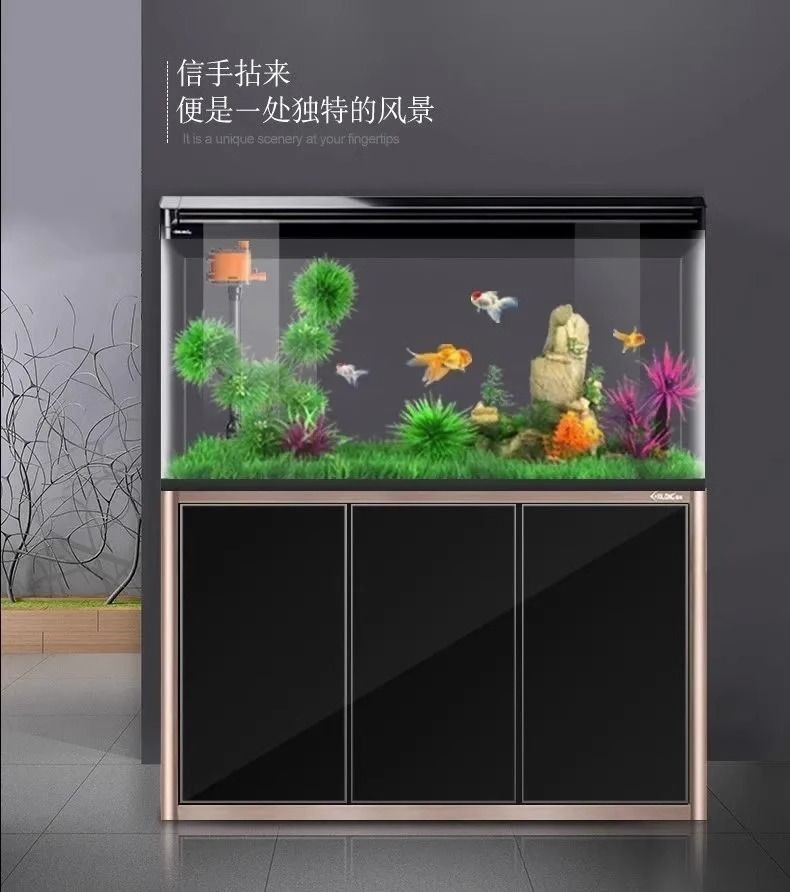 어항 거실을위한 중소 수족관 게으른 사람들을위한 대형 가정용 어항 물 없는 생태 유리 금붕어 탱크 캐비닛