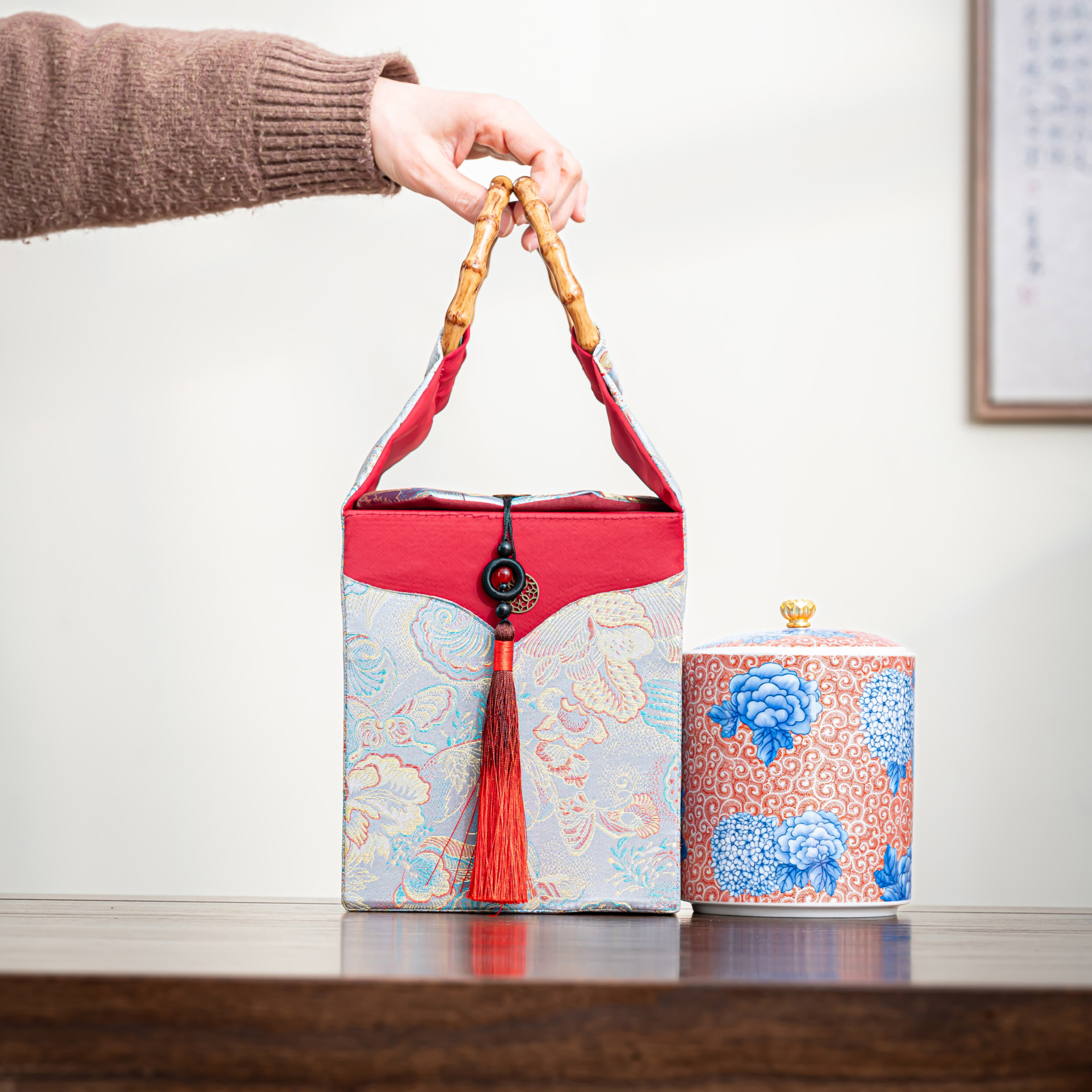 • 에나멜 꽃 녹색 단일 항아리 + 브로케이드 가방