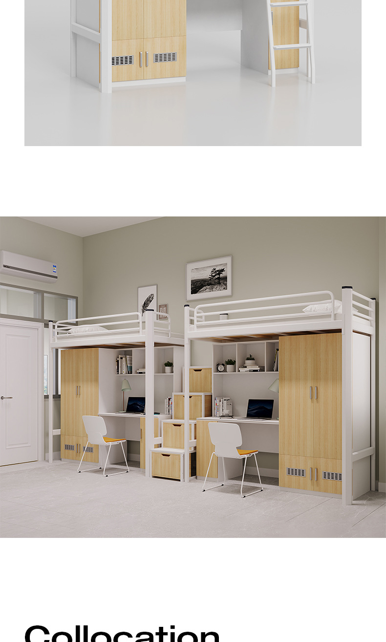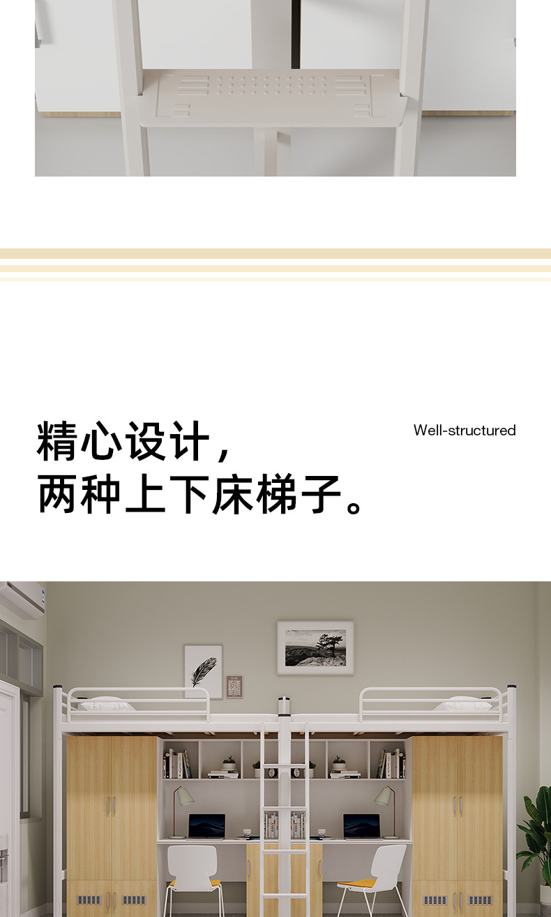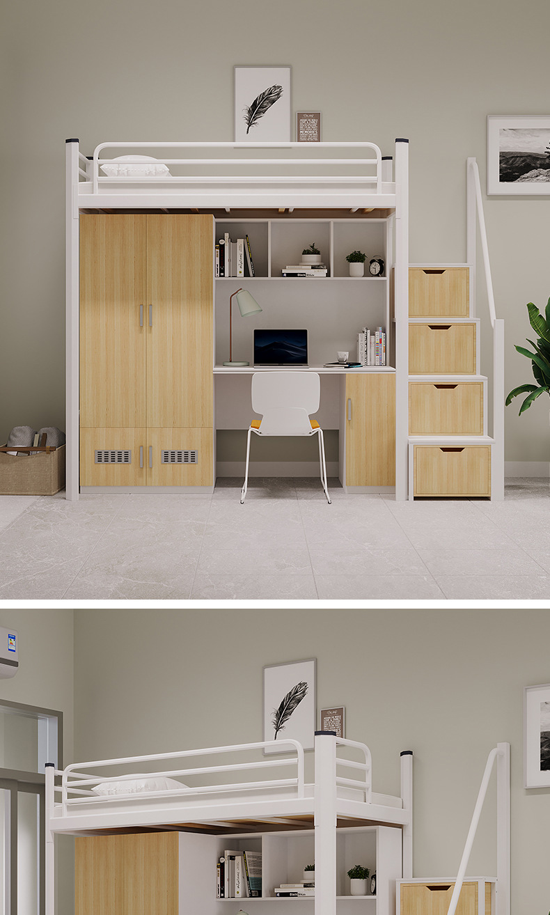 아파트 침대, 대학 기숙사, 상단 침대 및 하단 테이블, 철제 및 목재 조합, 옷장이 있는 하이 및 로우 침대, 철제 프레임 침대, 침실 철제 침대