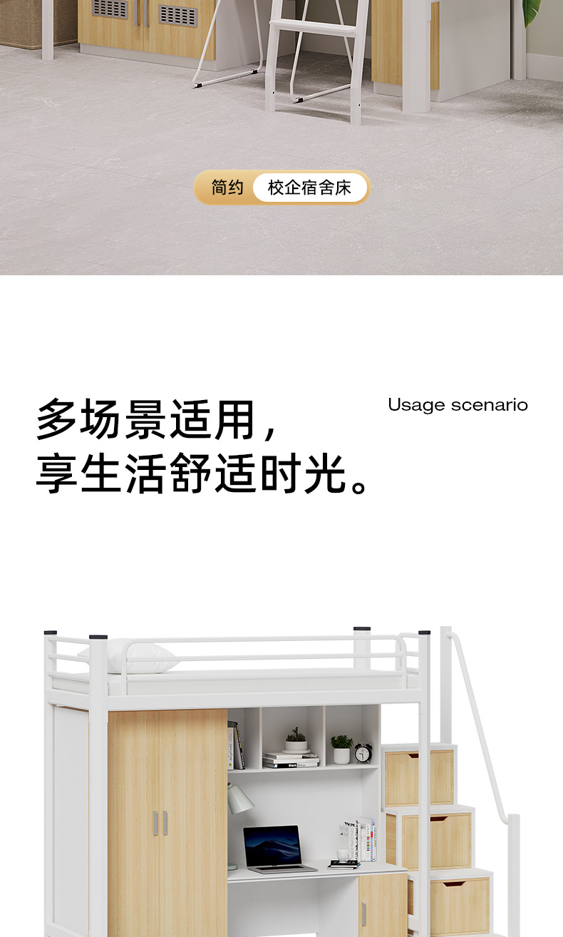아파트 침대, 대학 기숙사, 상단 침대 및 하단 테이블, 철제 및 목재 조합, 옷장이 있는 하이 및 로우 침대, 철제 프레임 침대, 침실 철제 침대스토어 가기