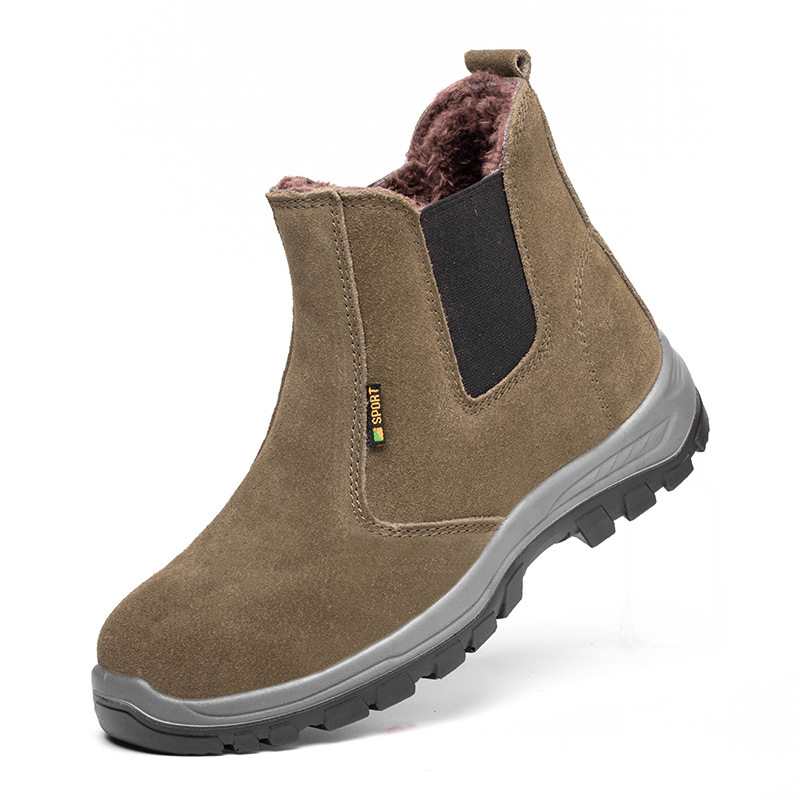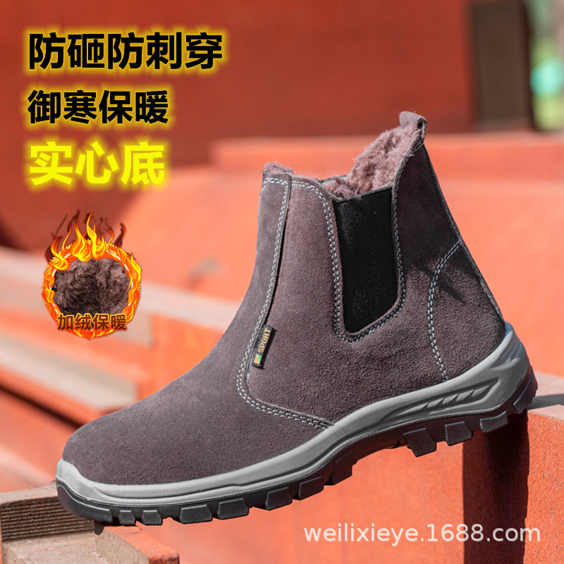 겨울 기모 소 가죽 상부 노동 보호 신발 슬립 온 하이 탑 코튼 슈즈 스매시 방지 및 찌르기 방지 용접기 작업 신발