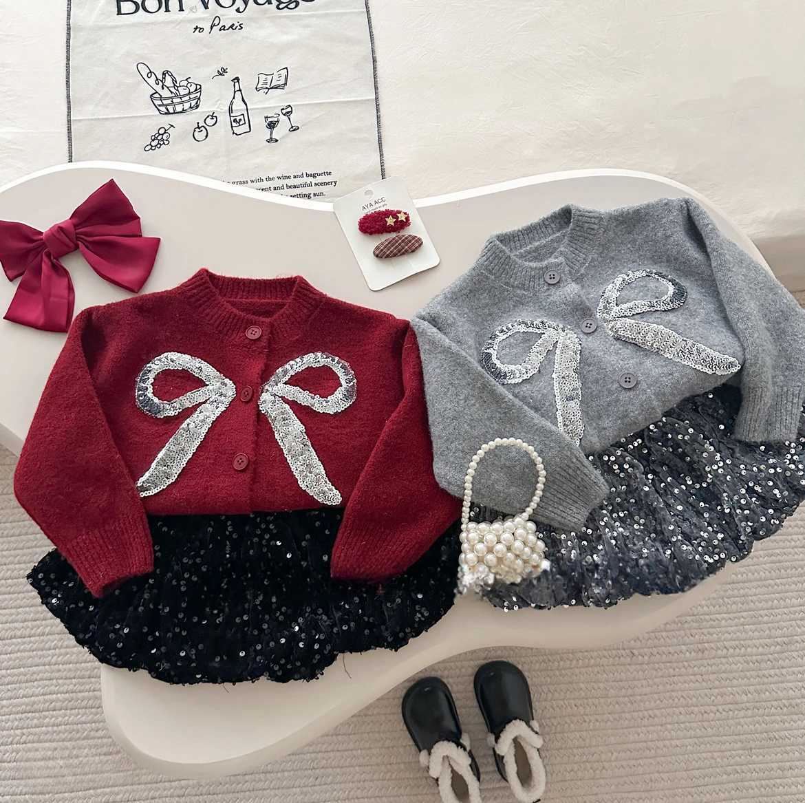 여아 가을 겨울 의류 세트 2025 새로운 스타일 아동용 패셔너블한 스웨터, 가디건, 재킷, 스커트 투피스 세트