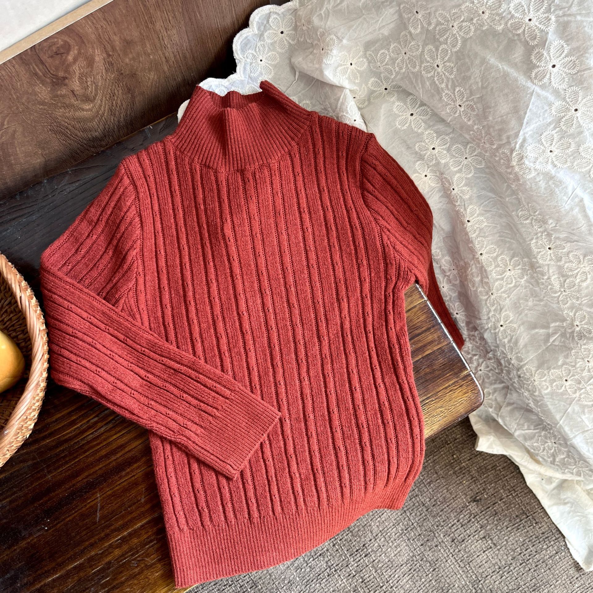 2025 가을 겨울 아동용 반터틀넥 단색 베이직 스웨터 남녀공용 신상 니트 스웨터