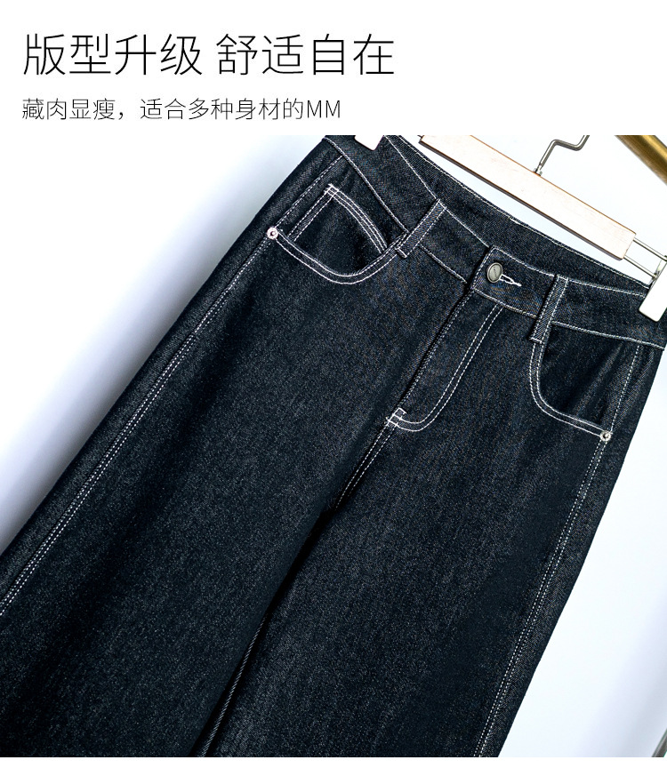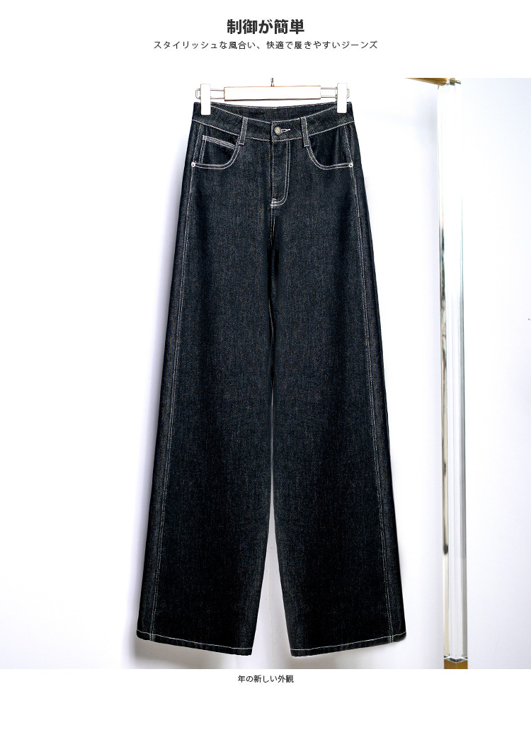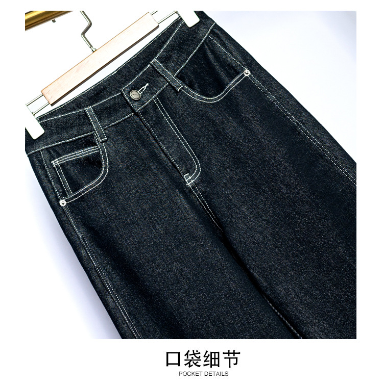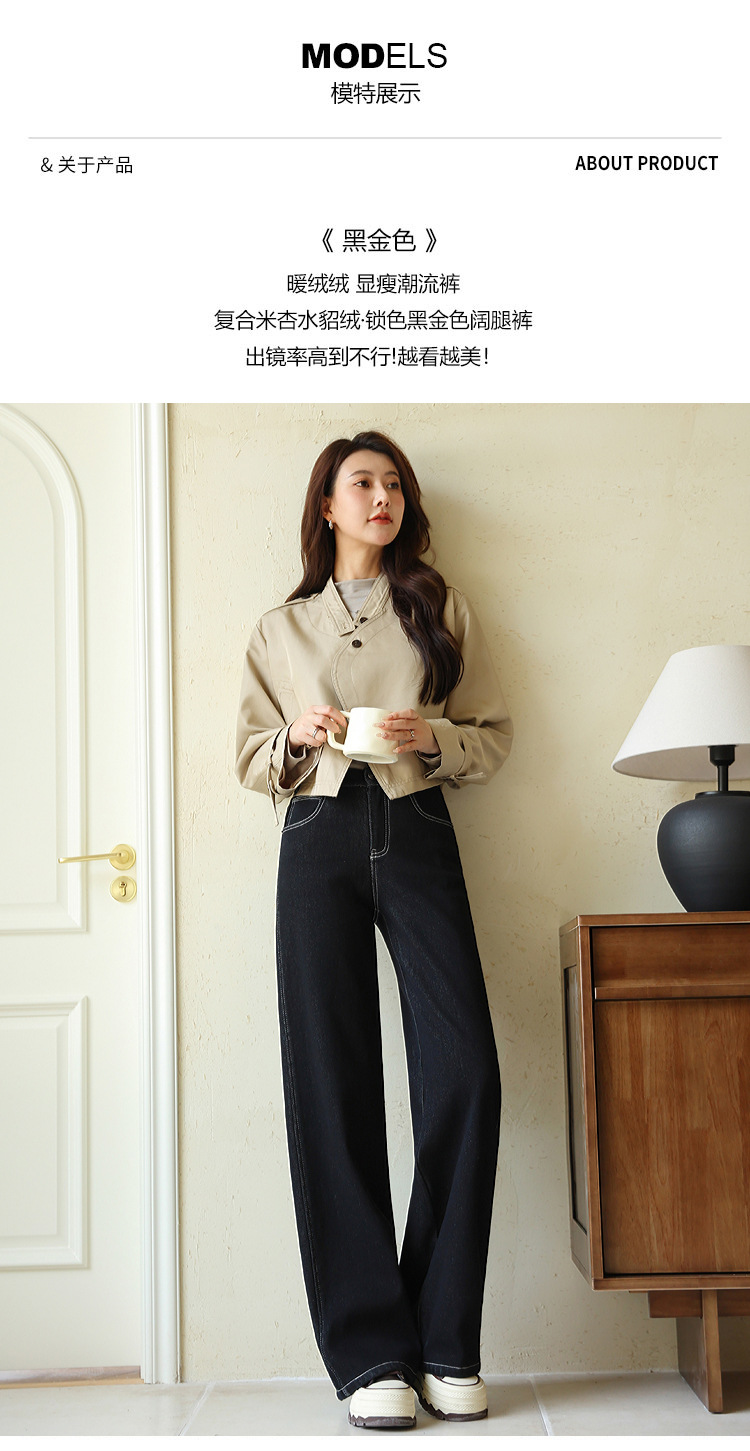 Sudu New Winter 기모 청바지 여성용 안티 페이딩 블랙 골드 사이드 스티칭 넓은 다리 바지 교수형 바지스토어 가기