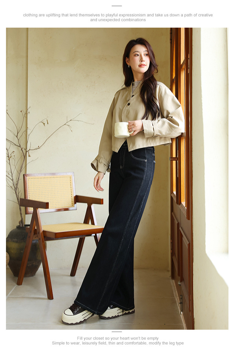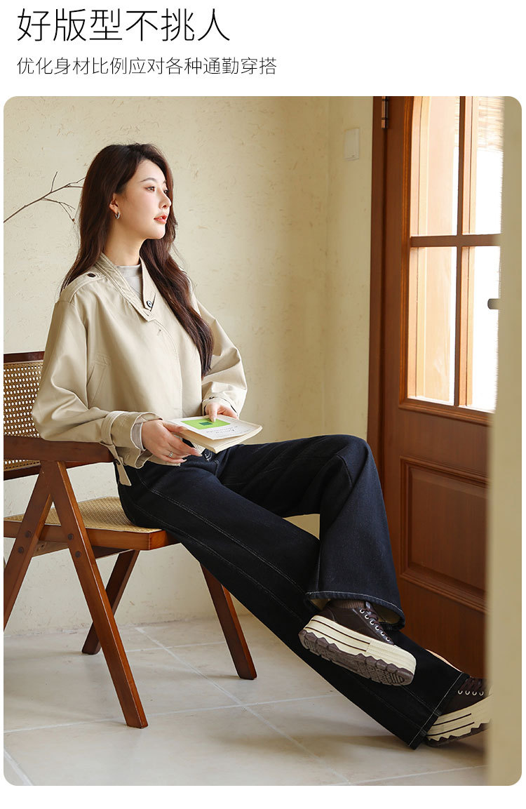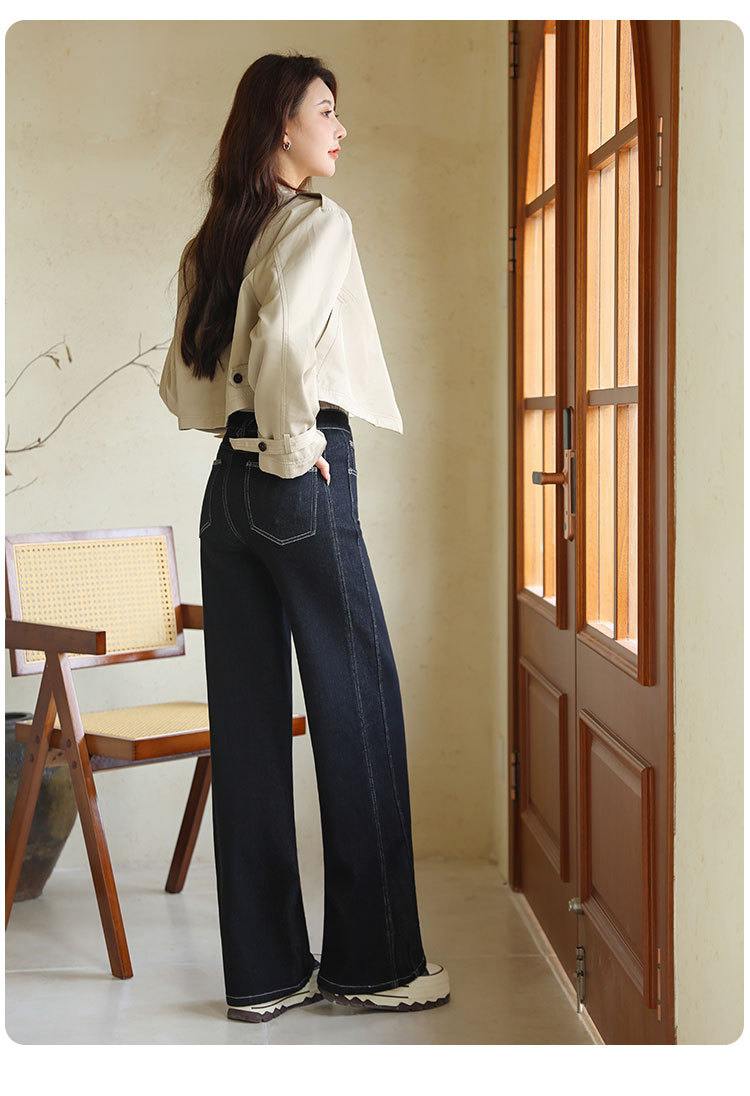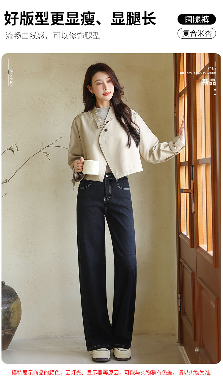 Sudu New Winter 기모 청바지 여성용 안티 페이딩 블랙 골드 사이드 스티칭 넓은 다리 바지 교수형 바지스토어 가기