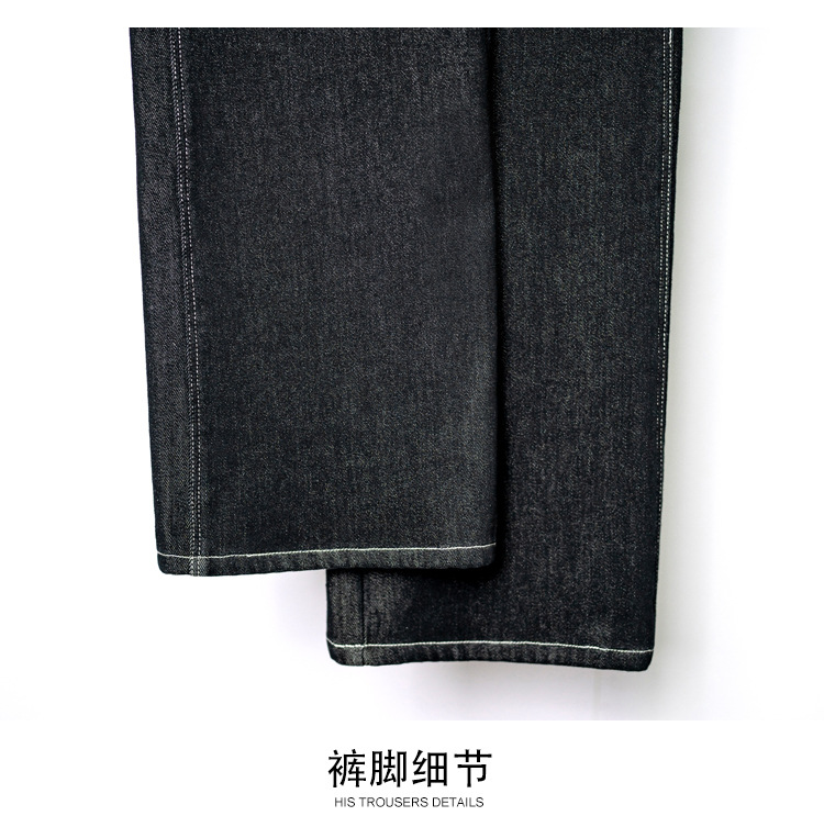 Sudu New Winter 기모 청바지 여성용 안티 페이딩 블랙 골드 사이드 스티칭 넓은 다리 바지 교수형 바지
