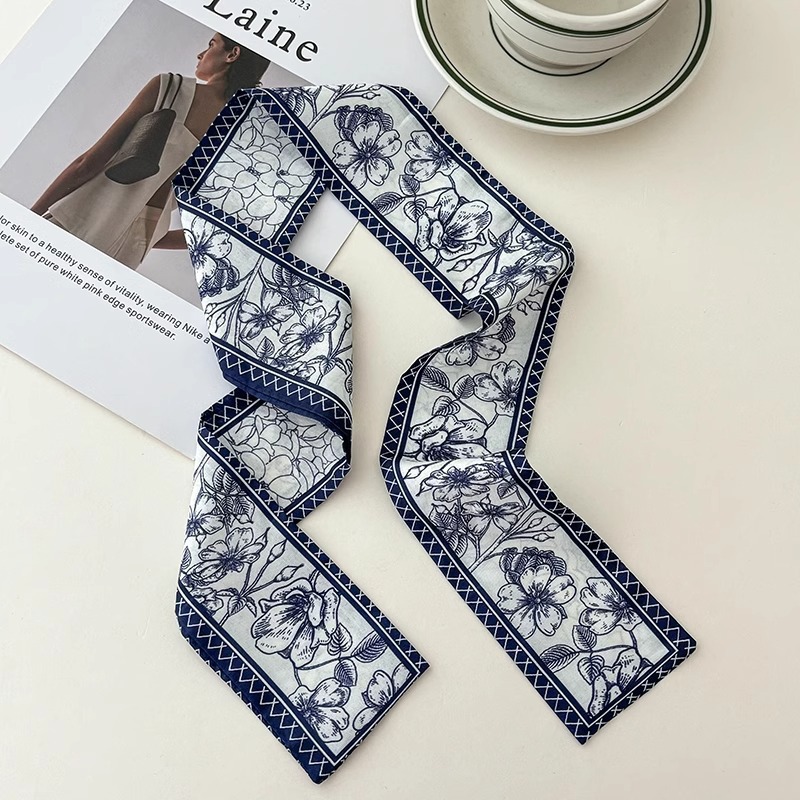 우아한 프랑스 스타일 꽃 실크 스카프 높은 색상 가치 머리 넥타이 가방 리본 올 매치 우아한 파인 좁은 긴 스카프 장식스토어 가기