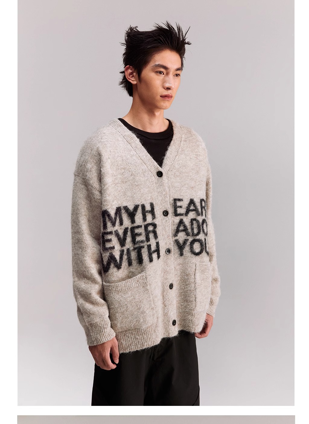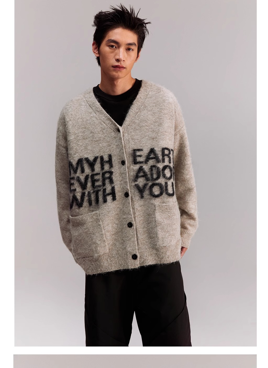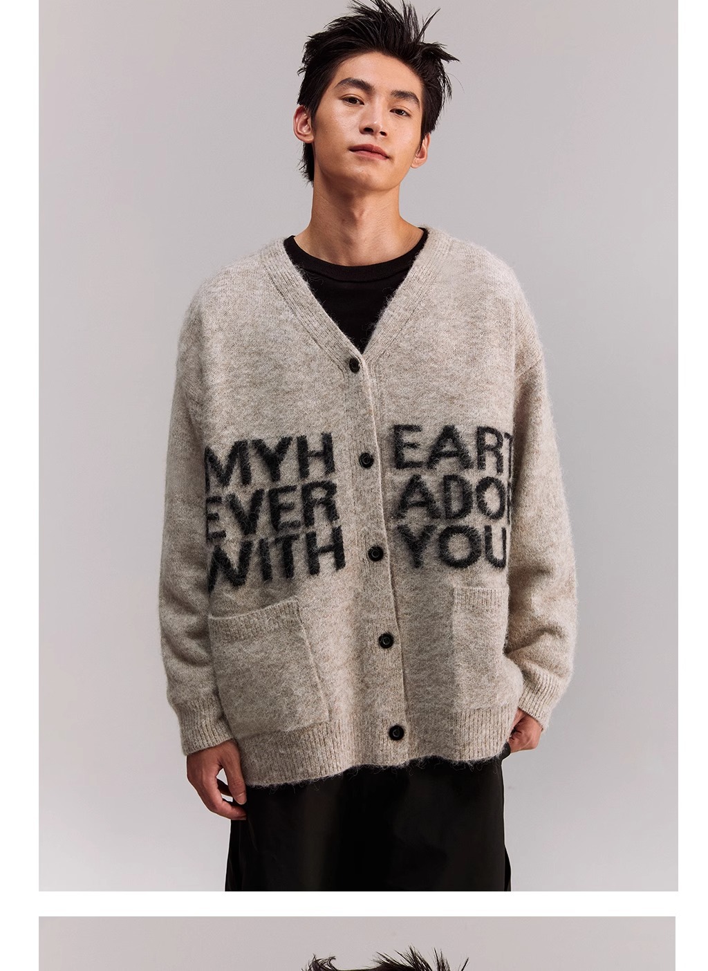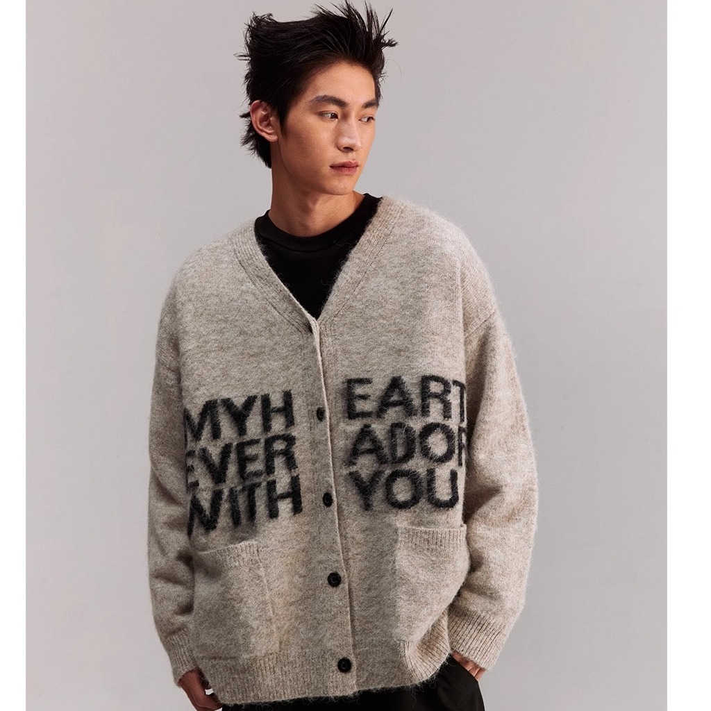 가을과 겨울 느슨한 복고풍 스타일 니트 코트 남성 유행 브랜드 맞춤형 편지 캐주얼 긴팔 스웨터 카디건스토어 가기