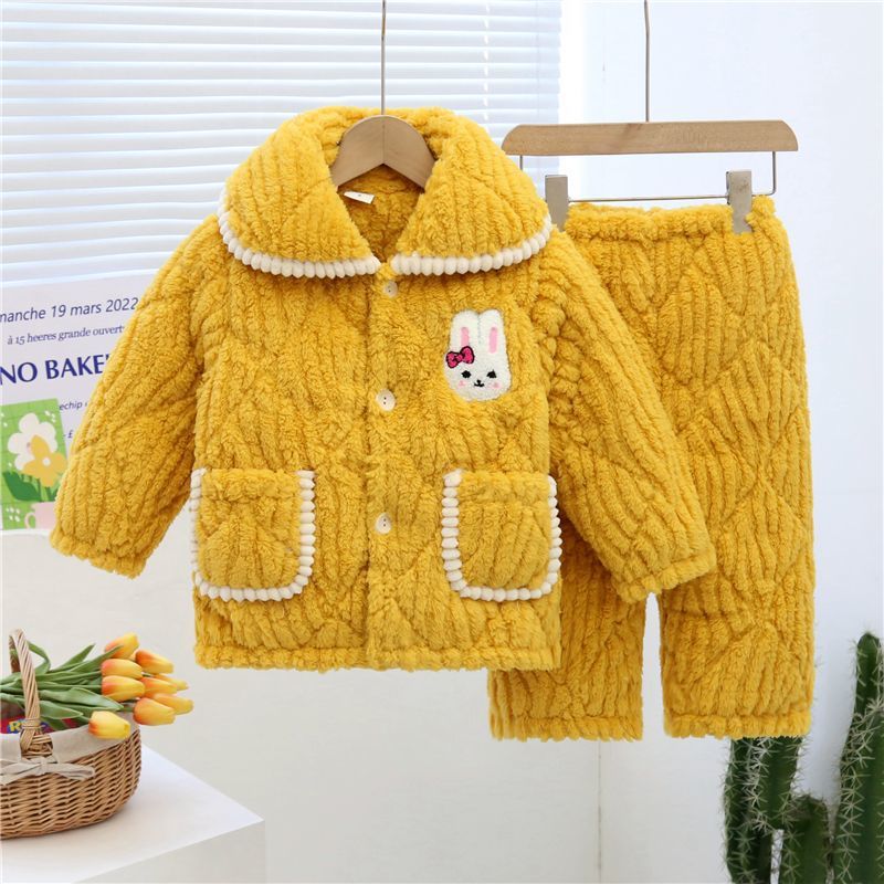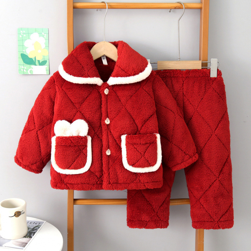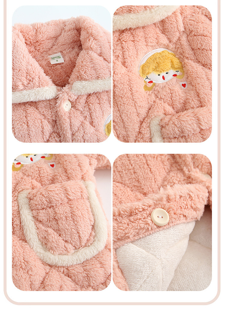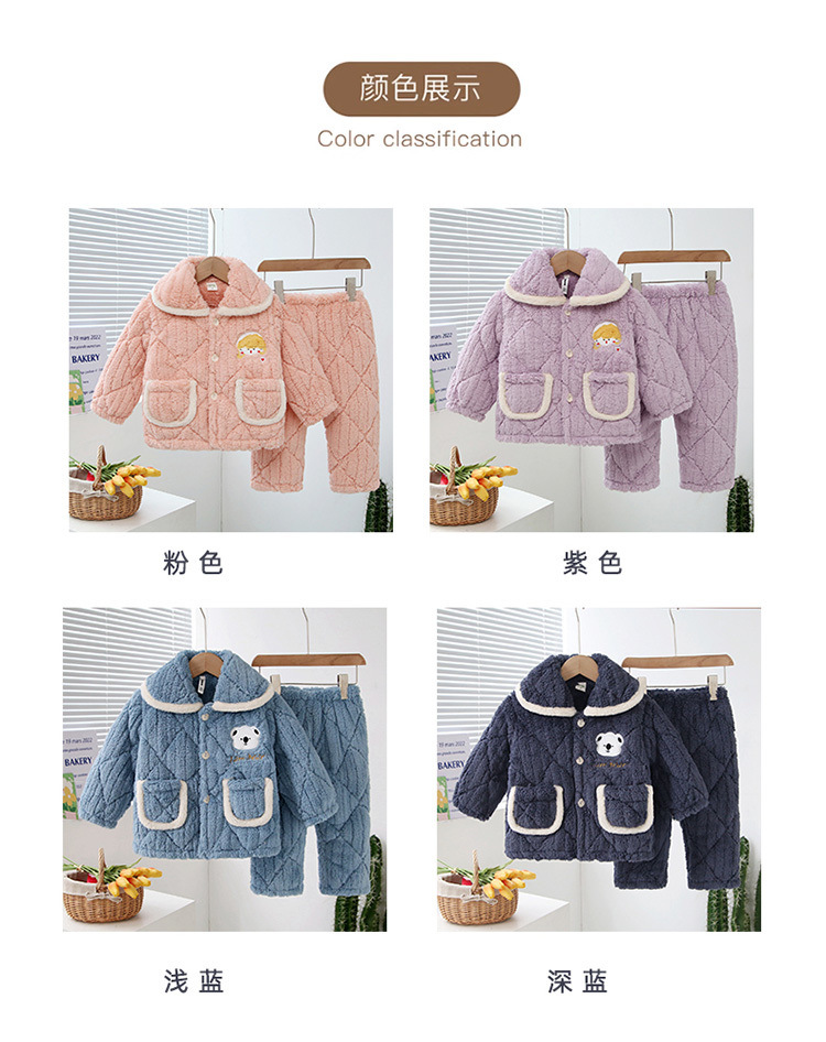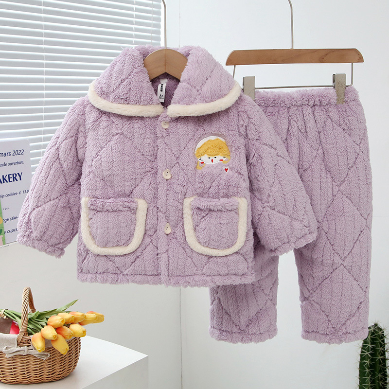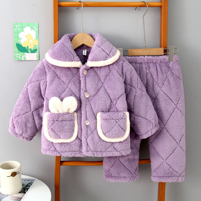 어린이 3 층 면화 겨울 따뜻한 잠옷 소녀 캐주얼 세트 옷 아기 잠옷 겨울 두꺼운 홈 옷