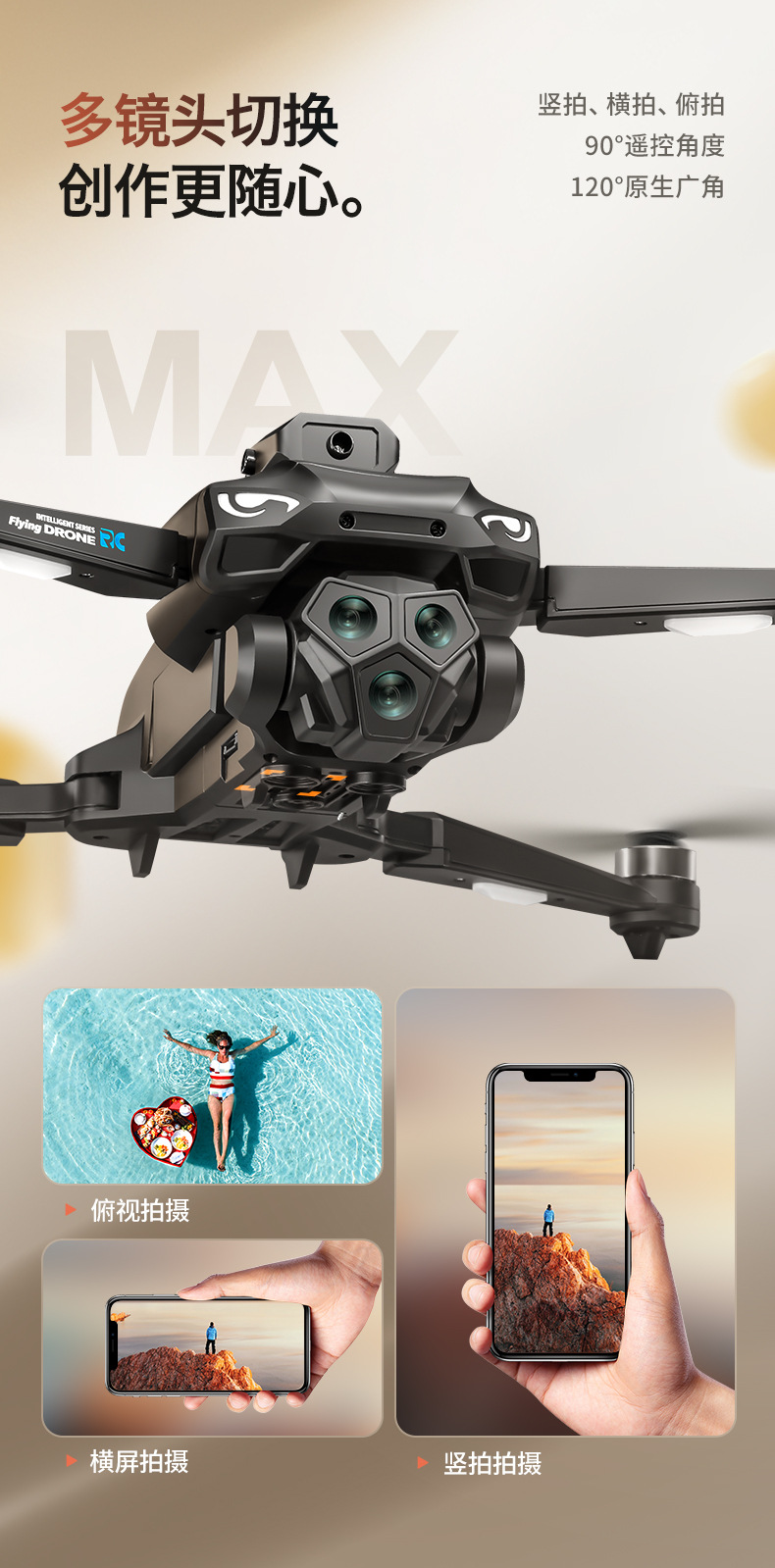 국경 간 M33max 브러시리스 드론 스크린 제어 접이식 쿼드 콥터 광학 흐름 3 카메라 항공 사진 장애물 회피 항공기 모델
