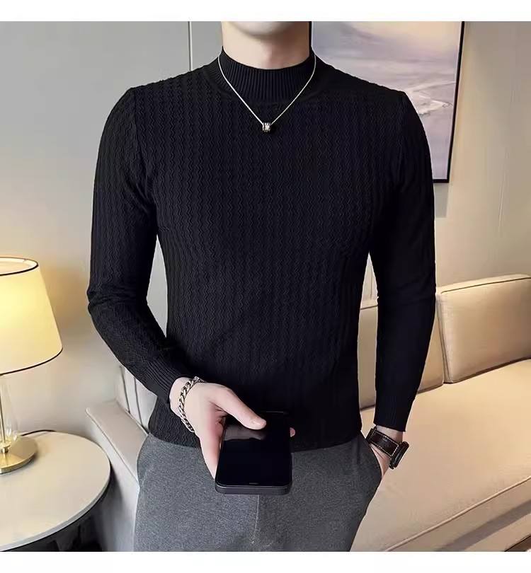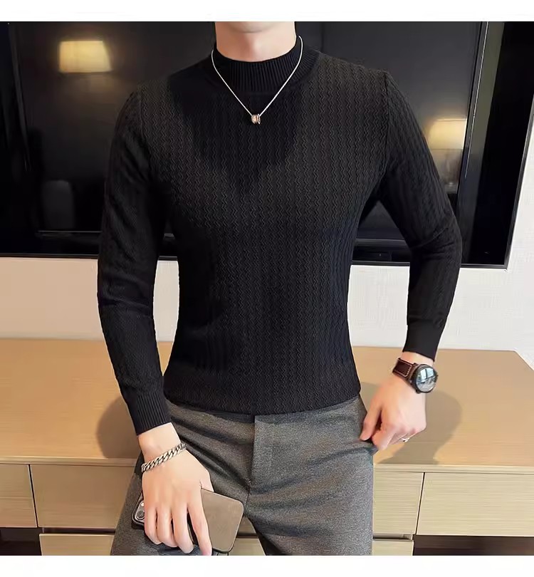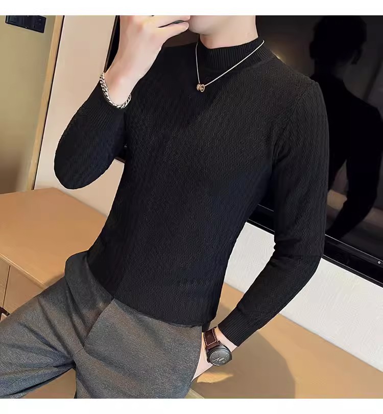 하프 터틀넥 스웨터 남자의 가을과 겨울 단색 캐주얼 베이스 스웨터 일본 스타일 트렌디 한 간단한 잘 생긴 풀오버 스웨터