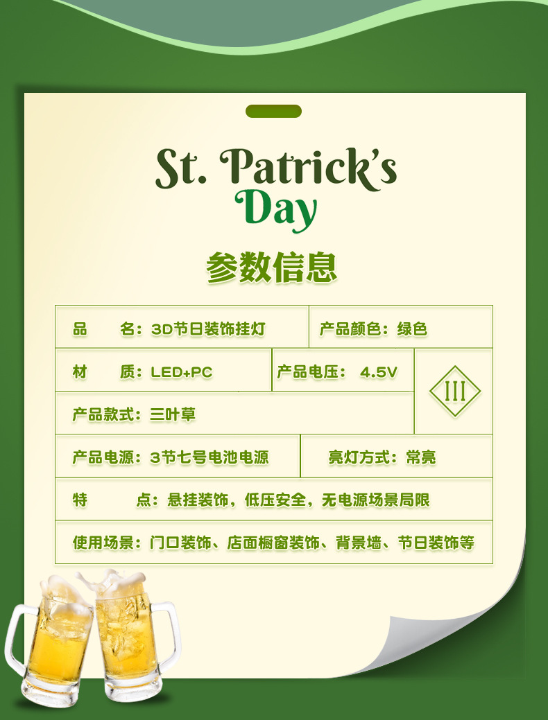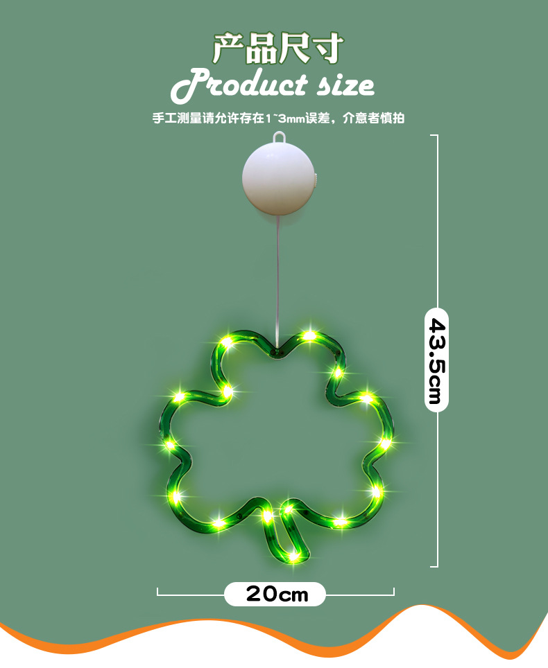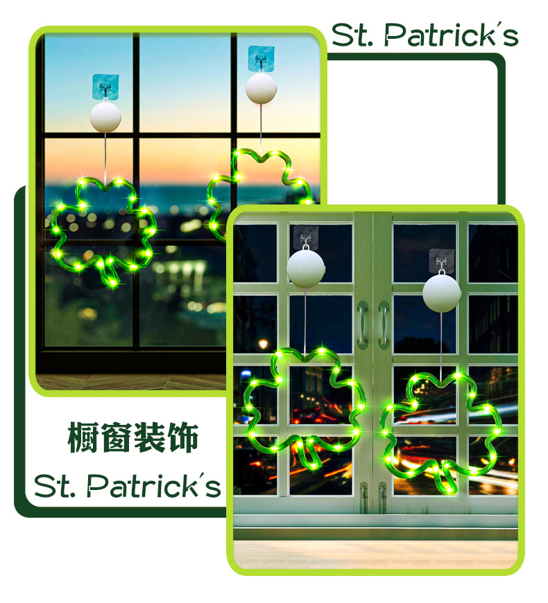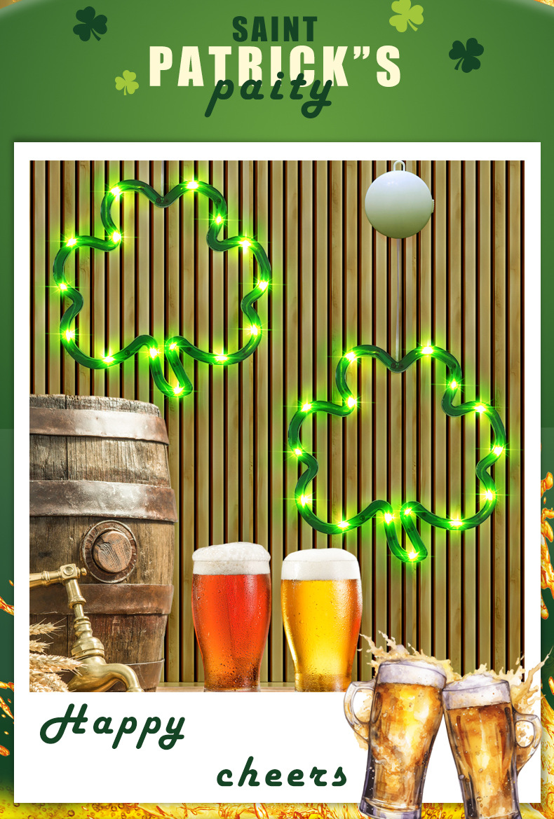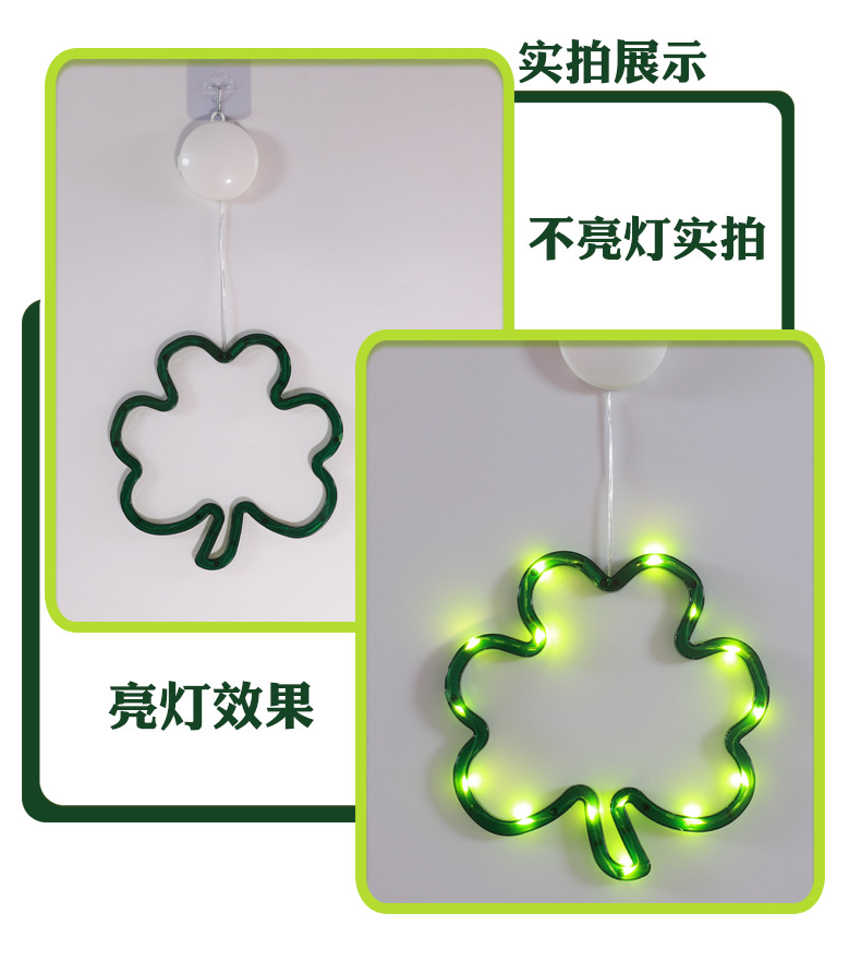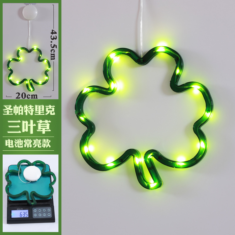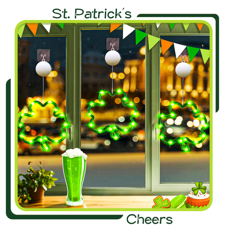 빛나는 샴록 LED 조명 펜던트 성 패트릭의 날 창 분위기 장식 아일랜드 축제 준비스토어 가기