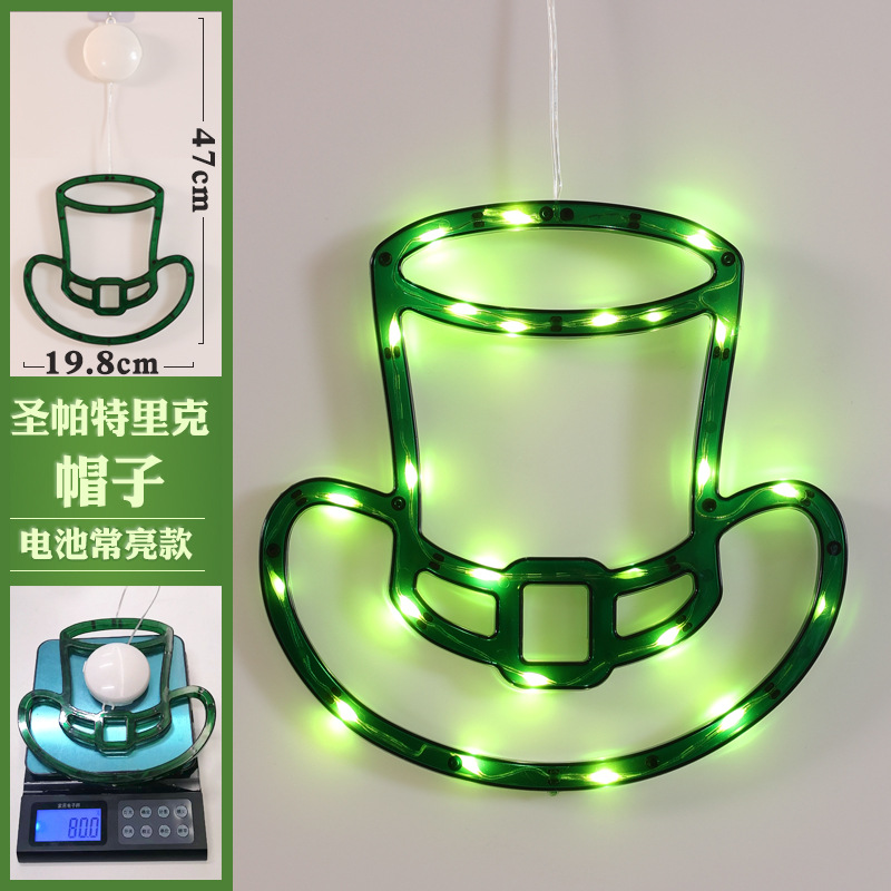 빛나는 샴록 LED 조명 펜던트 성 패트릭의 날 창 분위기 장식 아일랜드 축제 준비