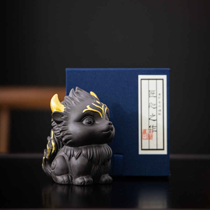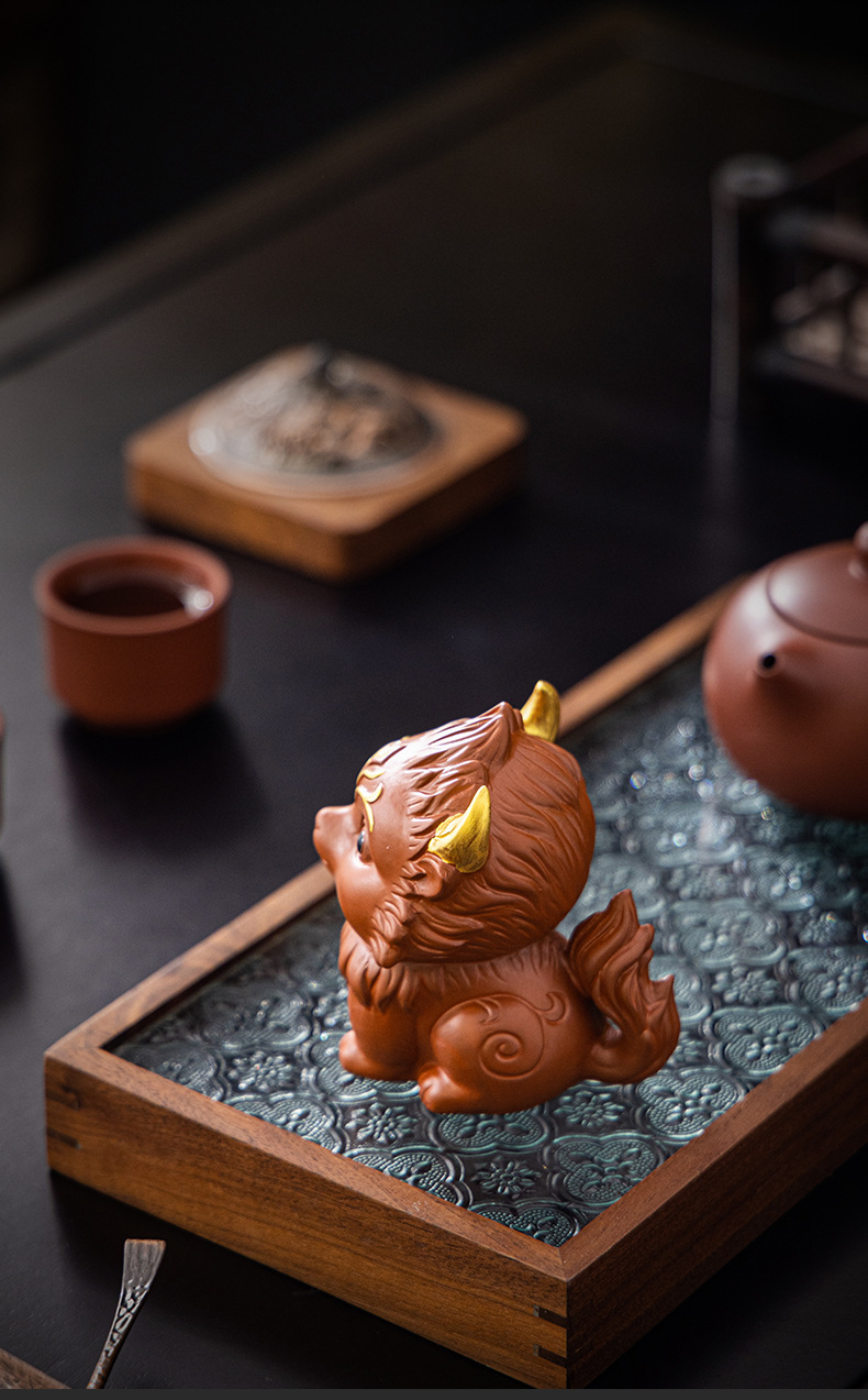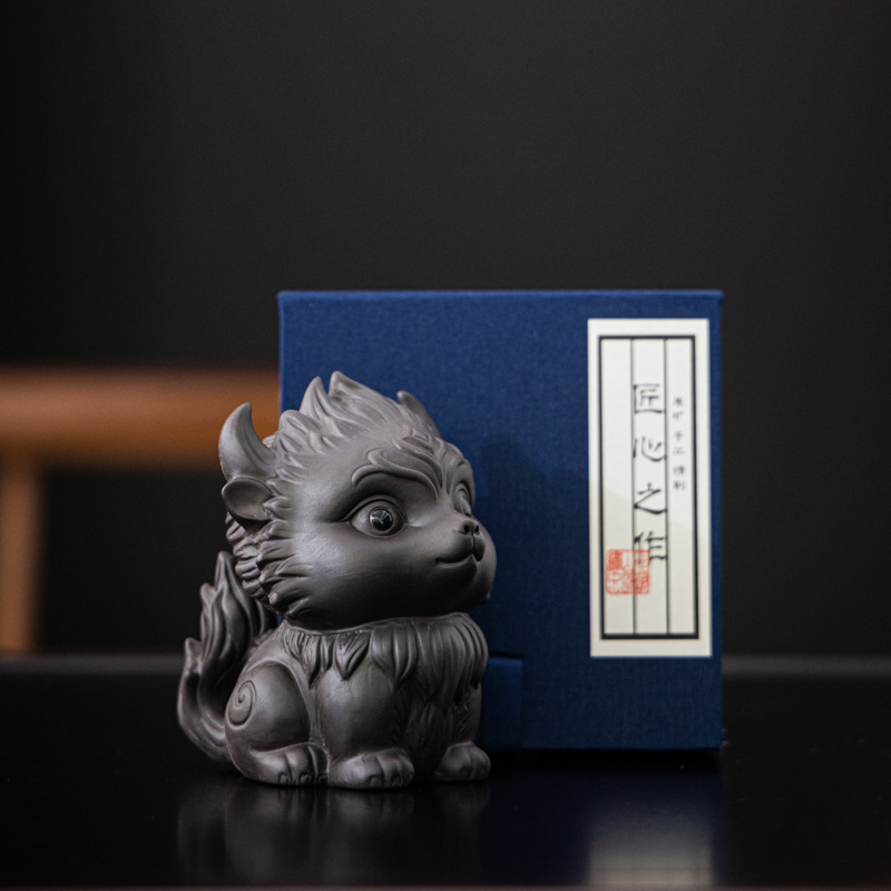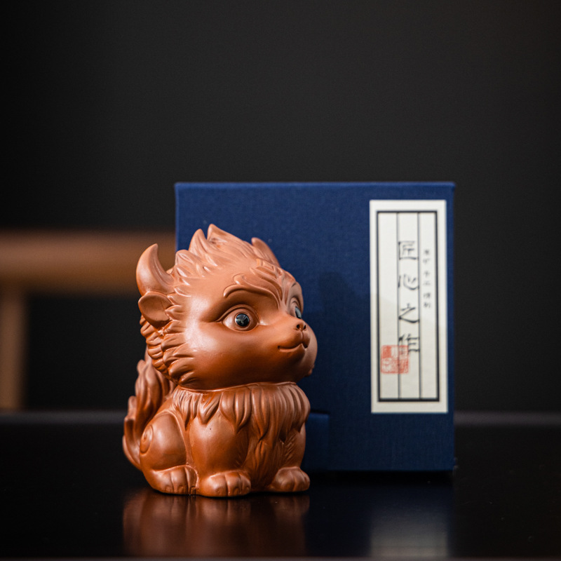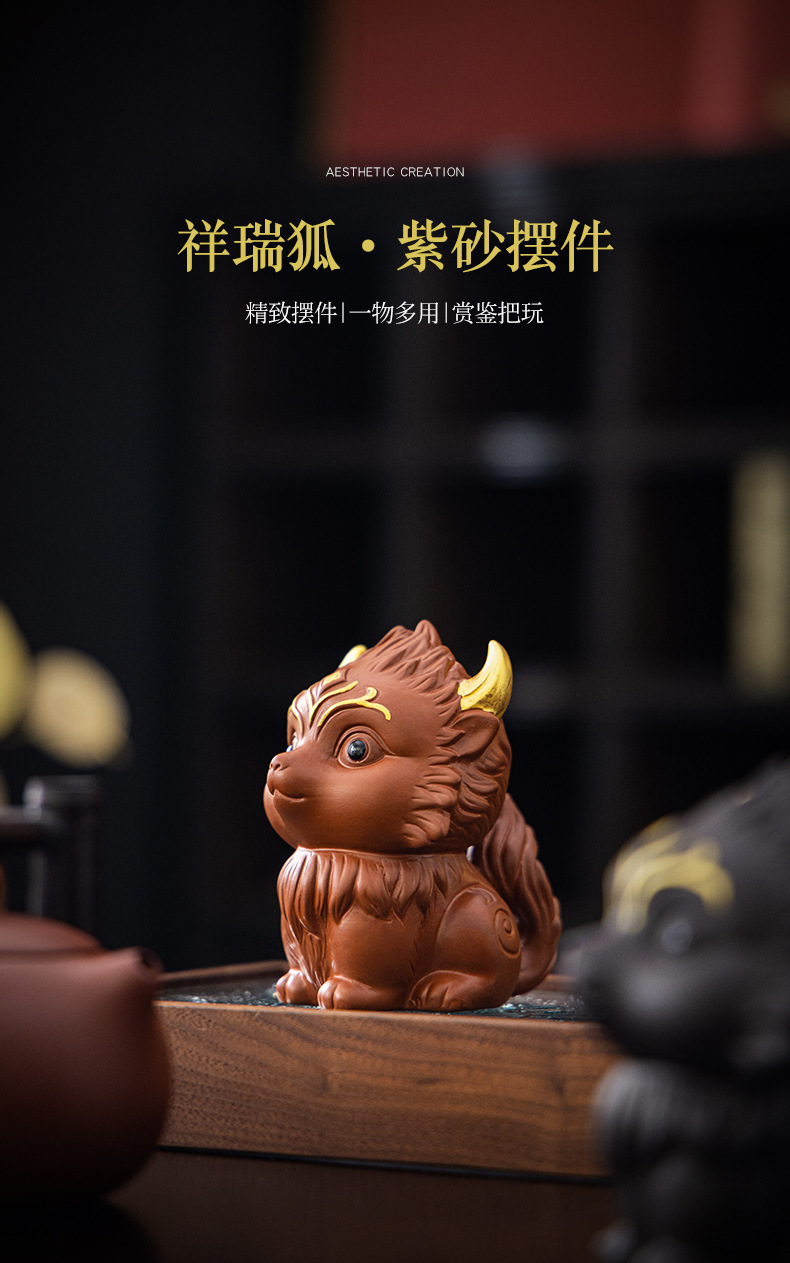 Zisha 차 애완 동물 아홉 꼬리 여우 장식품 부티크는 창조적 인 개성을 키울 수 있습니다 차 놀이 차 테이블 차 세트 액세서리 로고스토어 가기