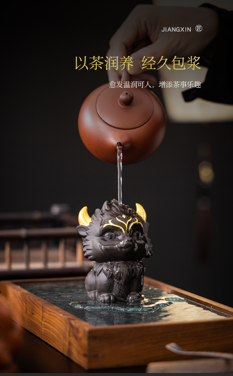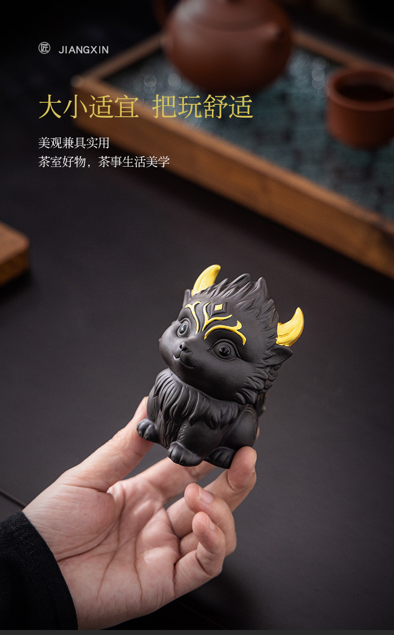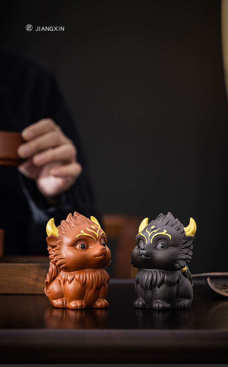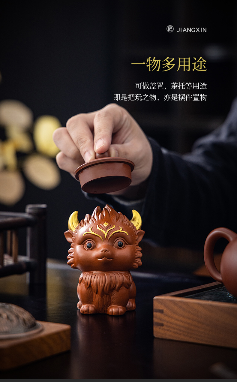 Zisha 차 애완 동물 아홉 꼬리 여우 장식품 부티크는 창조적 인 개성을 키울 수 있습니다 차 놀이 차 테이블 차 세트 액세서리 로고스토어 가기