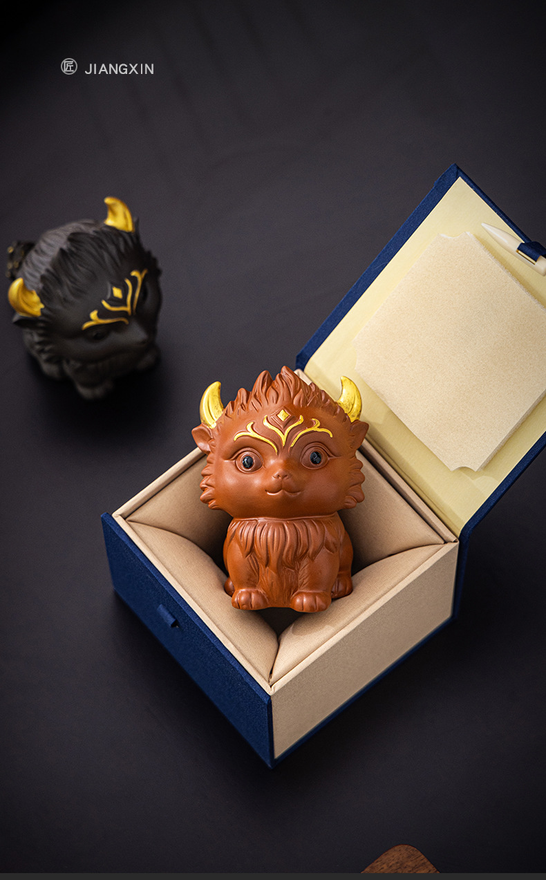 • 보라색 점토 차 애완 동물 다채로운 금 구미호 주홍색 점토 선물 상자