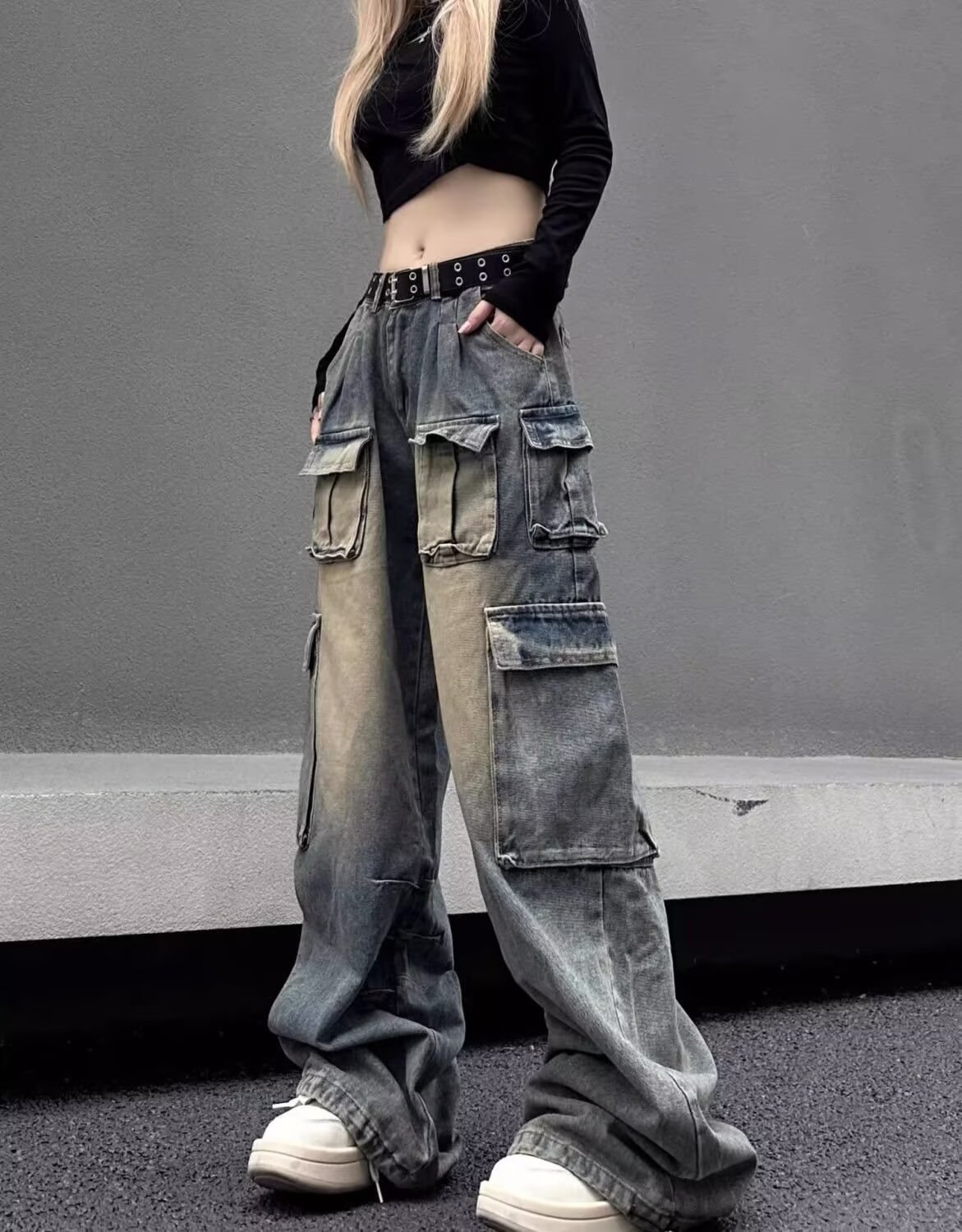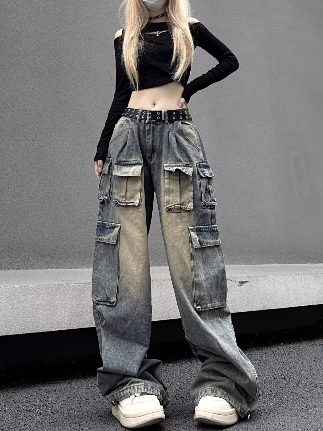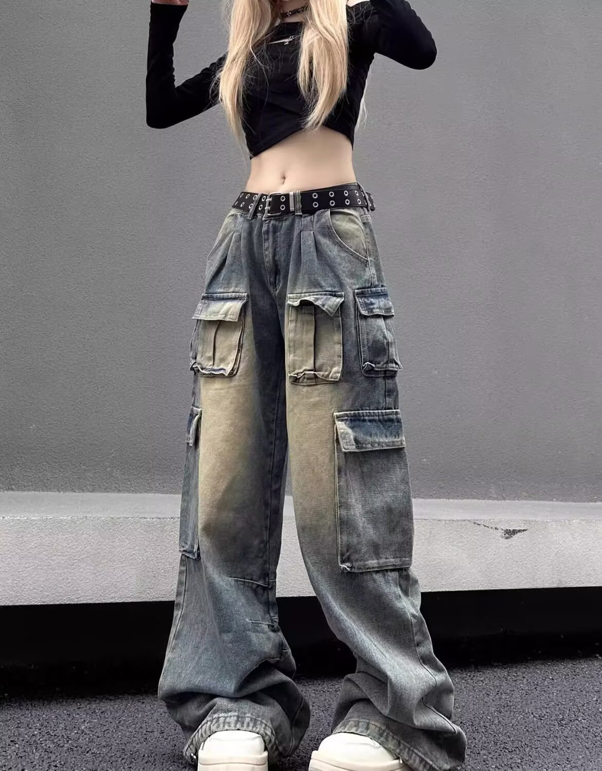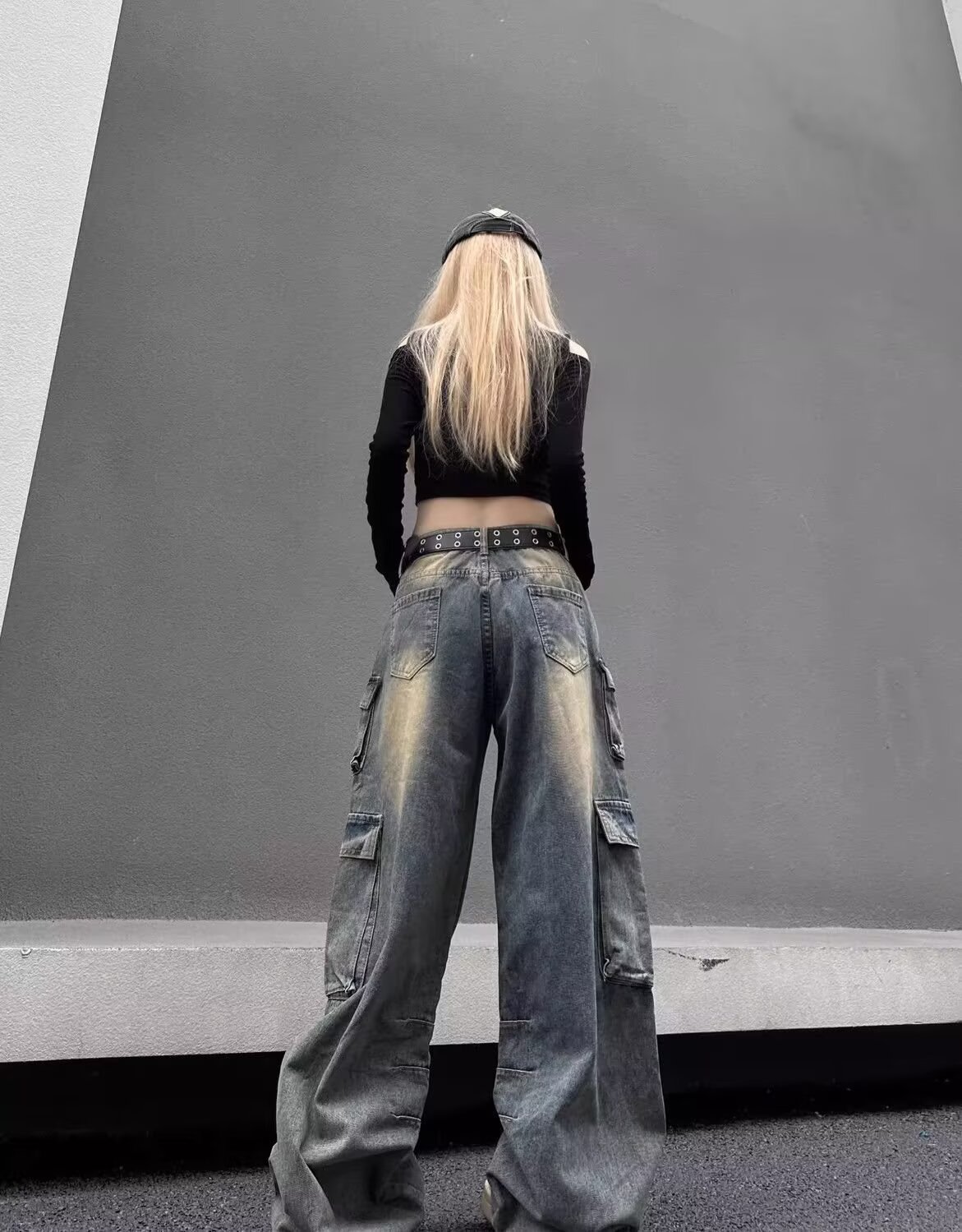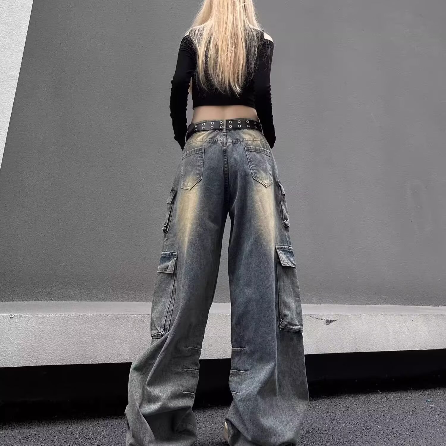 디자인 센스 하이 스트리트 아메리칸 스타일 빈티지 오버홀 여성의 봄 새로운 넓은 다리 청바지 느슨한 유행 브랜드 바이브 바지스토어 가기
