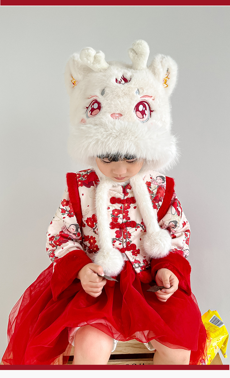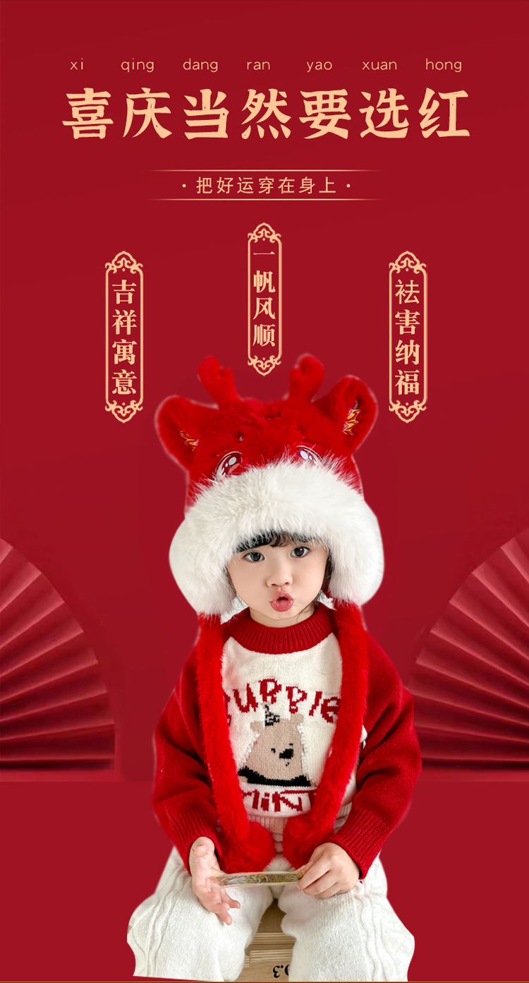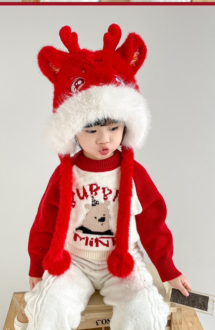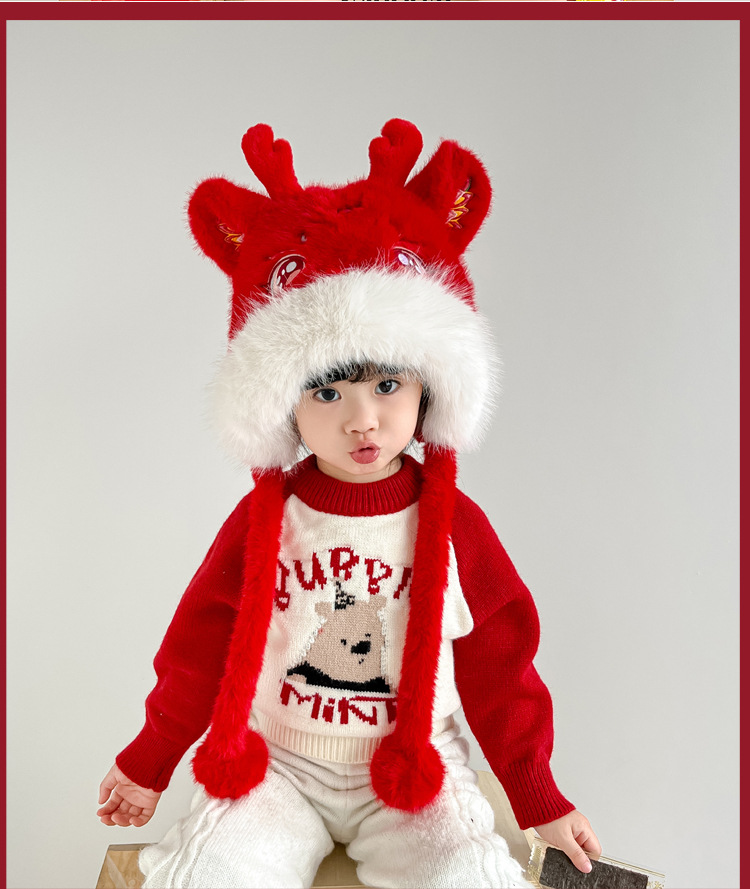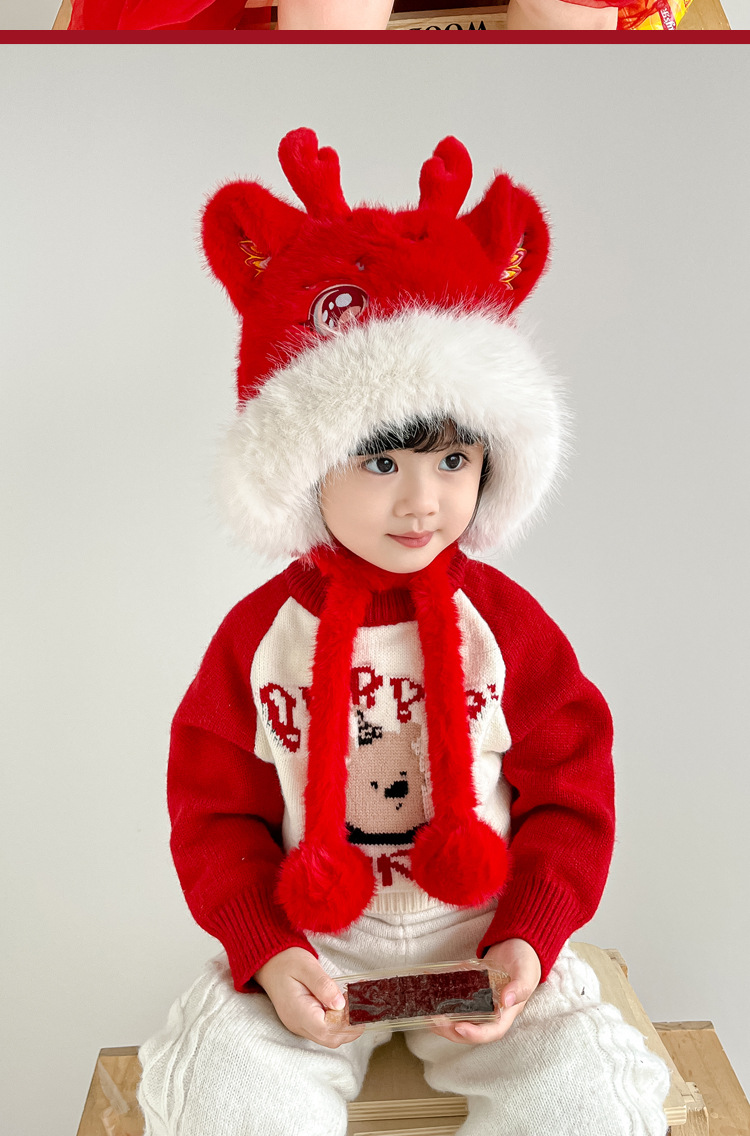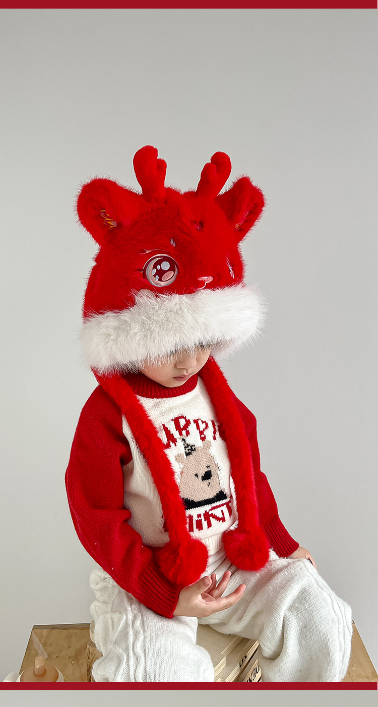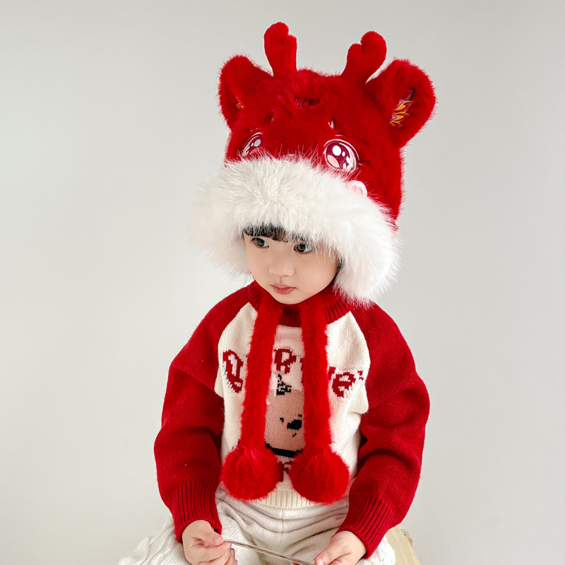 어린이 새해 귀여운 봉제 플러스 기린 두꺼운 Lei Feng Hat 겨울 전국 패션 귀 보호 목 모자 가방 헤드 캡