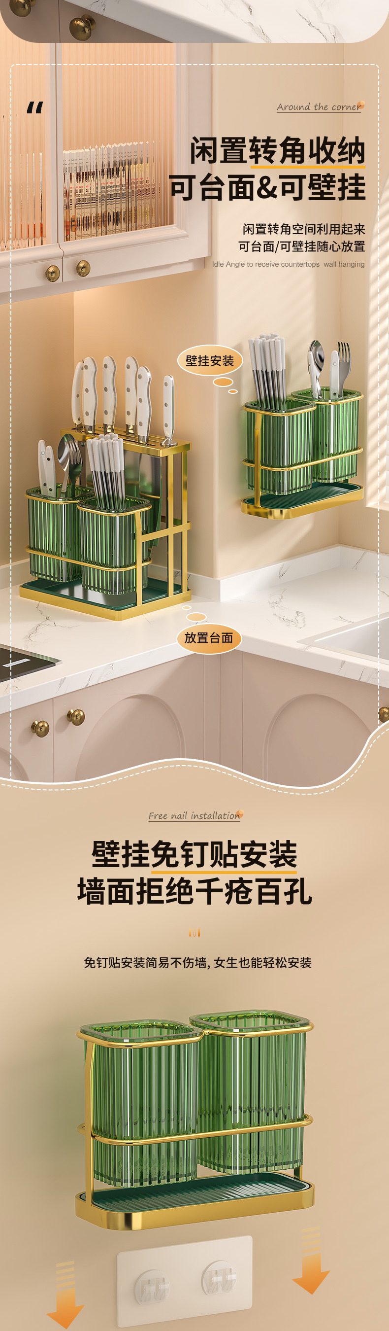 • 가볍고 고급스러운 녹색 젓가락통 [벽걸이형/조리대 겸용]