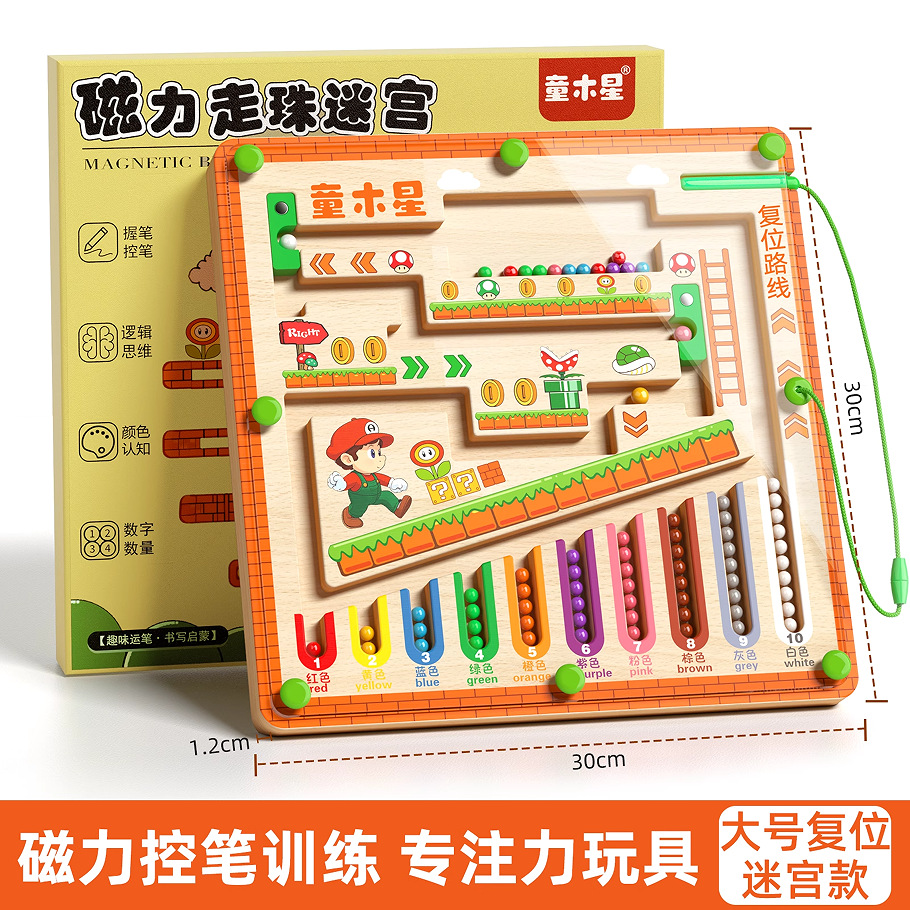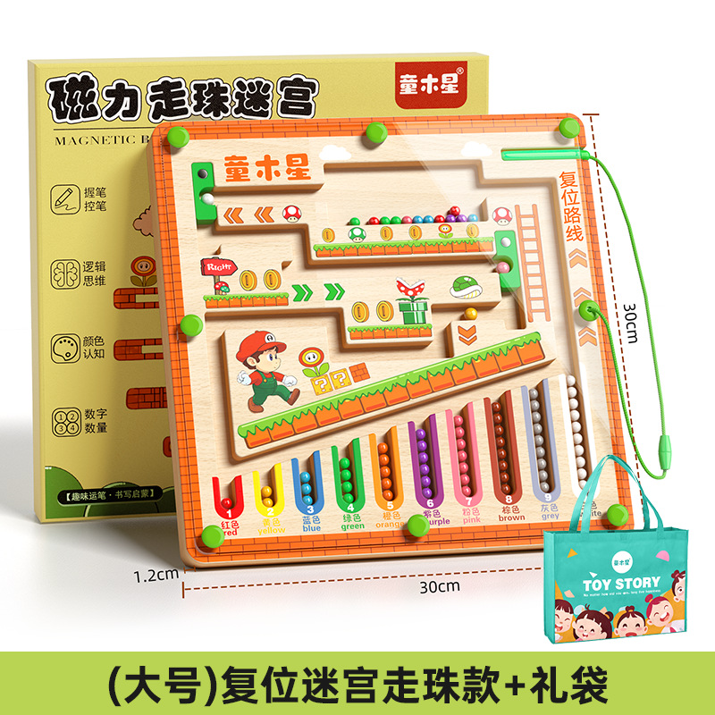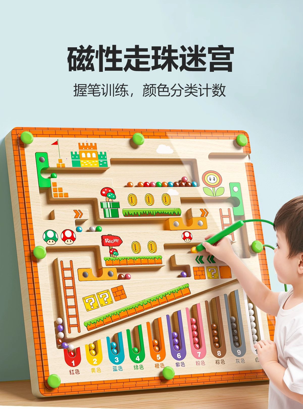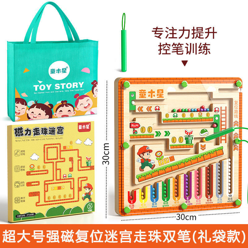 어린이 자석 미로 구슬놀이 펜로직 테스트 3~6세 조기교육 교구 자석 나무 장난감스토어 가기