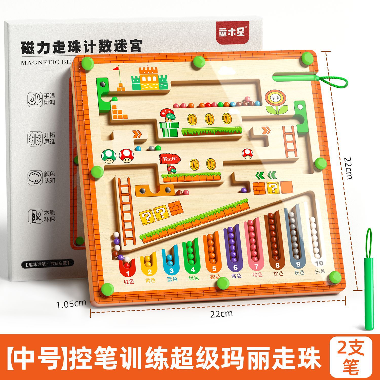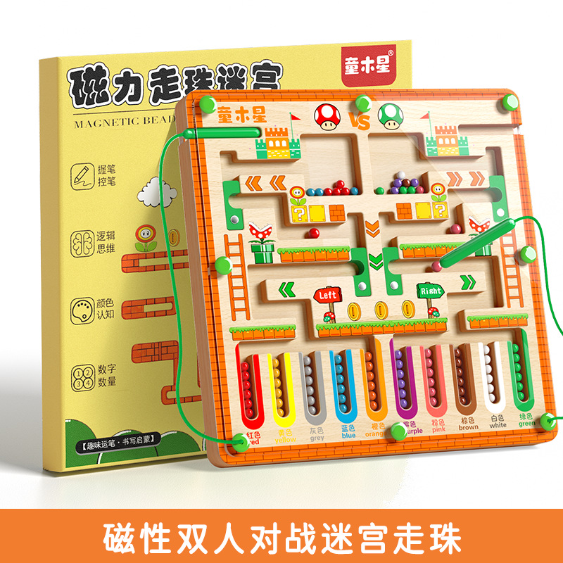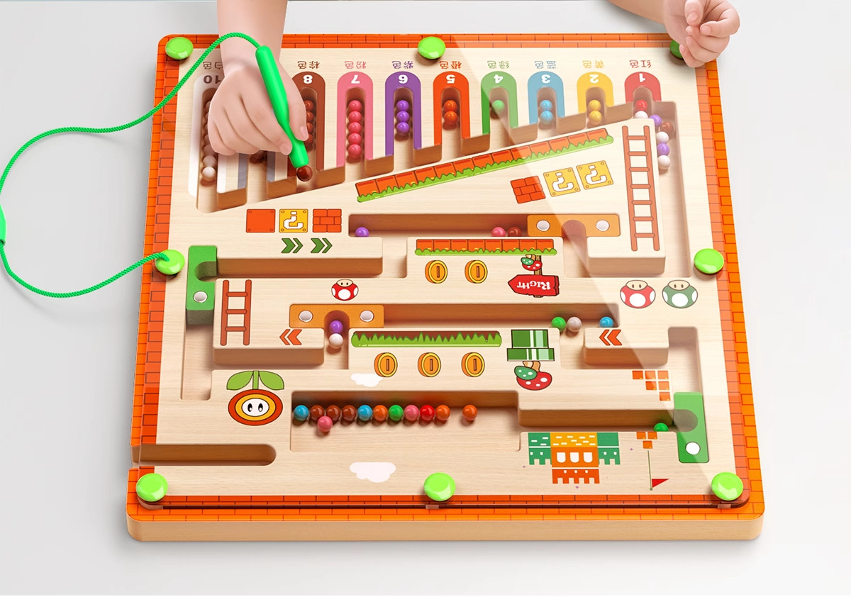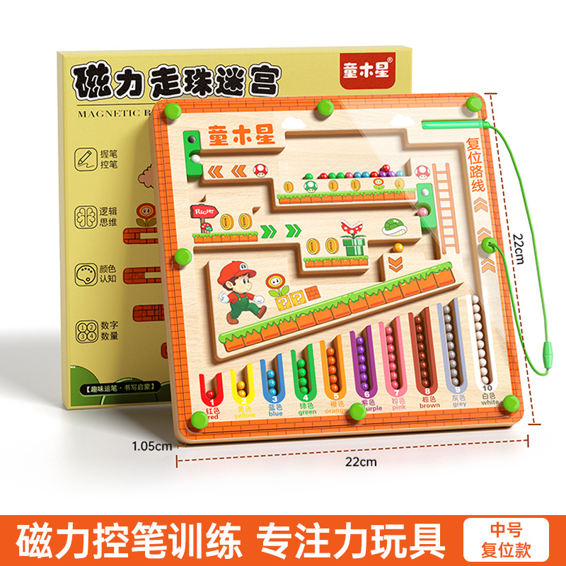 어린이 자석 미로 구슬놀이 펜로직 테스트 3~6세 조기교육 교구 자석 나무 장난감스토어 가기