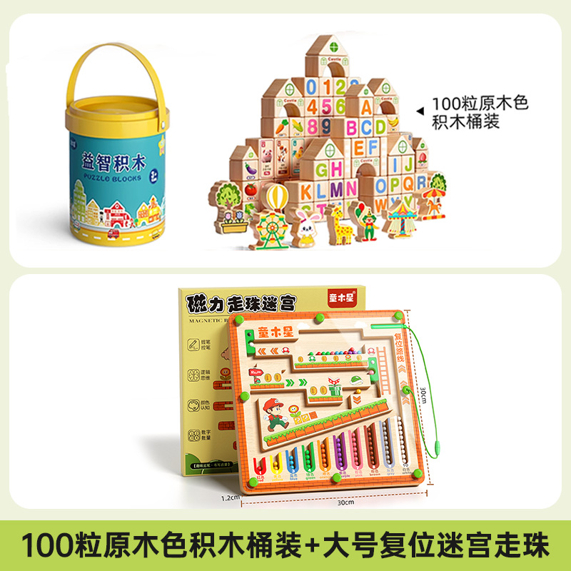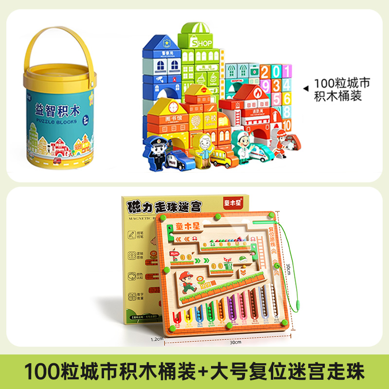 • 대형 자석 미로구슬 + 통에 도시 빌딩 블록 100개 [계몽 조기 교육]