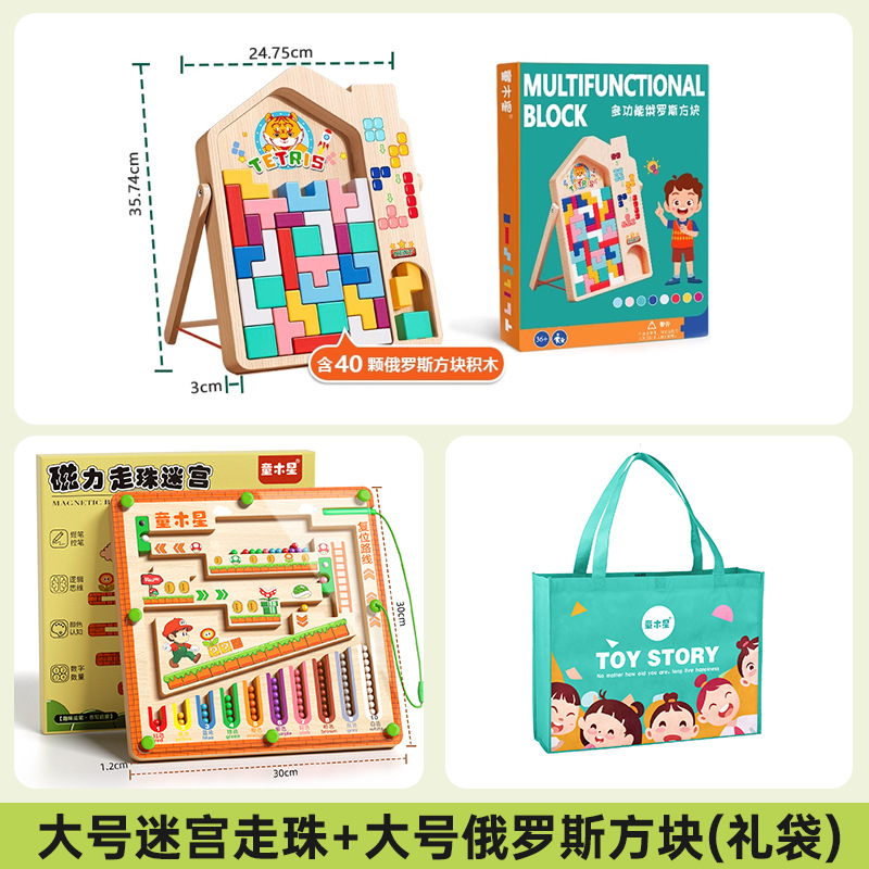 • [선물가방] 대형 자석 미로구슬 + 대형 테트리스 블록 [논리적 사고 훈련]