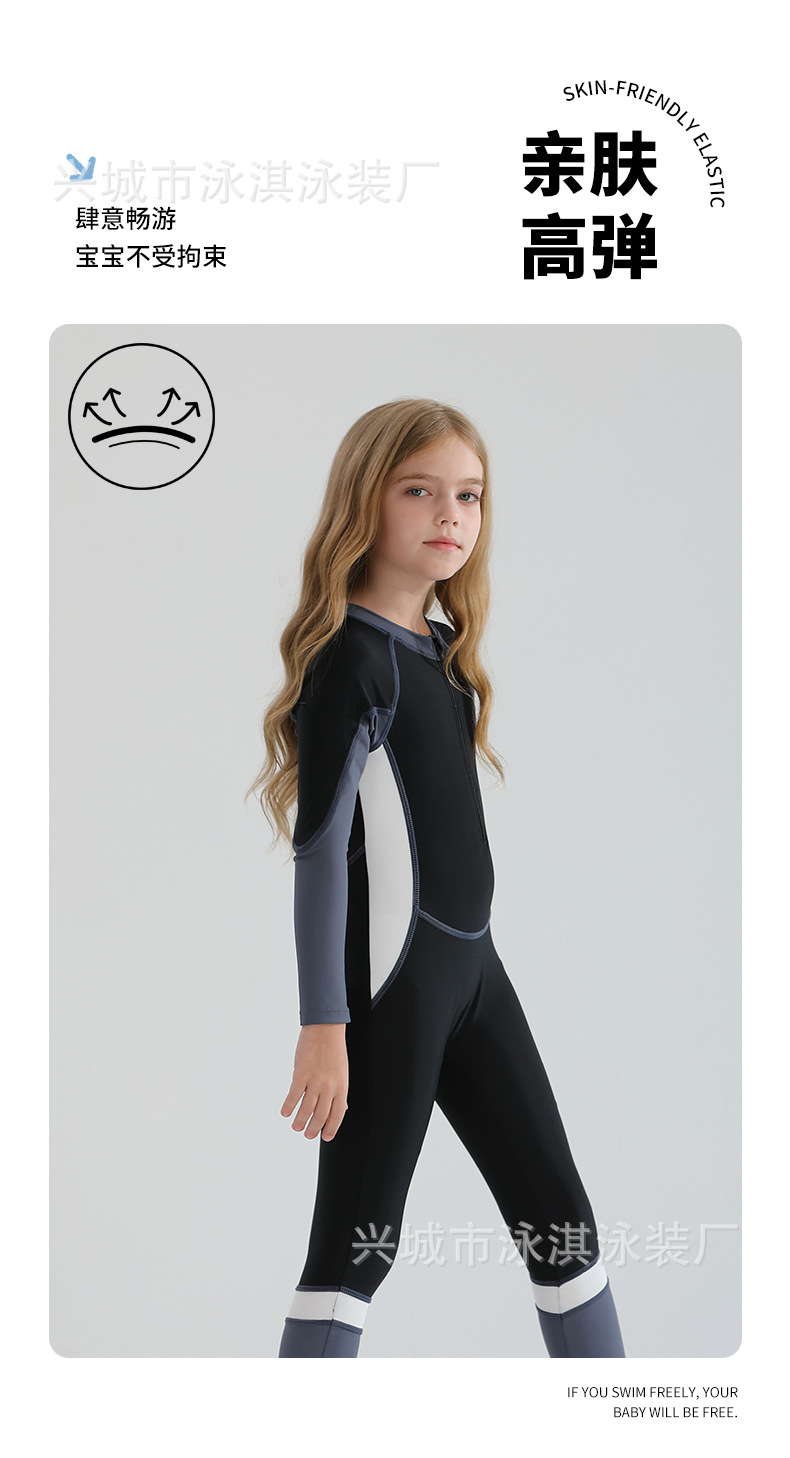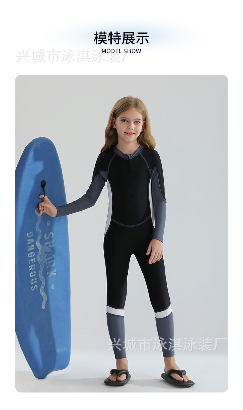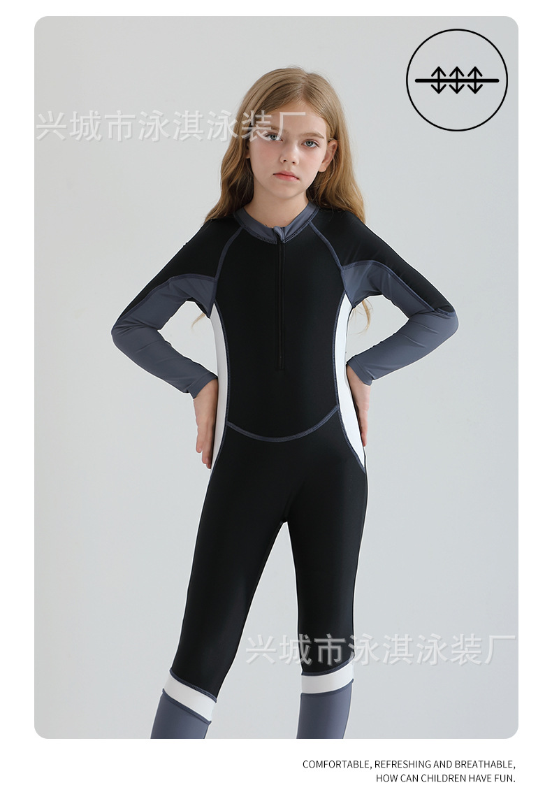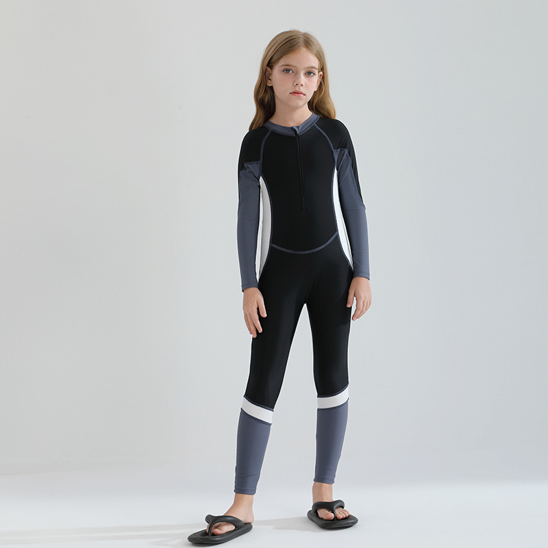 2025 새로운 어린이 수영복 소녀 지퍼 원피스 수영복 긴 소매 바지 빅 키즈 서핑 다이빙 세트