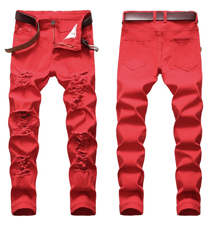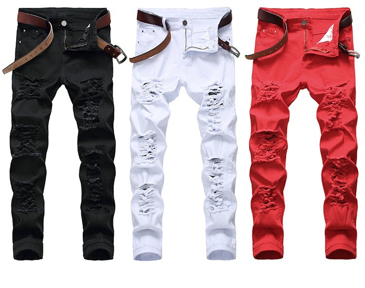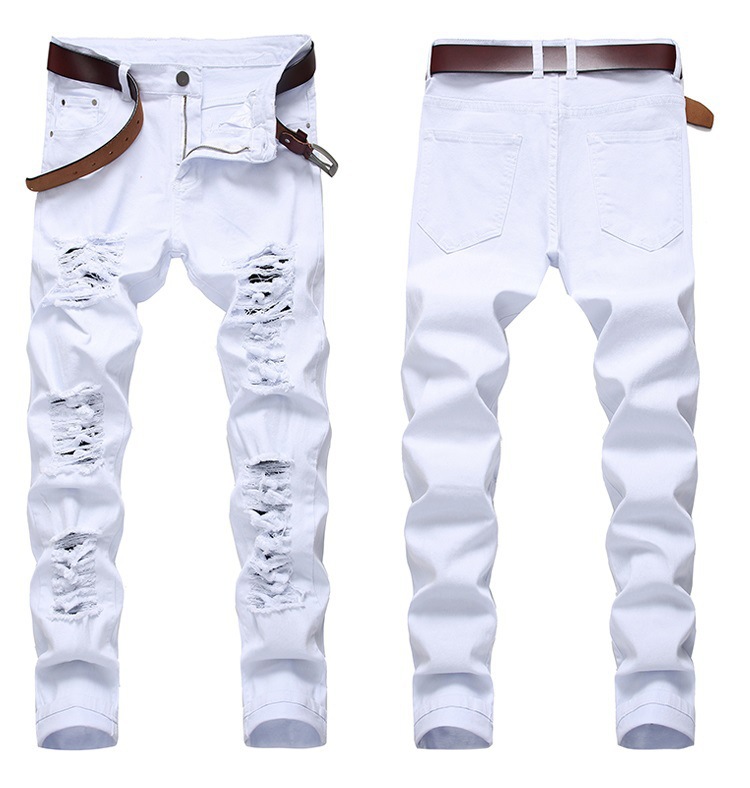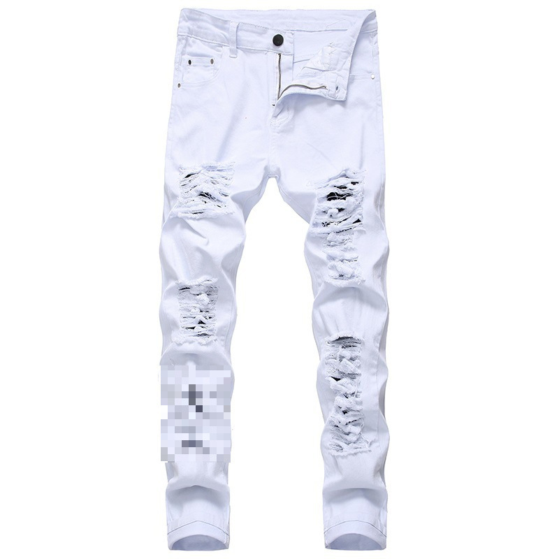 2024FOG 트렌디 빅 리핑 청바지 남자 탄성 슬림 핏 한국식 하이 스트리트 올 매치 레깅스 블랙스토어 가기