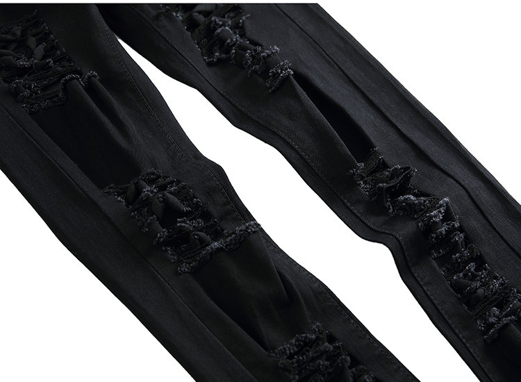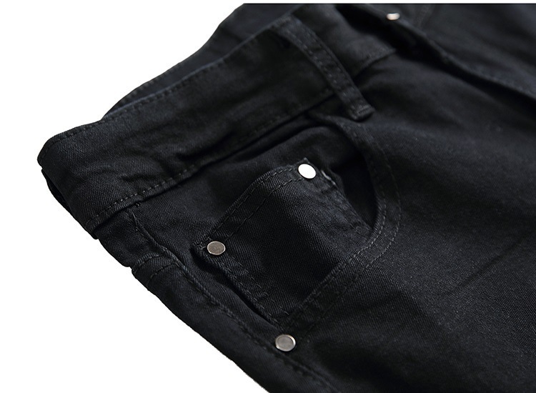2024FOG 트렌디 빅 리핑 청바지 남자 탄성 슬림 핏 한국식 하이 스트리트 올 매치 레깅스 블랙