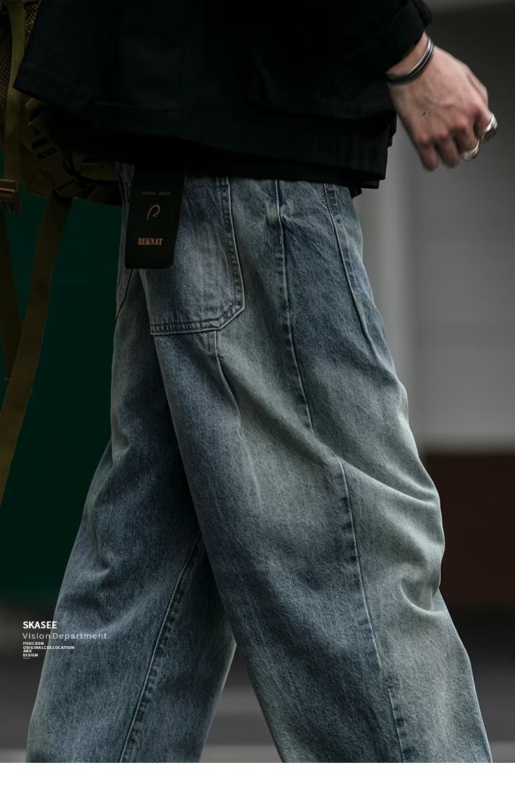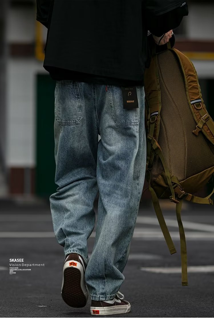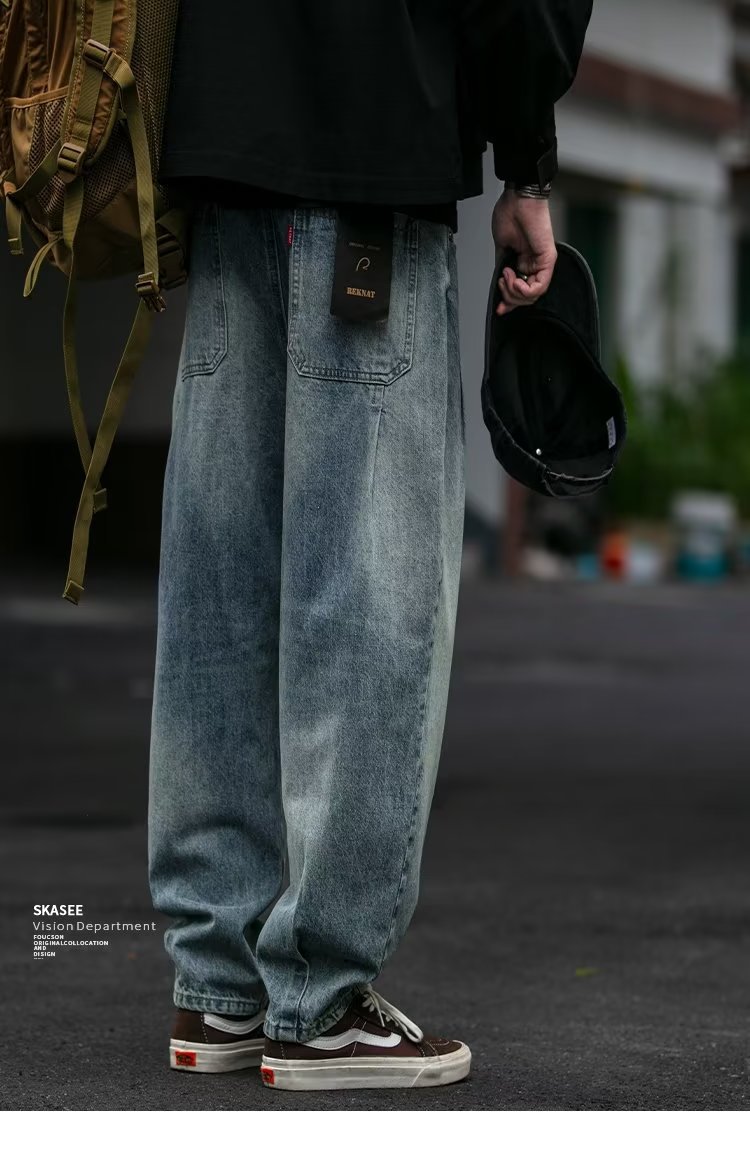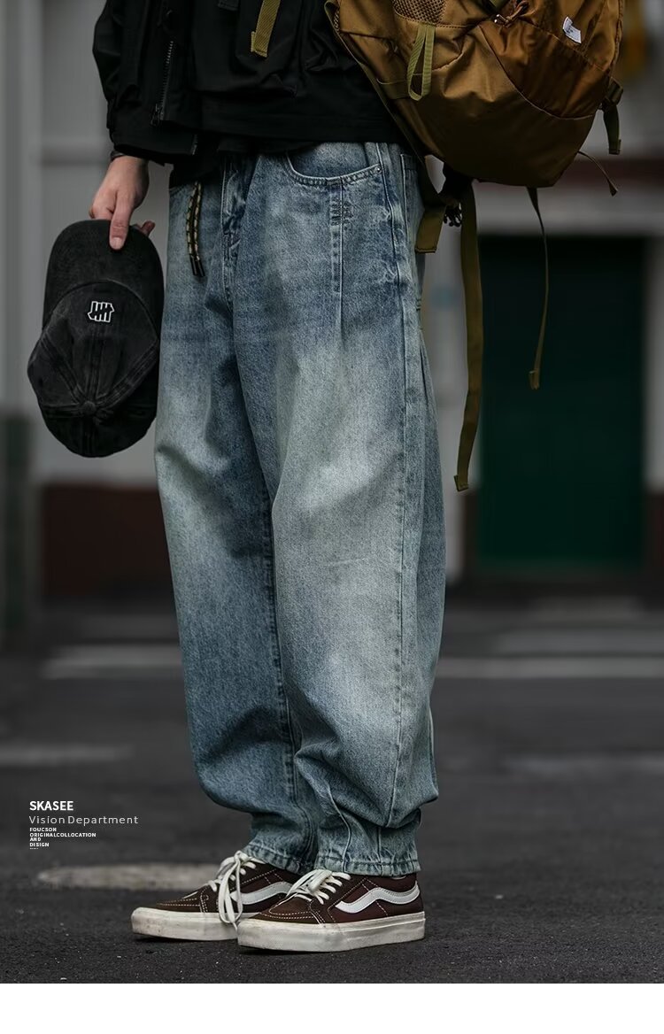 미국 빈티지 프록 플러스 사이즈 청바지 남성용 가을 새 느슨한 씻은 넓은 다리 하렘 트렌디 남성복스토어 가기