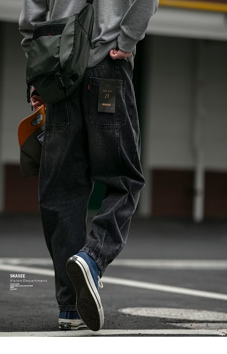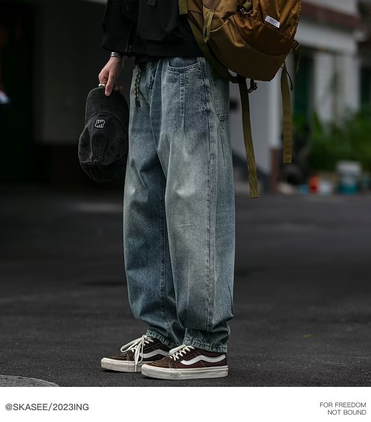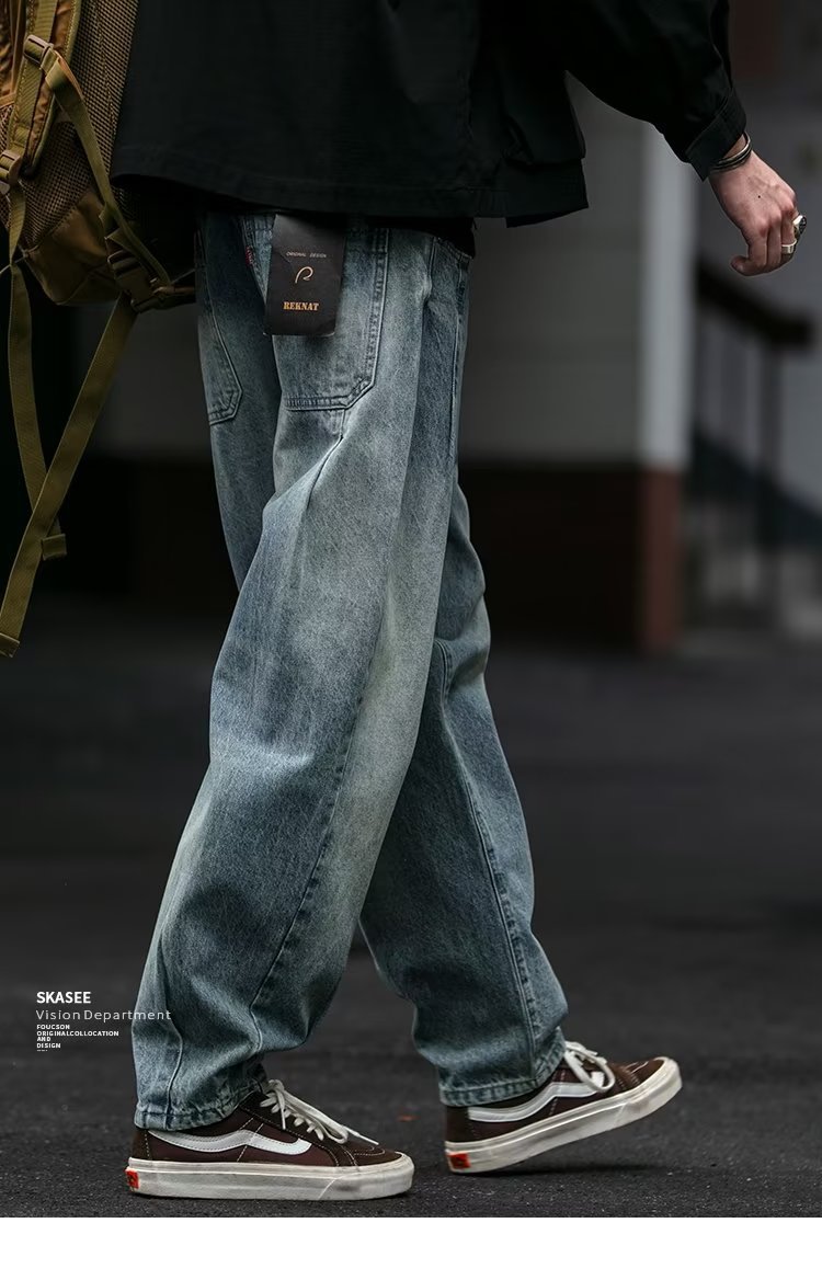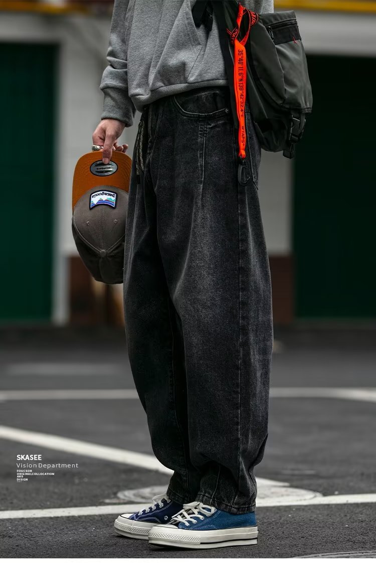 미국 빈티지 프록 플러스 사이즈 청바지 남성용 가을 새 느슨한 씻은 넓은 다리 하렘 트렌디 남성복스토어 가기